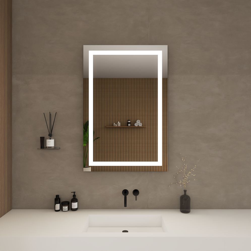 - Combines mirror and lighting in one fixture, eliminating the need for extra vanity lights