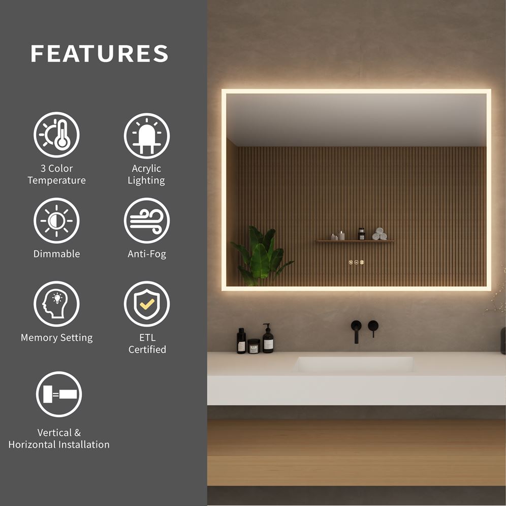 - Combines mirror and lighting in one fixture, eliminating the need for extra vanity lights