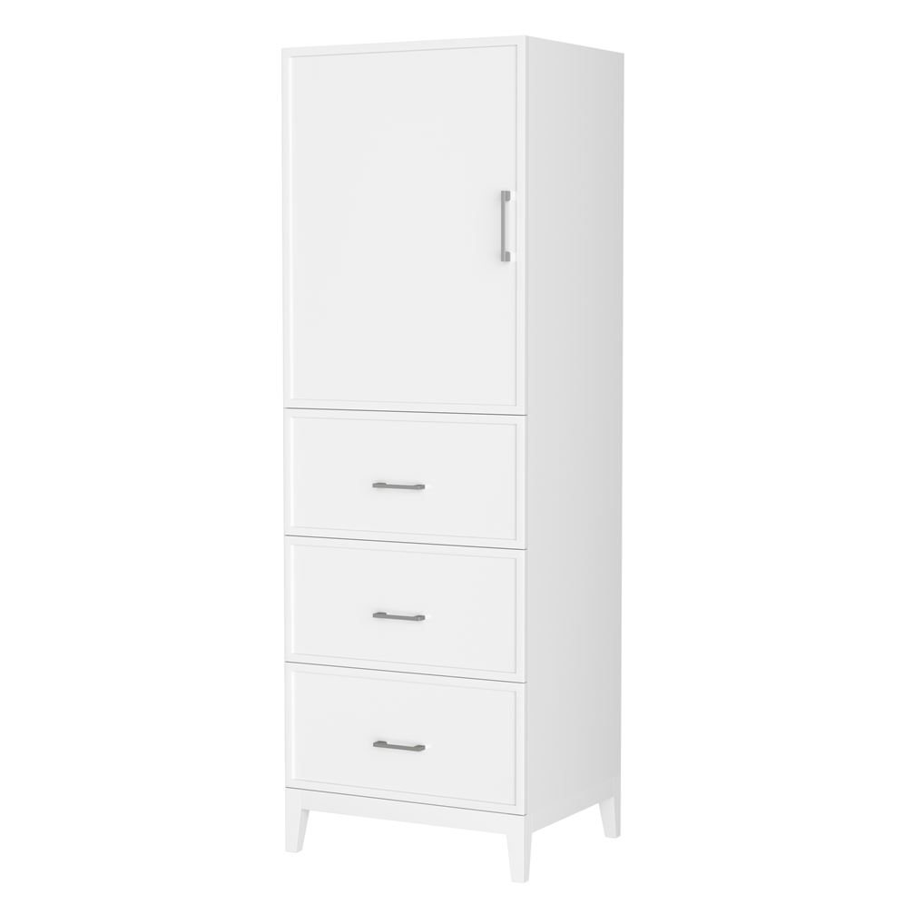 This transitional bathroom furniture exudes sleek sophistication with its clean lines and minimalist slim shaker design. The Elan bathroom furniture is crafted from high-quality materials like solid wood and plywood. Finished painted or in rift-cut white oak veneer, it seamlessly combines beauty and real-life usefulness. The sleek, angular hardware contributes to the overall aesthetic, creating a stylish focal point in the bathroom. Elevate your bathroom haven without compromising form or function.