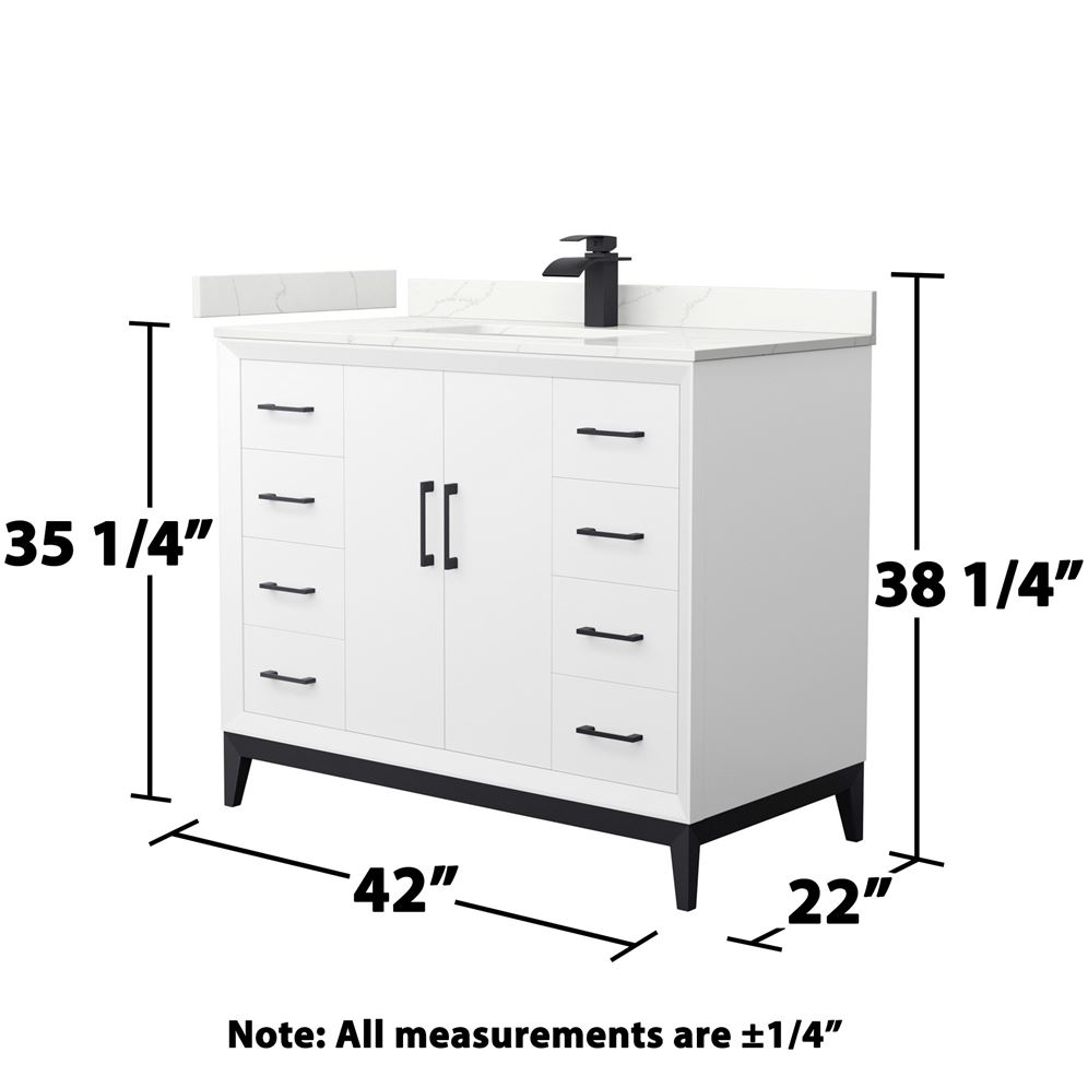 - Quartz Counter includes 3" backsplash and reversible side-splash