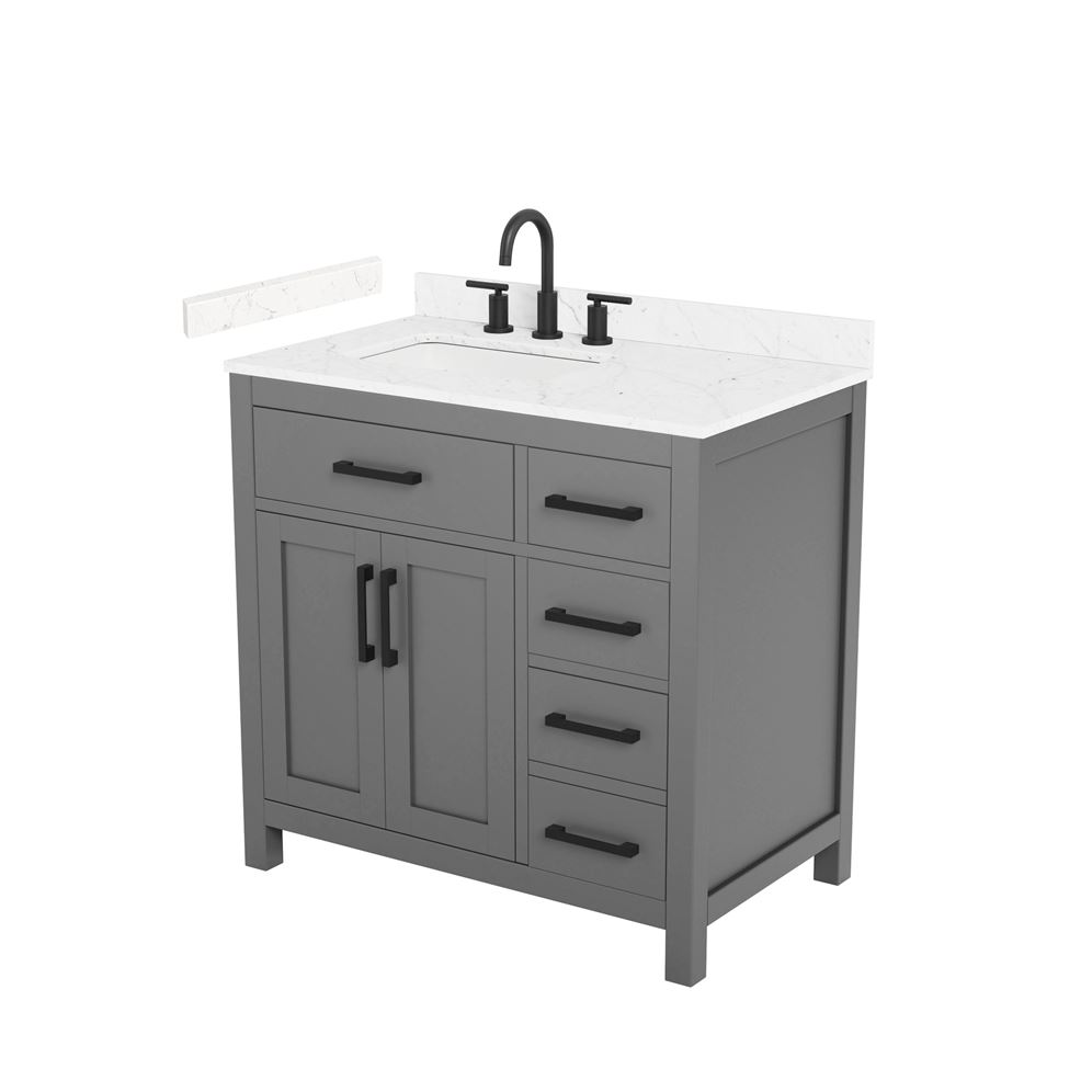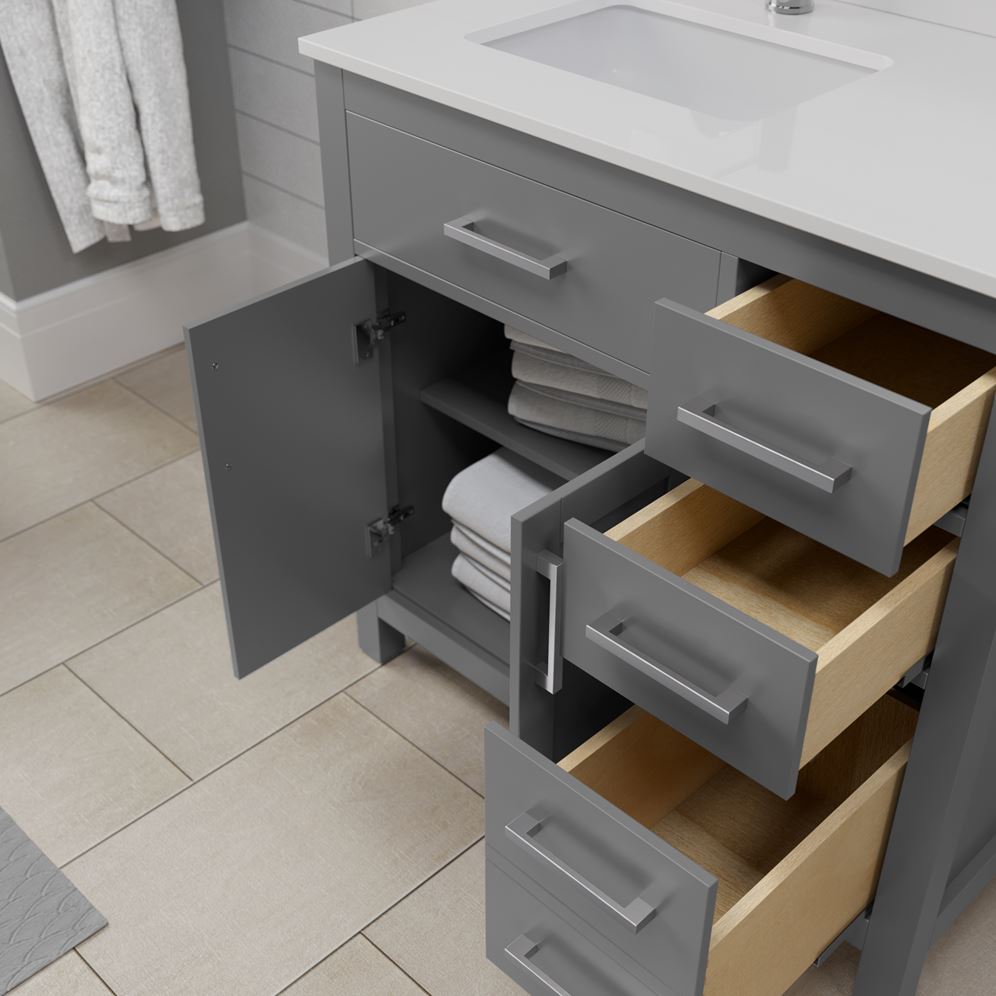 Fantastic value and classic design. The elegant Beckett vanity has it all, with quality touches like brushed nickel, brushed gold, or matte black accents, dove-tailed drawers, and soft-close doors and drawers. Ample storage and a double-depth lower drawer give you plenty of room for those bathroom necessities. Do your bathroom right, with the beautiful Beckett vanity series.