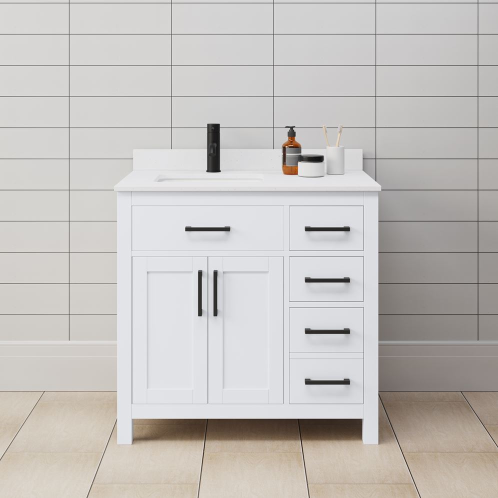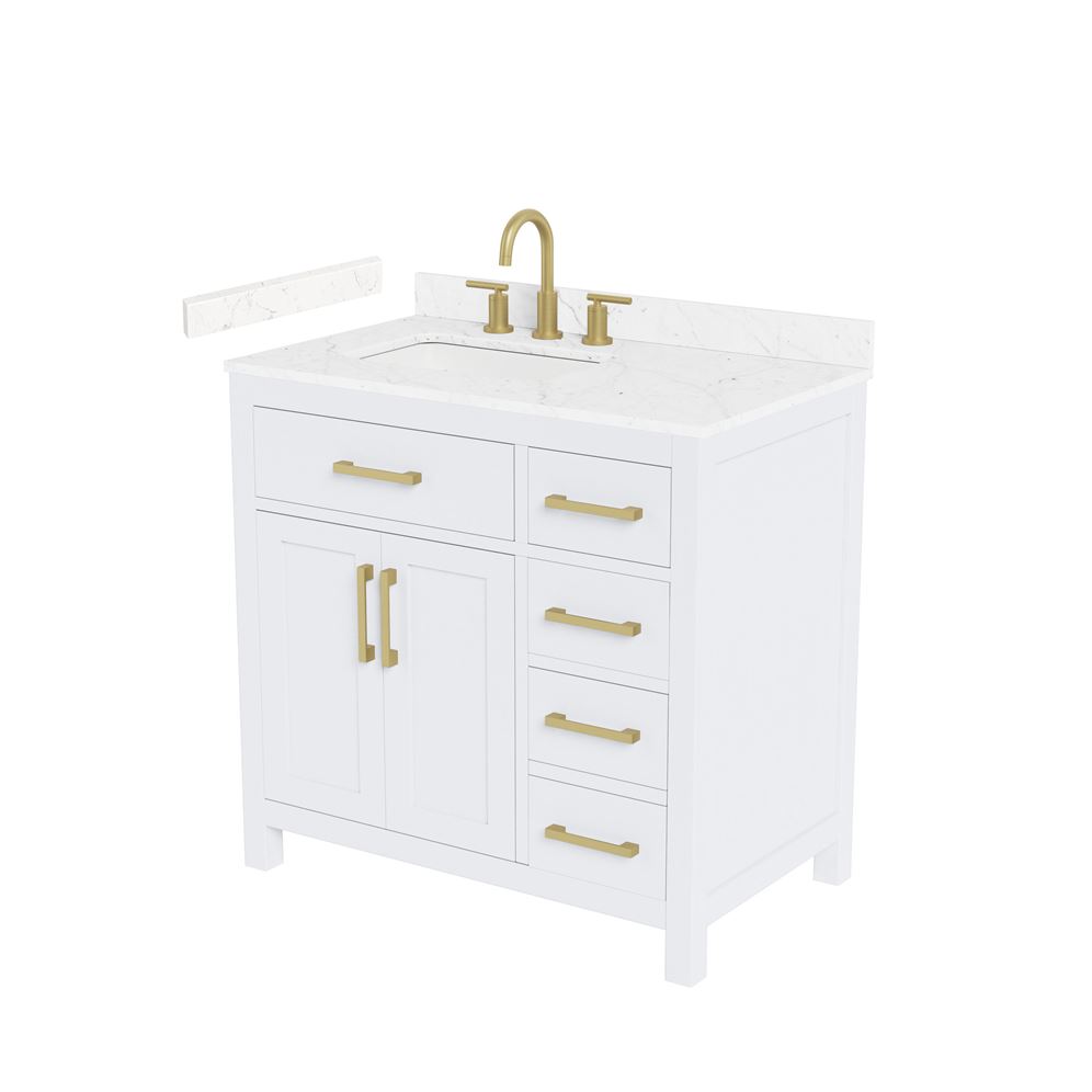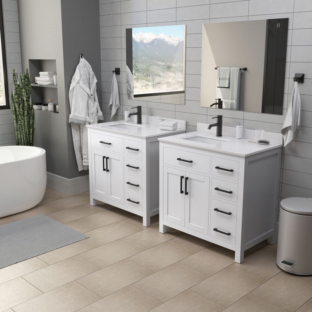Fantastic value and classic design. The elegant Beckett vanity has it all, with quality touches like brushed nickel, brushed gold, or matte black accents, dove-tailed drawers, and soft-close doors and drawers. Ample storage and a double-depth lower drawer give you plenty of room for those bathroom necessities. Do your bathroom right, with the beautiful Beckett vanity series.