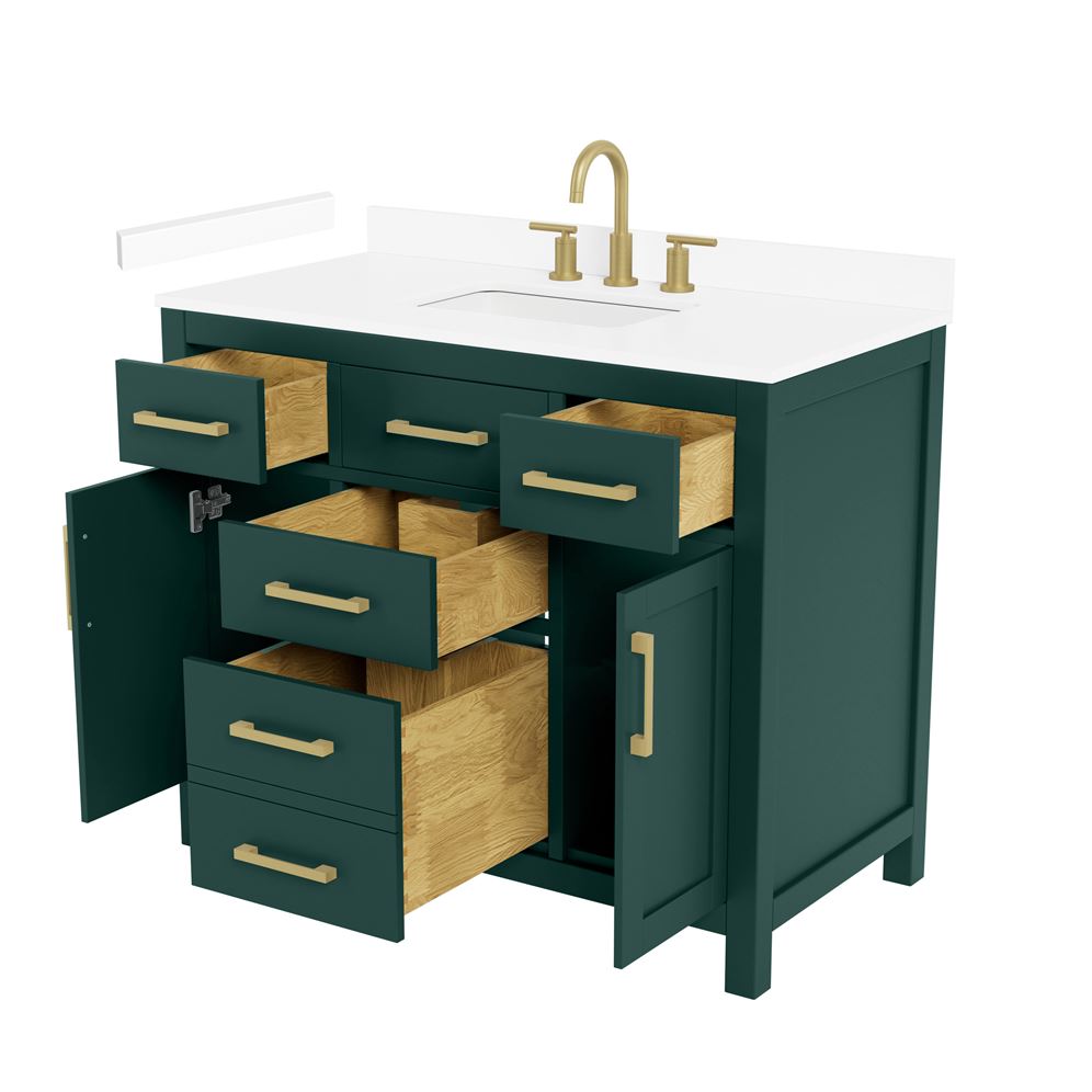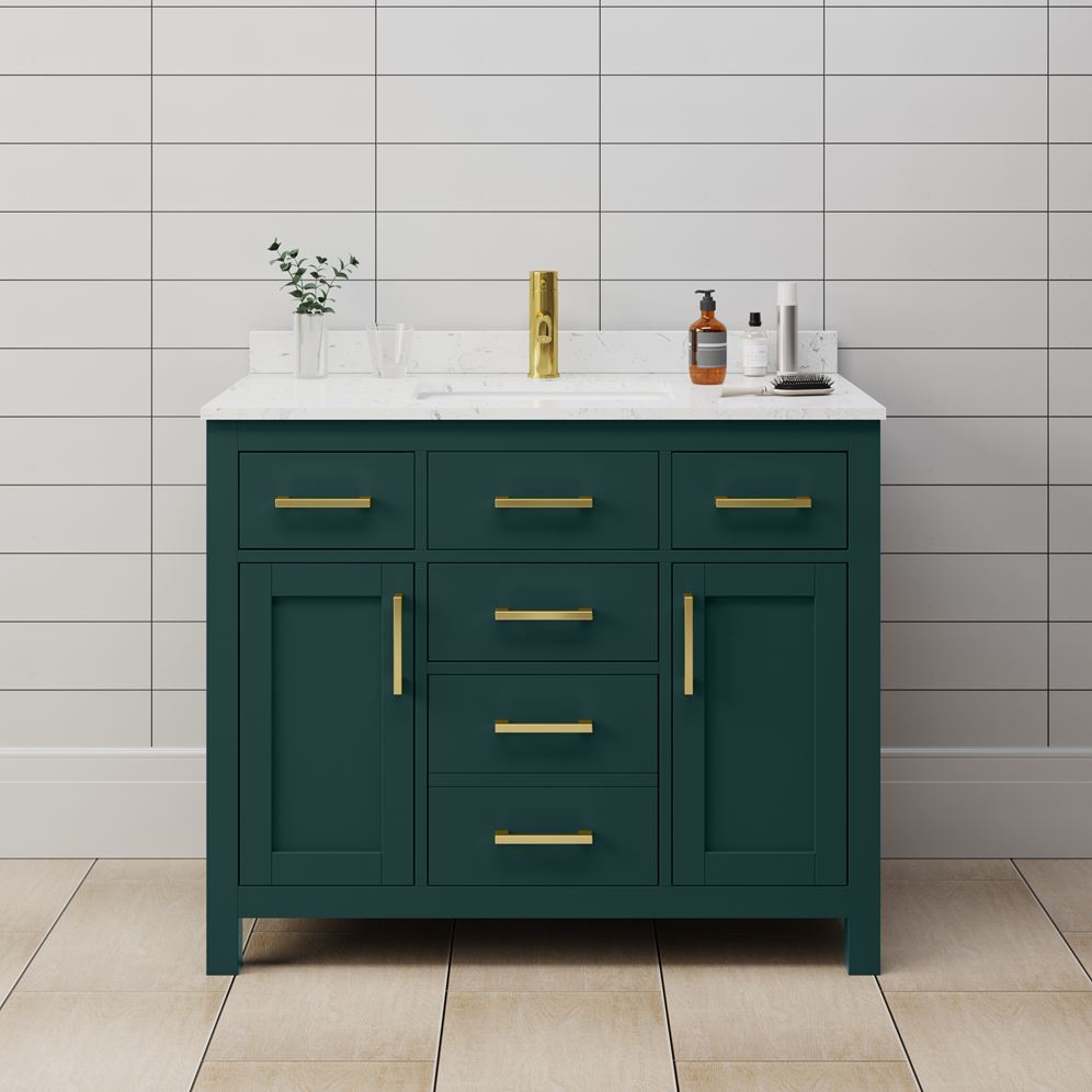 Fantastic value and classic design. The elegant Beckett vanity has it all, with quality touches like brushed nickel, brushed gold, or matte black accents, with dove-tailed drawers, and soft-close doors and drawers. Ample storage and a double-depth lower drawer give you plenty of room for those bathroom necessities. Do your bathroom right, with the beautiful Beckett vanity series.