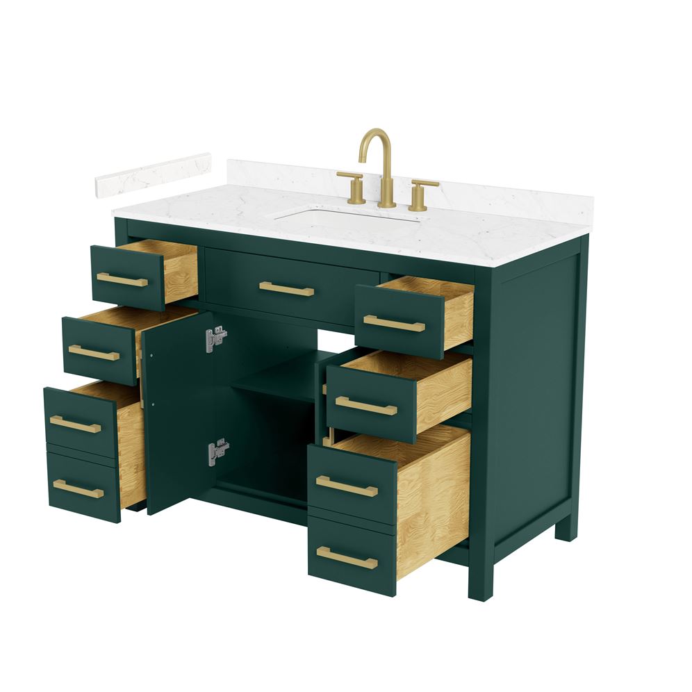Fantastic value and classic design. The elegant Beckett vanity has it all, with quality touches like brushed nickel, brushed gold, or matte black accents, dove-tailed drawers, and soft-close doors and drawers. Ample storage and a double-depth lower drawer give you plenty of room for those bathroom necessities. Do your bathroom right, with the beautiful Beckett vanity series.
