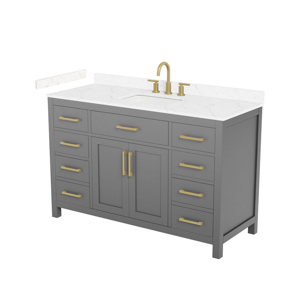 Fantastic value and classic design. The elegant Beckett vanity has it all, with quality touches like brushed nickel, brushed gold, or matte black accents, dove-tailed drawers, and soft-close doors and drawers. Ample storage and a double-depth lower drawer give you plenty of room for those bathroom necessities. Do your bathroom right, with the beautiful Beckett vanity series.
