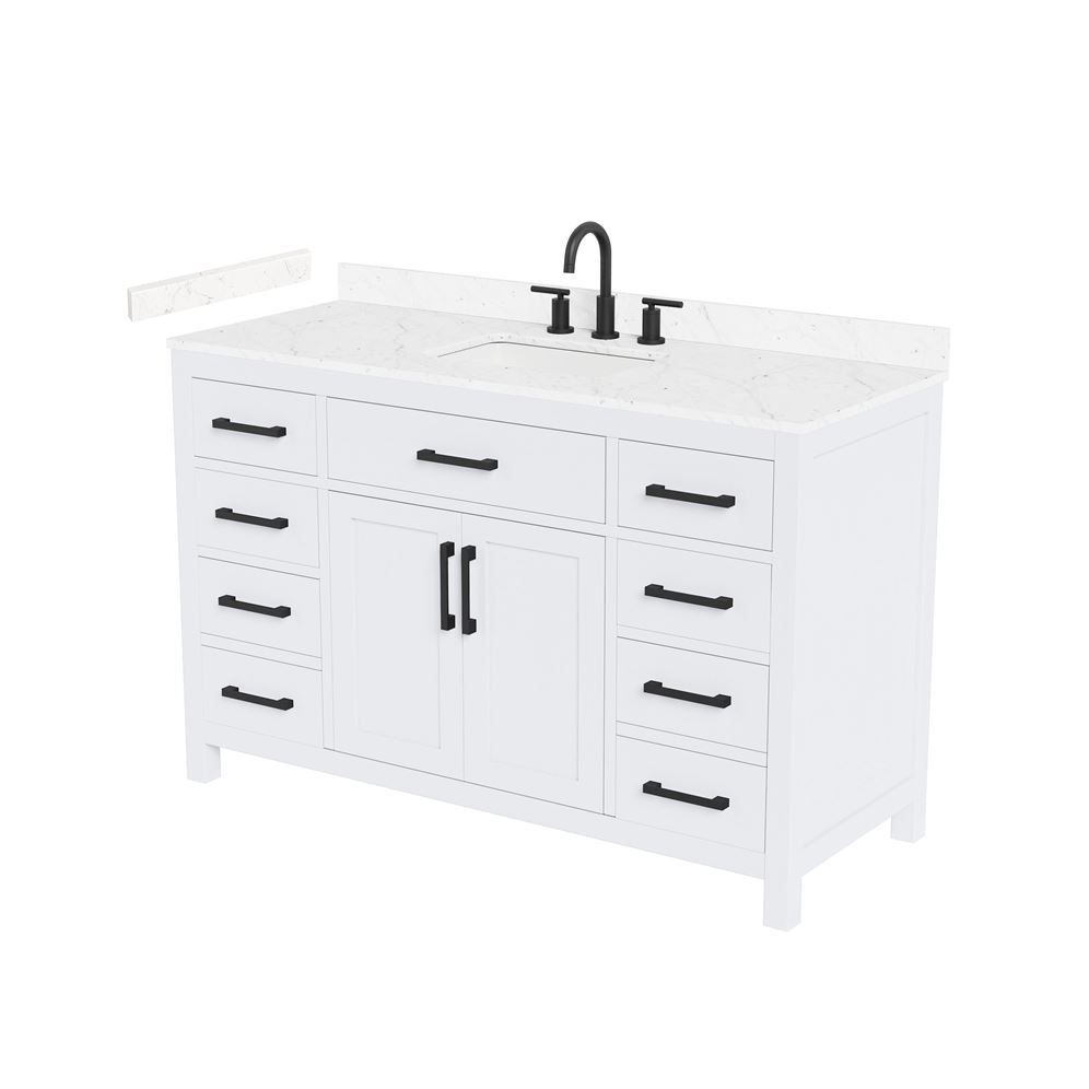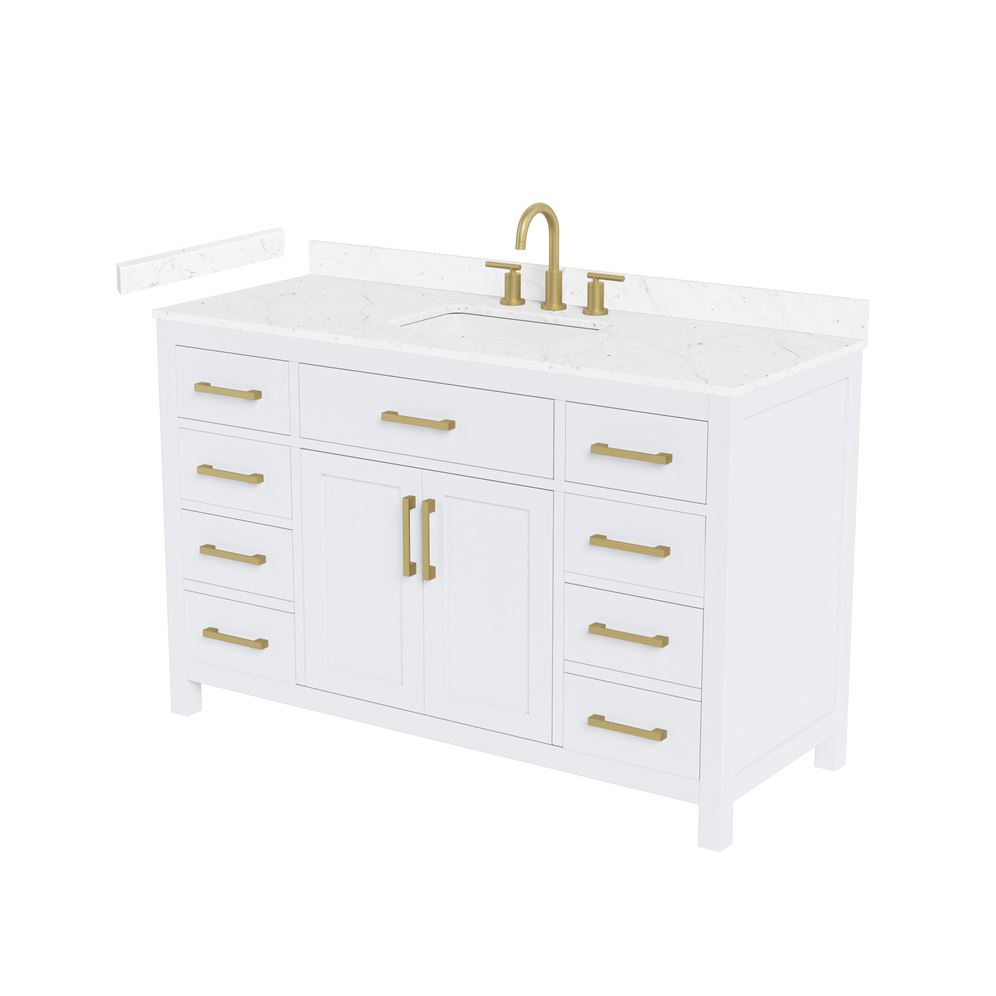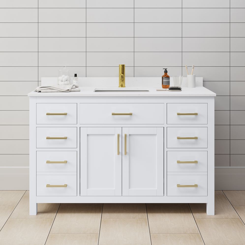 Fantastic value and classic design. The elegant Beckett vanity has it all, with quality touches like brushed nickel, brushed gold, or matte black accents, dove-tailed drawers, and soft-close doors and drawers. Ample storage and a double-depth lower drawer give you plenty of room for those bathroom necessities. Do your bathroom right, with the beautiful Beckett vanity series.