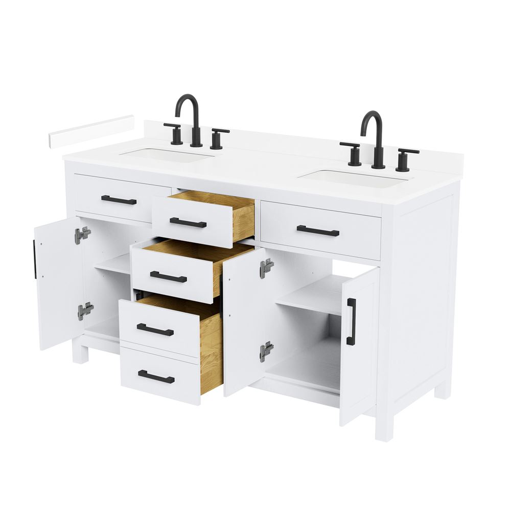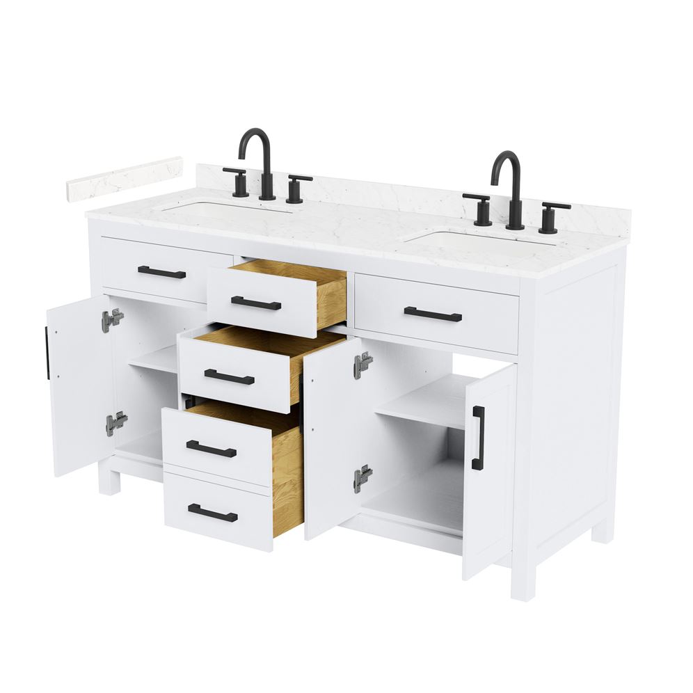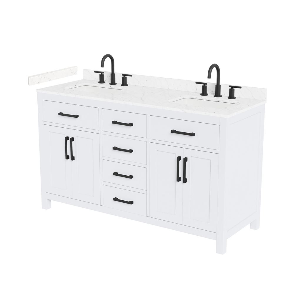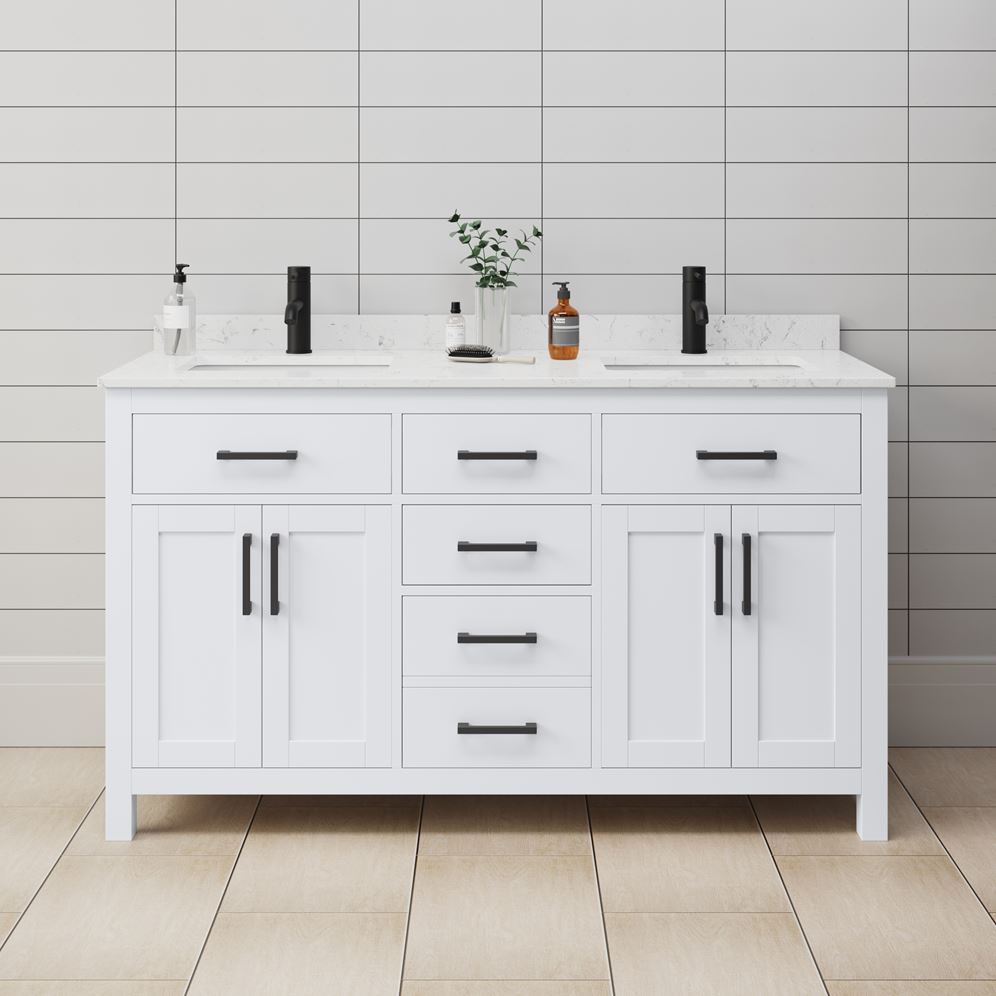 Fantastic value and classic design. The elegant Beckett vanity has it all, with quality touches like brushed nickel, brushed gold, or matte black accents, dove-tailed drawers, and soft-close doors and drawers. Ample storage and a double-depth lower drawer give you plenty of room for those bathroom necessities. Do your bathroom right, with the beautiful Beckett vanity series.