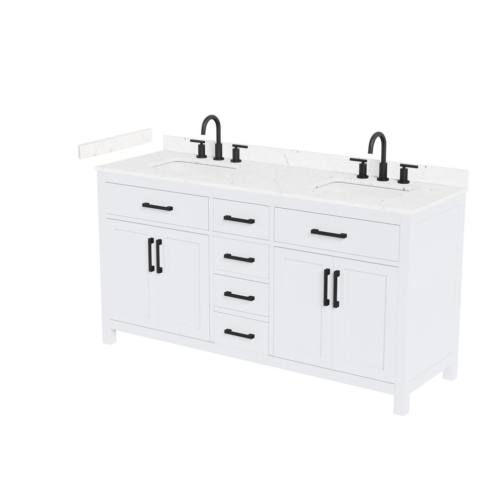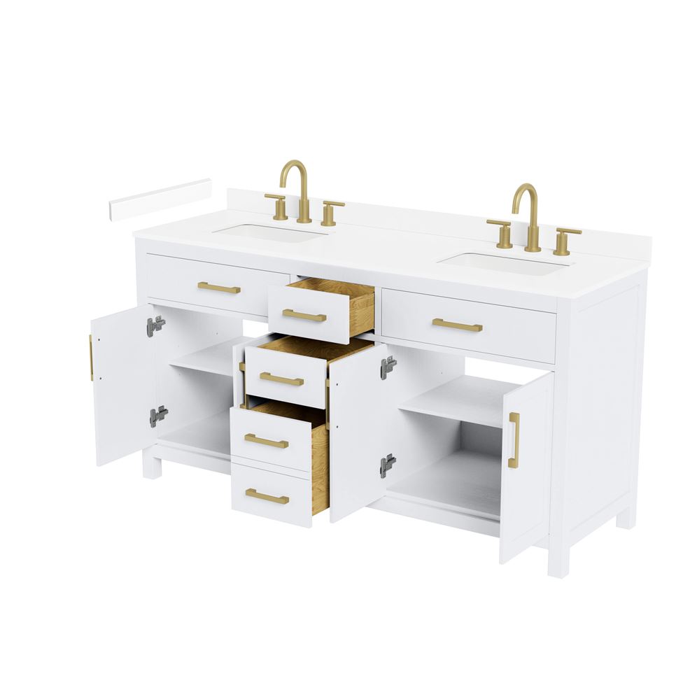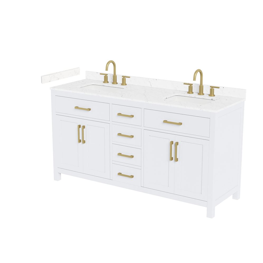 Fantastic value and classic design. The elegant Beckett vanity has it all, with quality touches like brushed nickel, brushed gold, or matte black accents, dove-tailed drawers, and soft-close doors and drawers. Ample storage and a double-depth lower drawer give you plenty of room for those bathroom necessities. Do your bathroom right, with the beautiful Beckett vanity series.