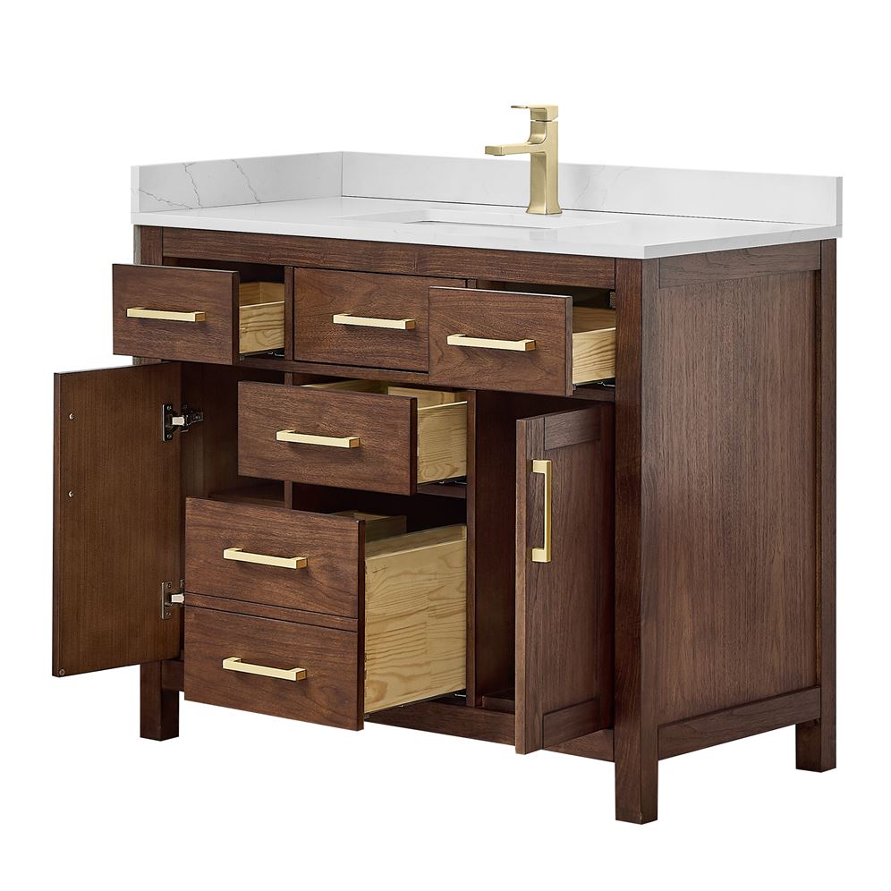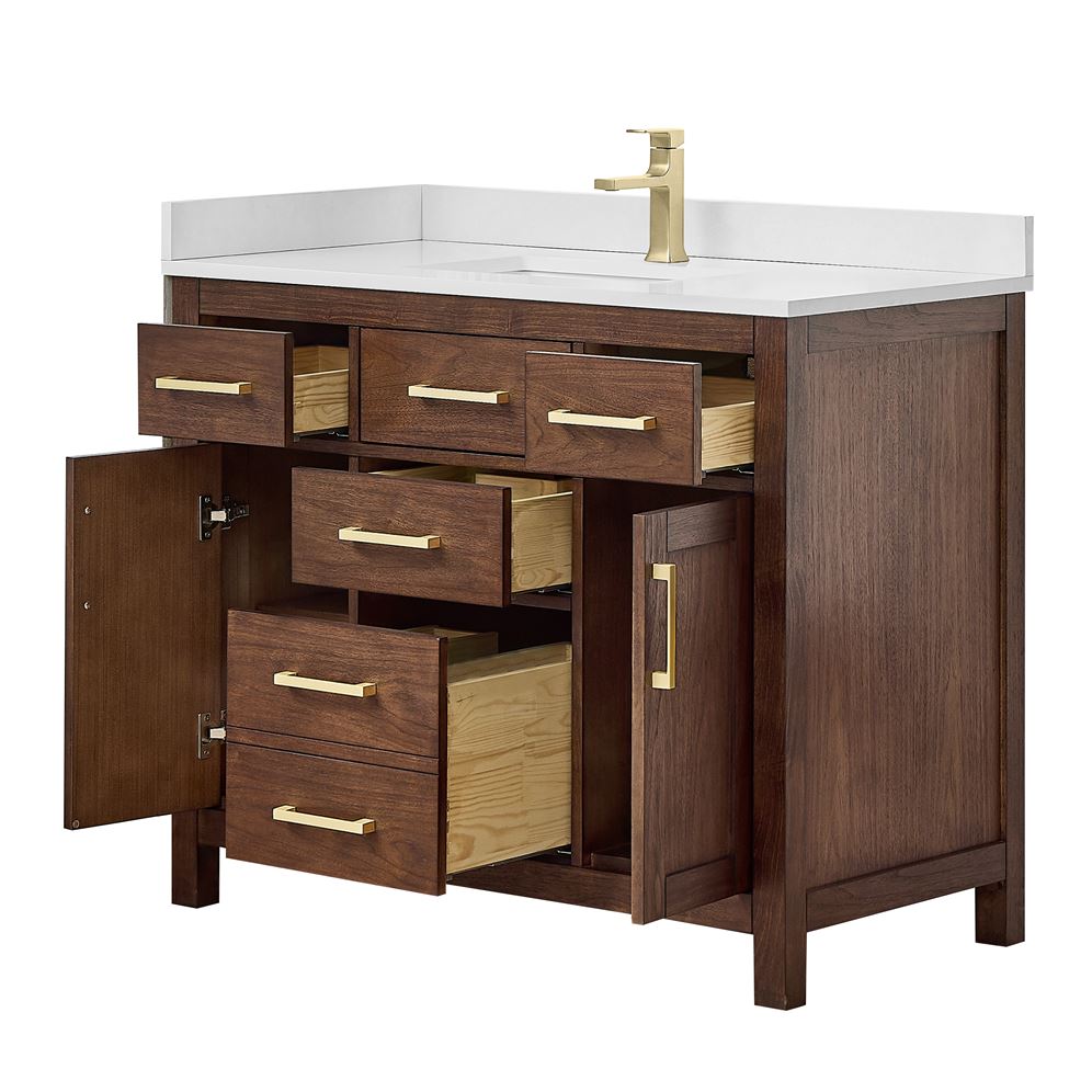 Fantastic value and classic design. The elegant Beckett vanity has it all, with quality touches like brushed nickel, brushed gold, or matte black accents, with dove-tailed drawers, and soft-close doors and drawers. Ample storage and a double-depth lower drawer give you plenty of room for those bathroom necessities. Do your bathroom right, with the beautiful Beckett vanity series.