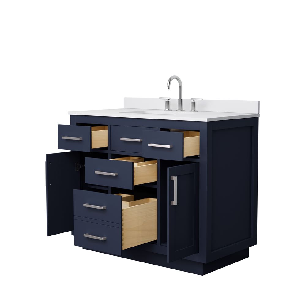 Elevate your bathroom with the Beckett vanity series. Experience timeless design, quality craftsmanship, and thoughtful details with brushed nickel, brushed gold, or matte black accents. This vanity features dove-tailed drawers, cultured marble or quartz counters, and soft-close doors and drawers. The Beckett vanity offers ample storage and a stylish double-depth lower drawer. Redefine your bathroom space with the perfect blend of elegance and functionality.