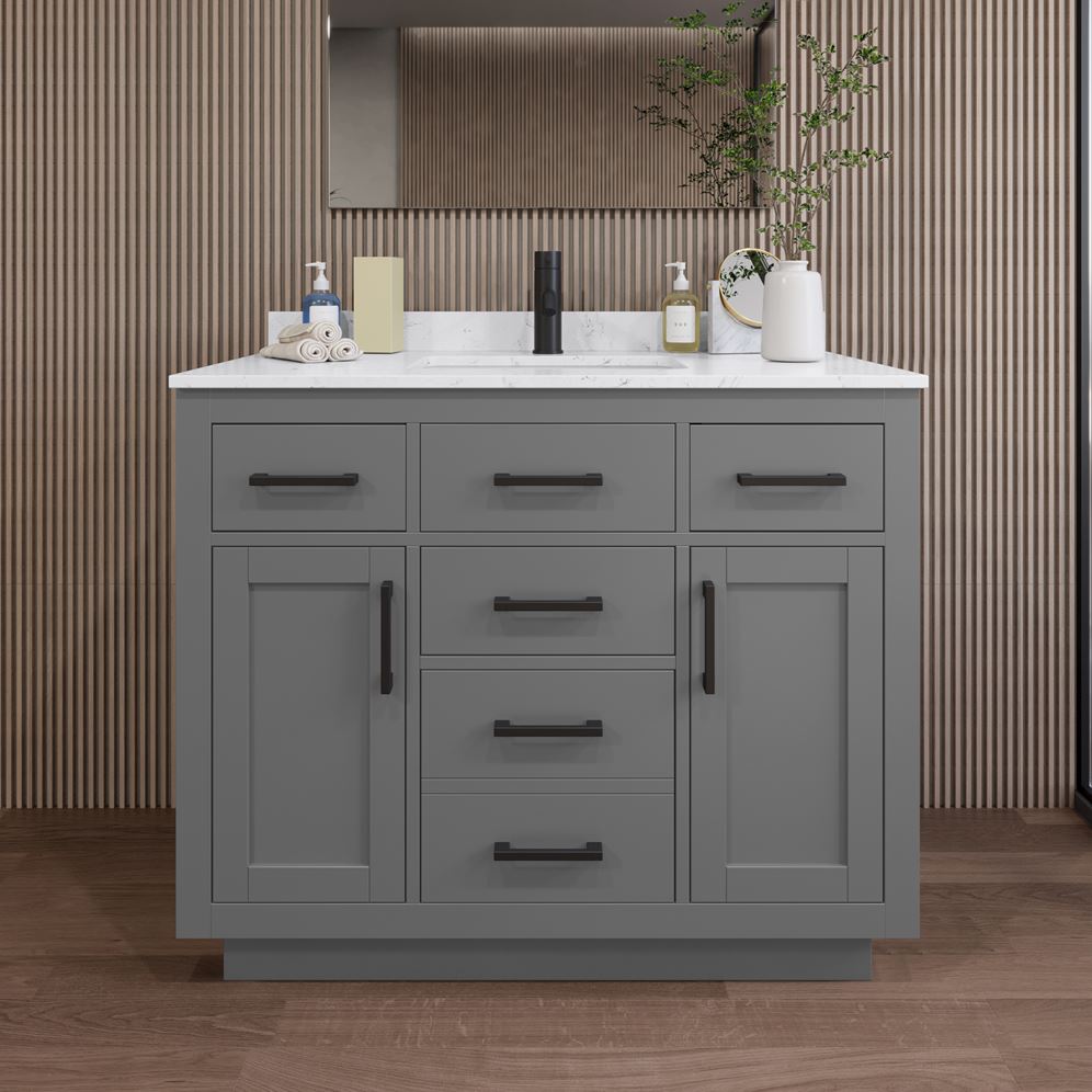 Beckett 42" Single Bathroom Vanity with Toe Kick - Dark Gray