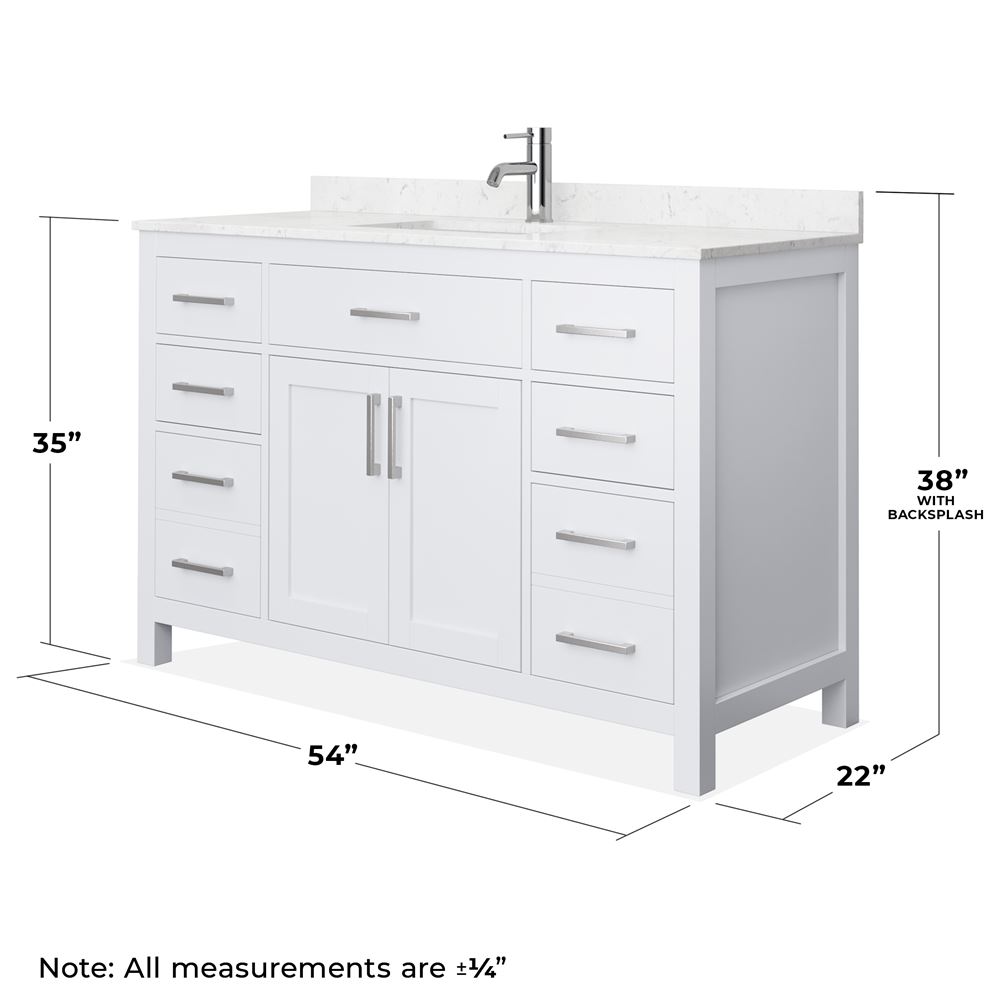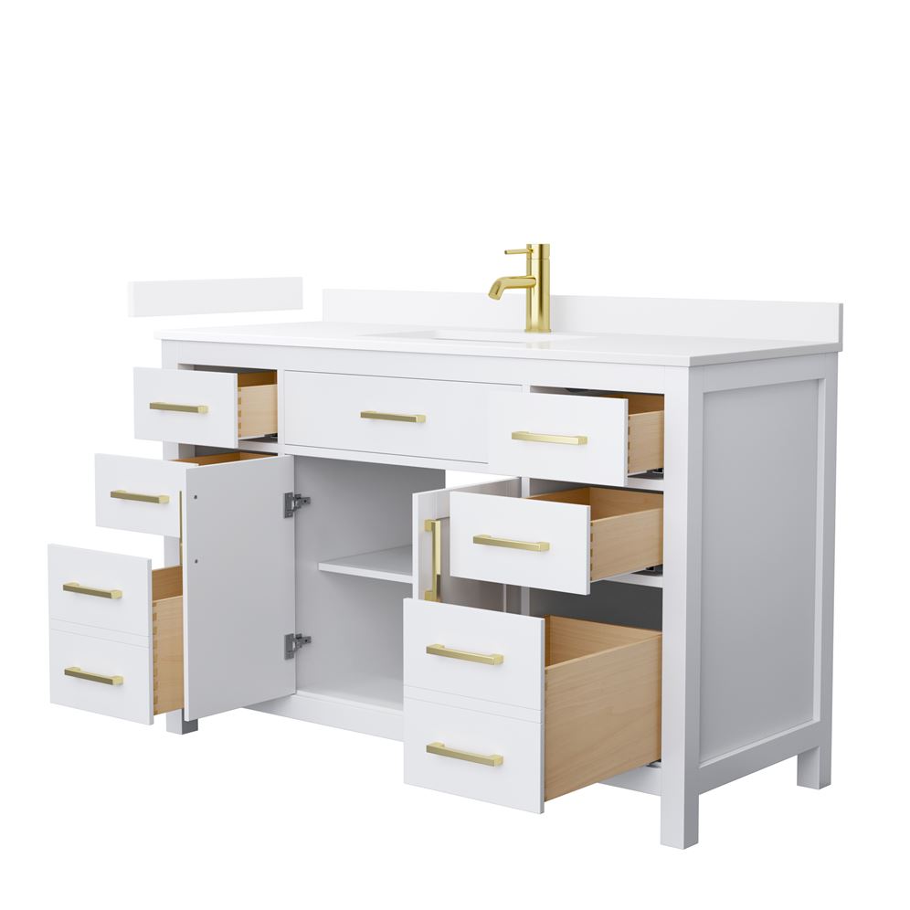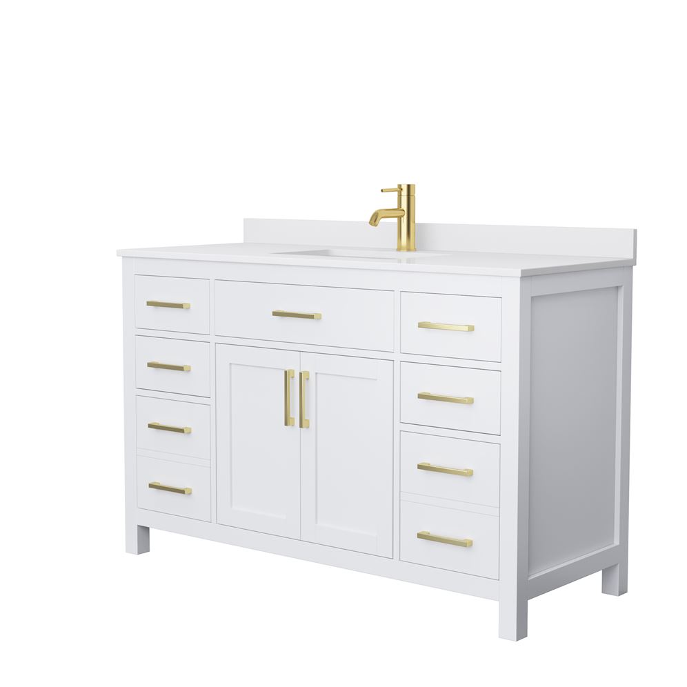 Fantastic value and classic design. The elegant Beckett vanity has it all, with quality touches like brushed nickel, brushed gold, or matte black accents, dove-tailed drawers, cultured marble counters and soft-close doors and drawers. Ample storage and a double-depth lower drawer give you plenty of room for those bathroom necessities. Do your bathroom right, with the beautiful Beckett vanity series.