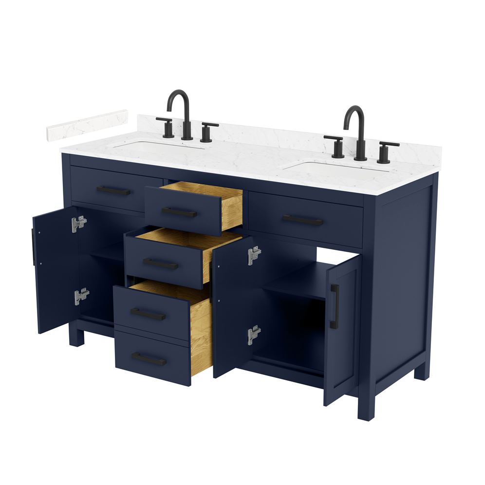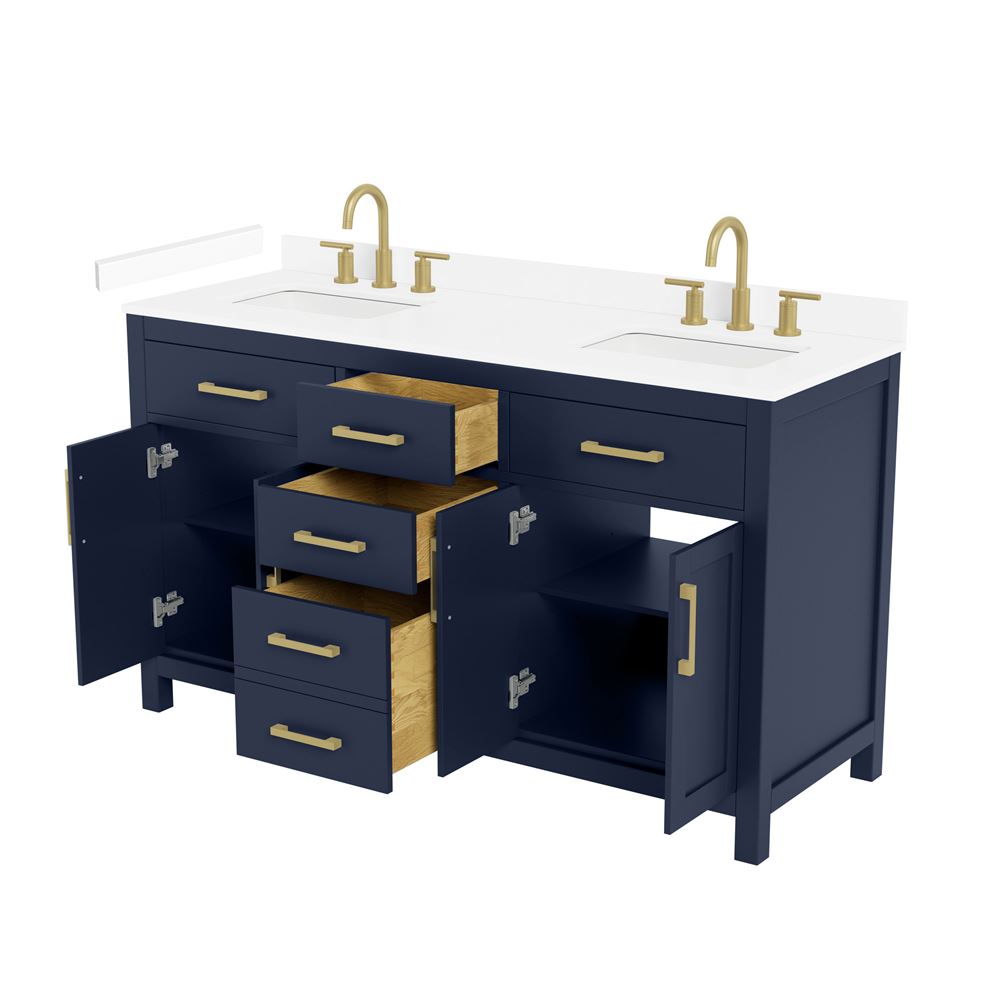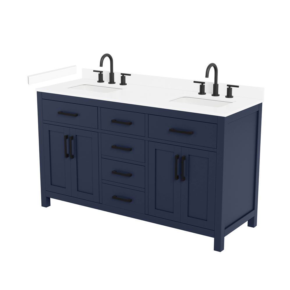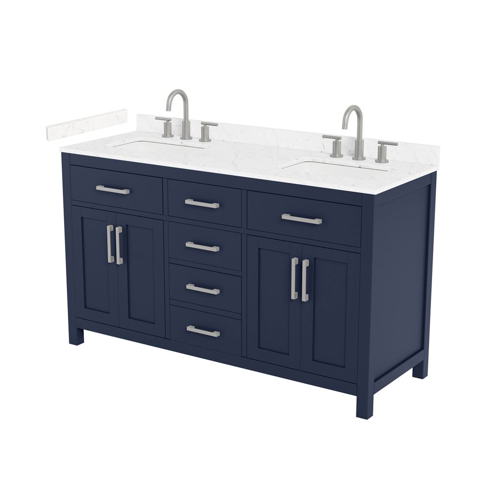 Fantastic value and classic design. The elegant Beckett vanity has it all, with quality touches like brushed nickel, brushed gold, or matte black accents, dove-tailed drawers, and soft-close doors and drawers. Ample storage and a double-depth lower drawer give you plenty of room for those bathroom necessities. Do your bathroom right, with the beautiful Beckett vanity series.