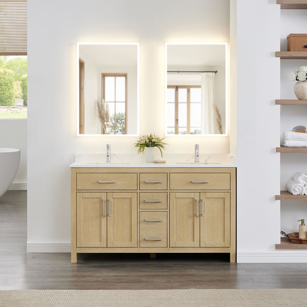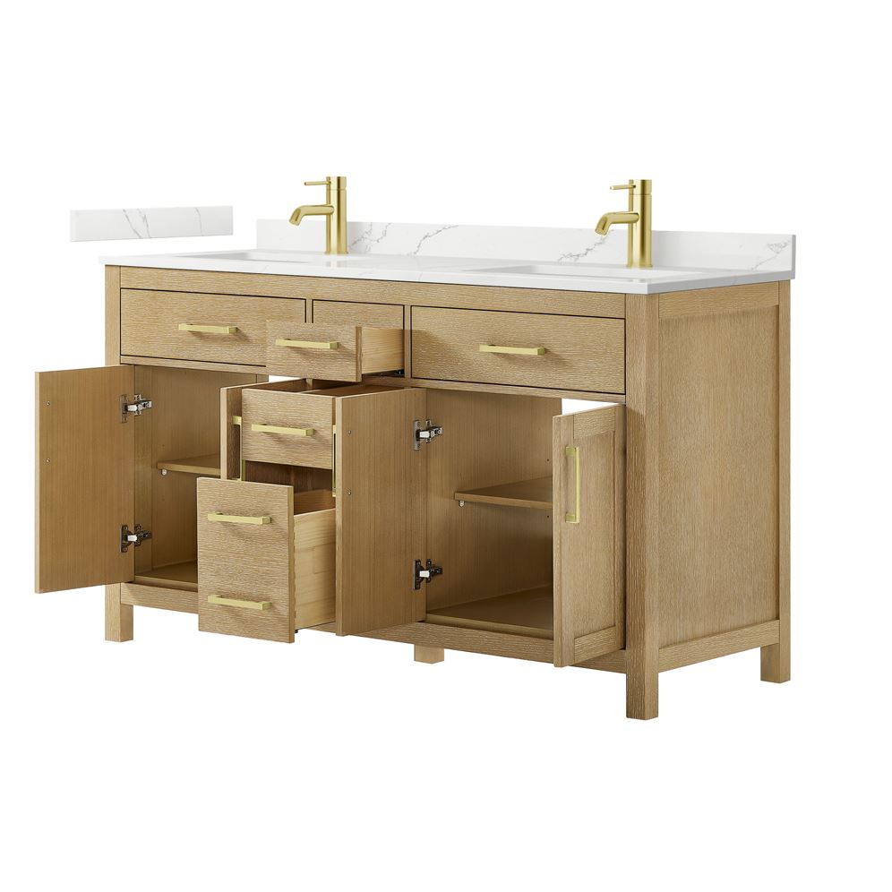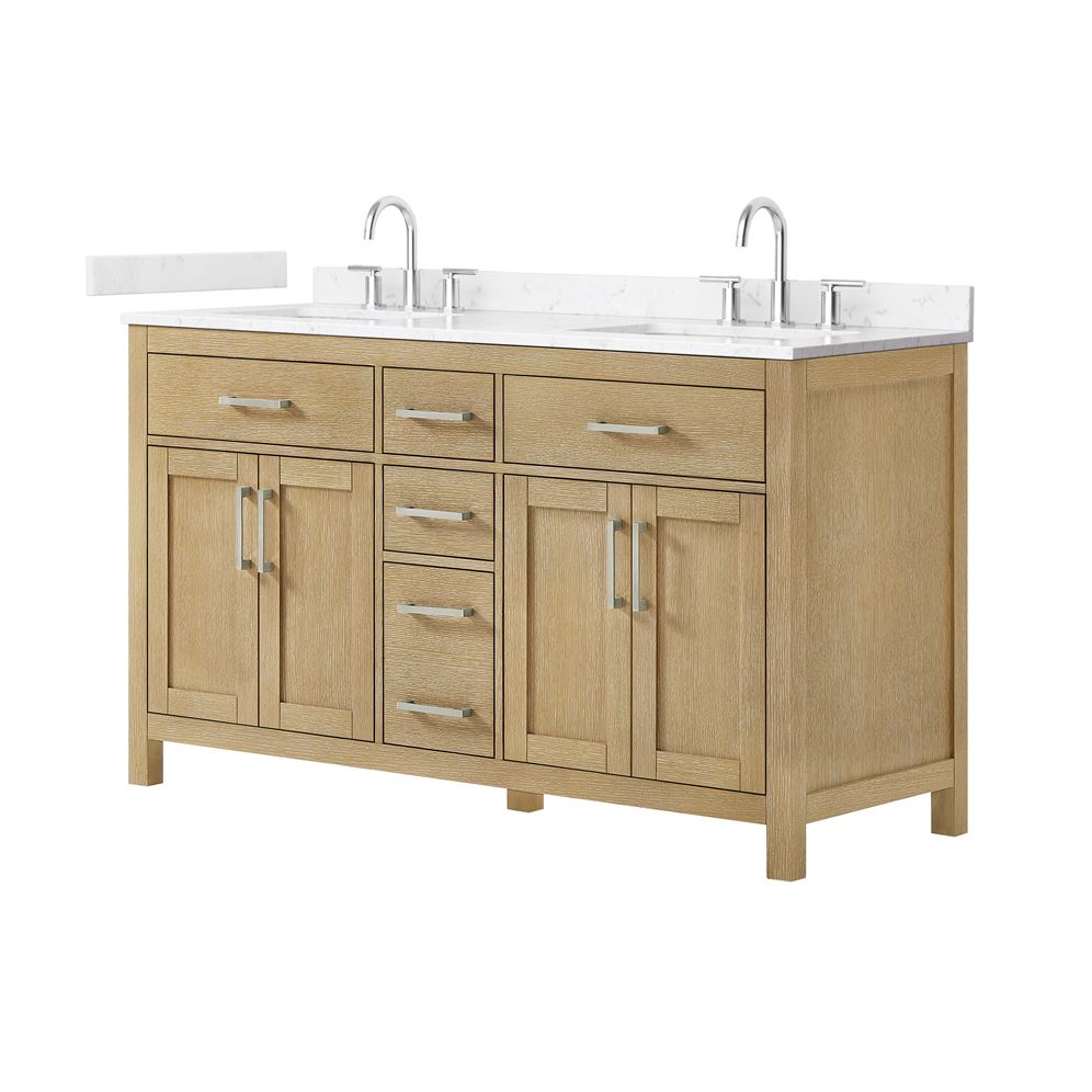 Beckett 60" Double Bathroom Vanity - Whitewashed Oak