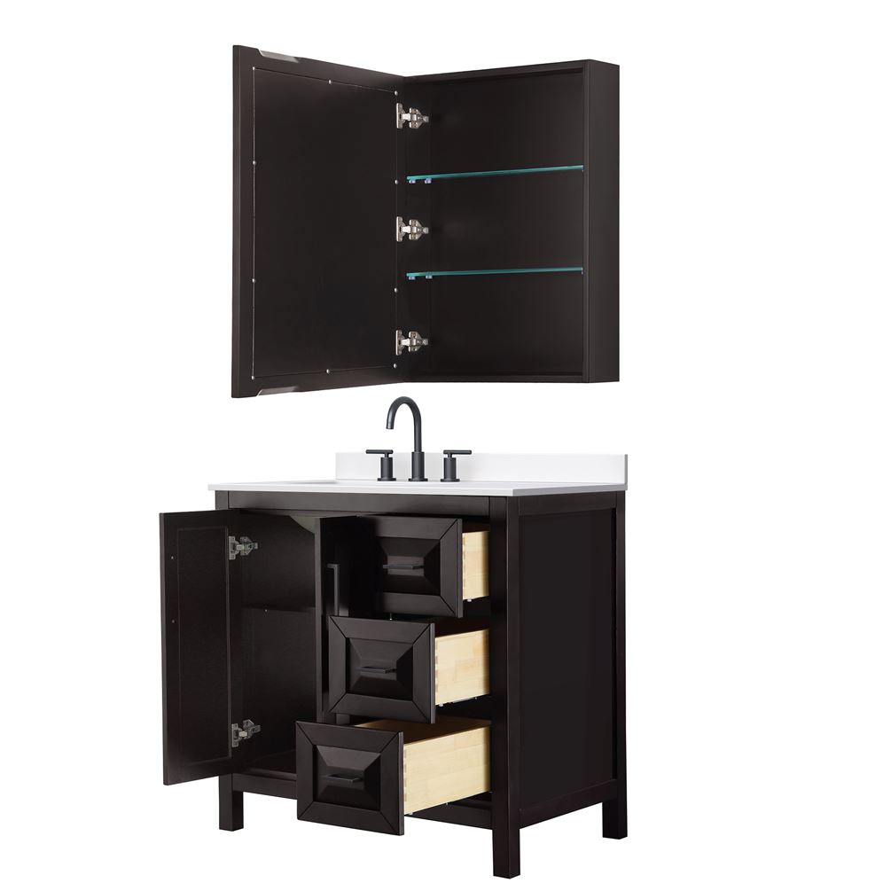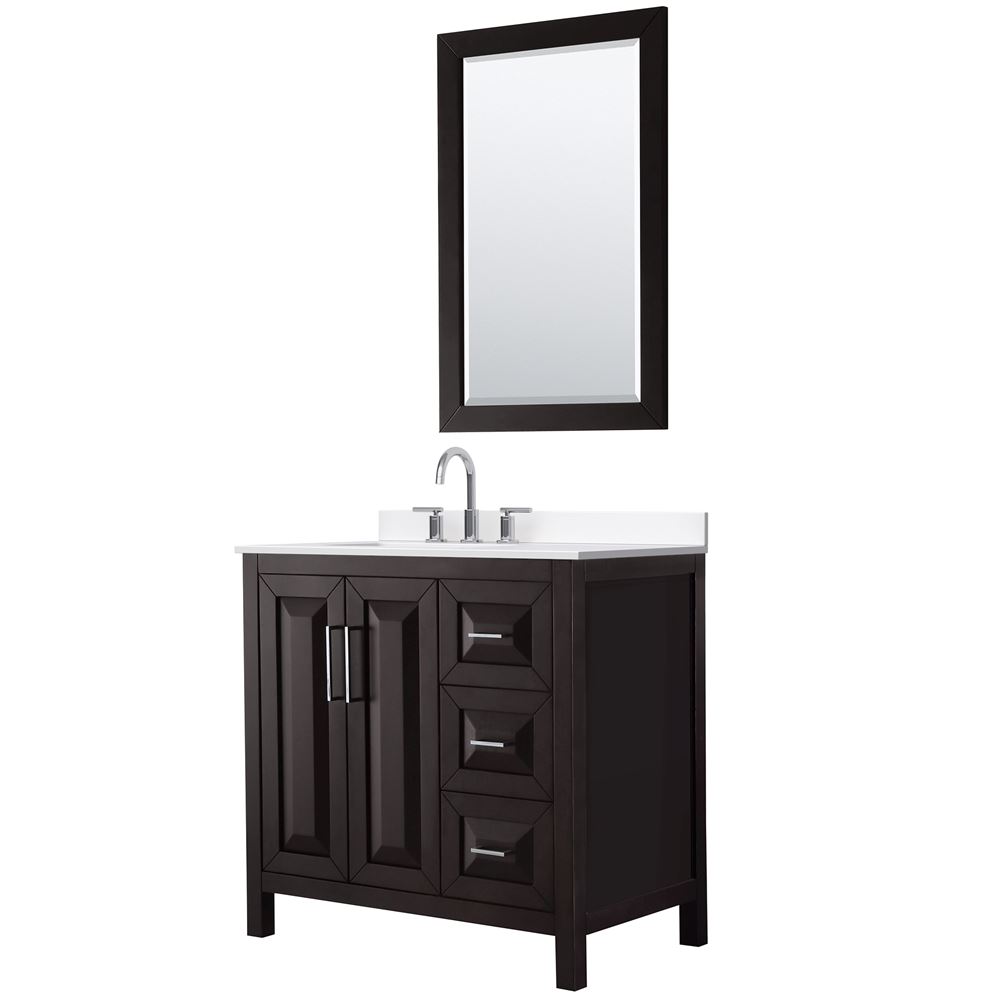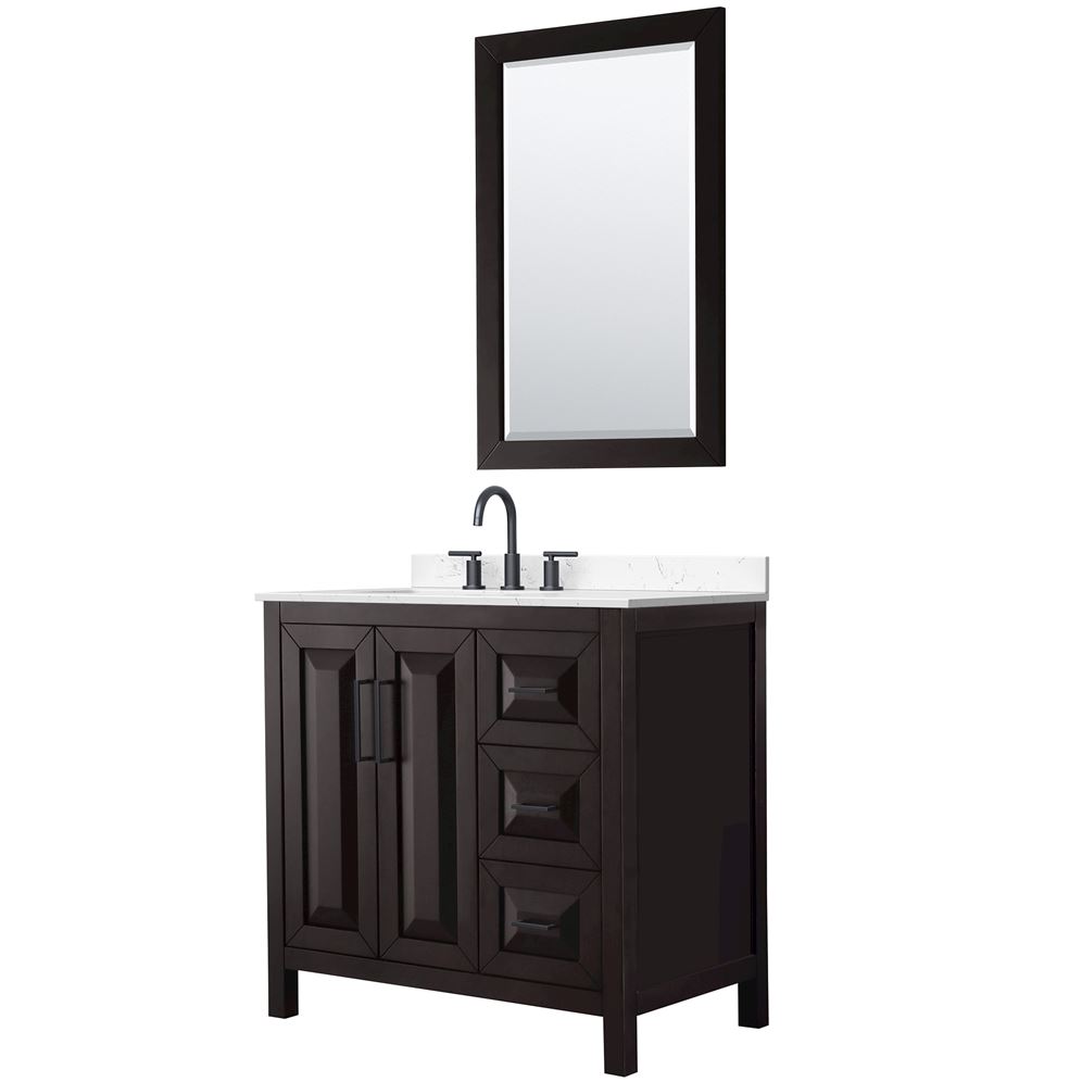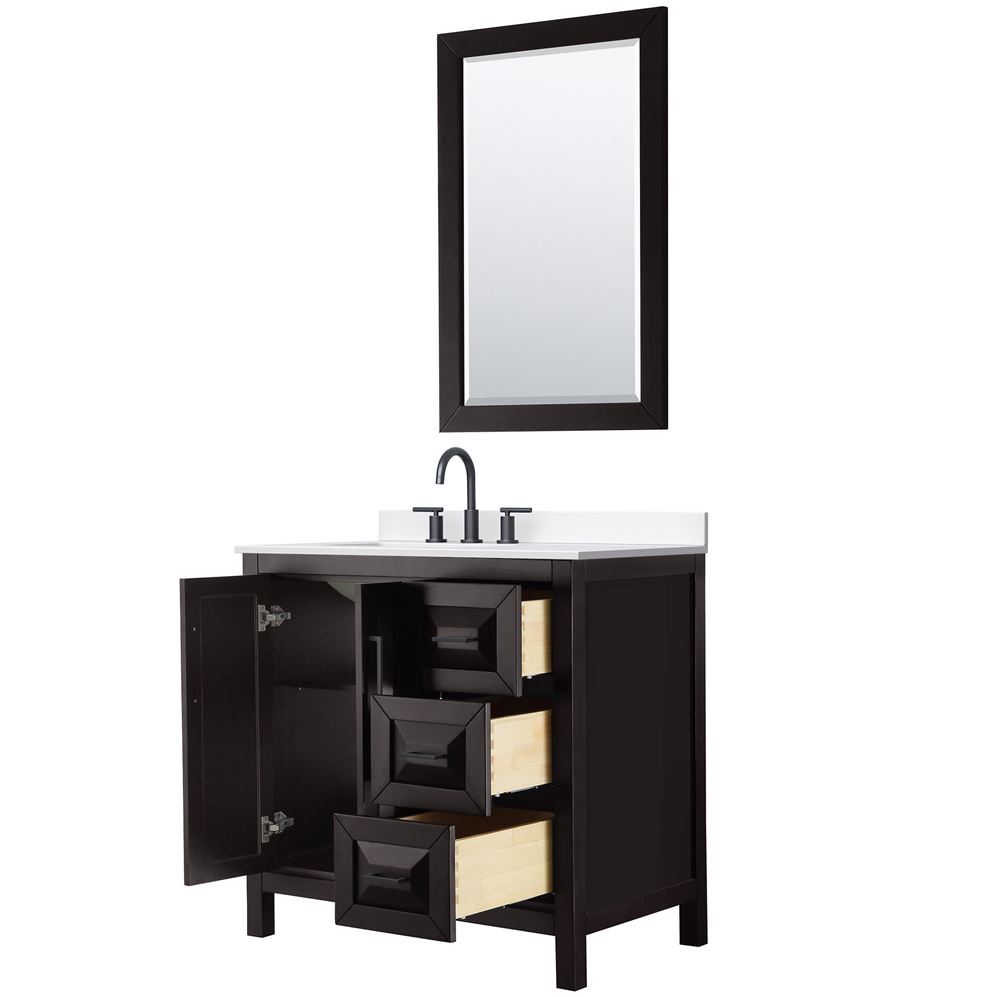 The beautiful Daria collection vanities stand out in any bathroom with strong, clean lines, raised panels and elegant counters with square sinks. There's plenty of cabinet space, the fully extending drawers are dovetail construction, and matte black or polished chrome finish detailing completes the look. Daria vanities deftly combine the function of today with a nod to the elegance of the past. It's the new modern - classic styling with a contemporary twist.