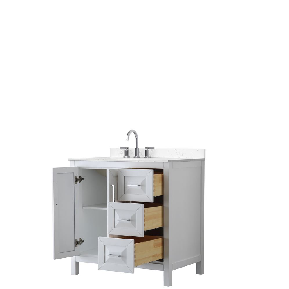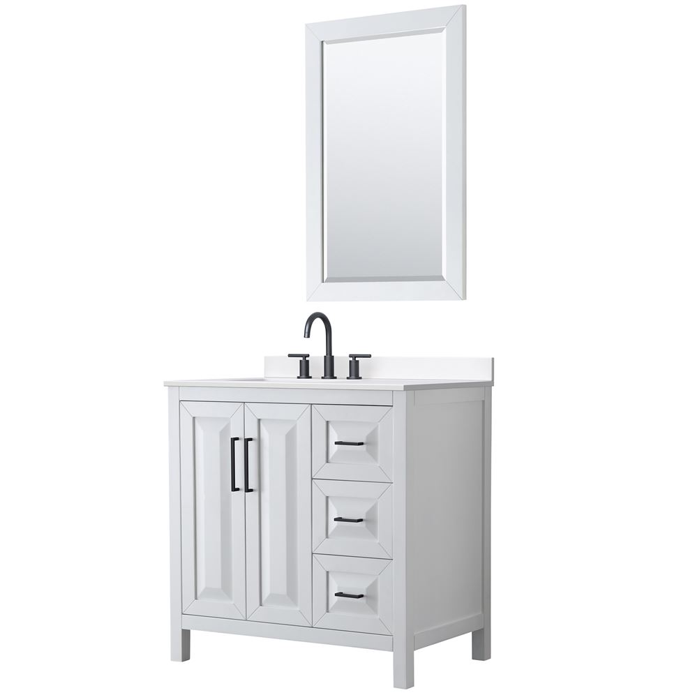 The beautiful Daria collection vanities stand out in any bathroom with strong, clean lines, raised panels and elegant counters with square sinks. There's plenty of cabinet space, the fully extending drawers are dovetail construction, and matte black, polished chrome, or brushed gold finish detailing completes the look. Daria vanities deftly combine the function of today with a nod to the elegance of the past. It's the new modern - classic styling with a contemporary twist.