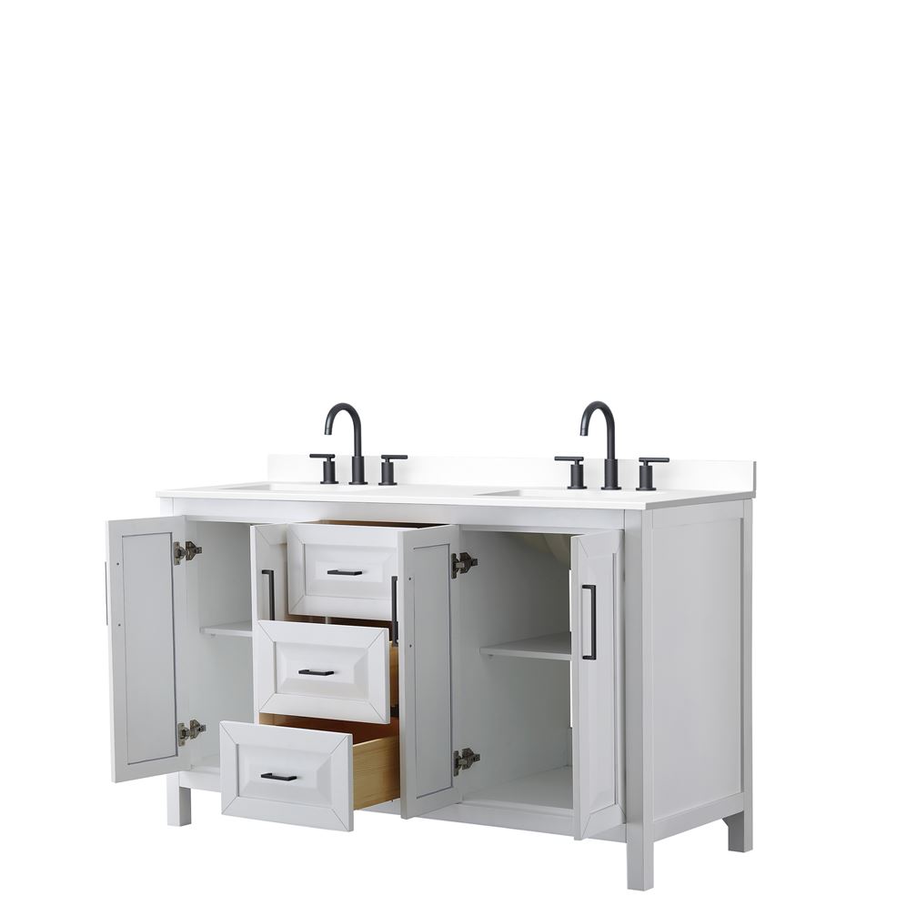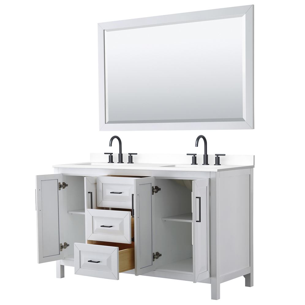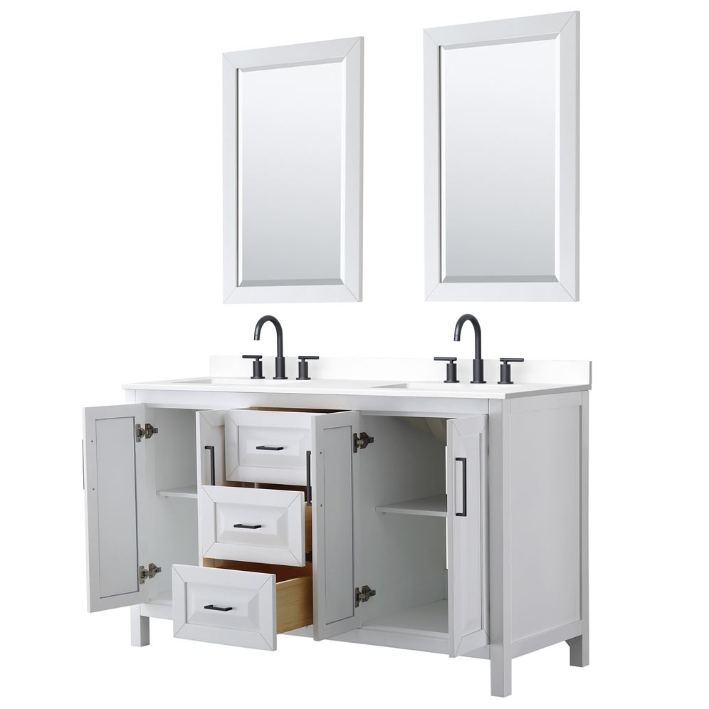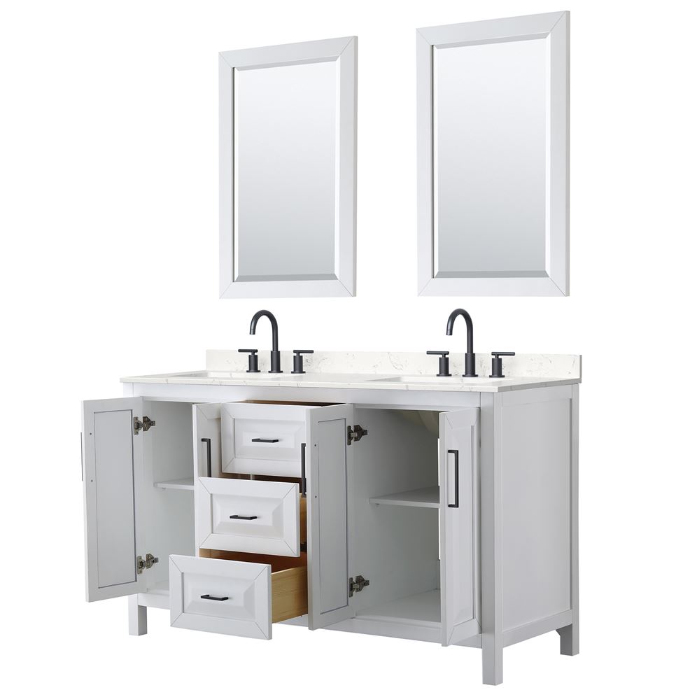 The beautiful Daria collection vanities stand out in any bathroom with strong, clean lines, raised panels and elegant counters with square sinks. There's plenty of cabinet space, the fully extending drawers are dovetail construction, and matte black, brushed gold, or polished chrome finish detailing completes the look. Daria vanities deftly combine the function of today with a nod to the elegance of the past. It's the new modern - classic styling with a contemporary twist.