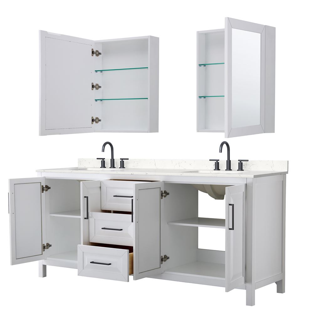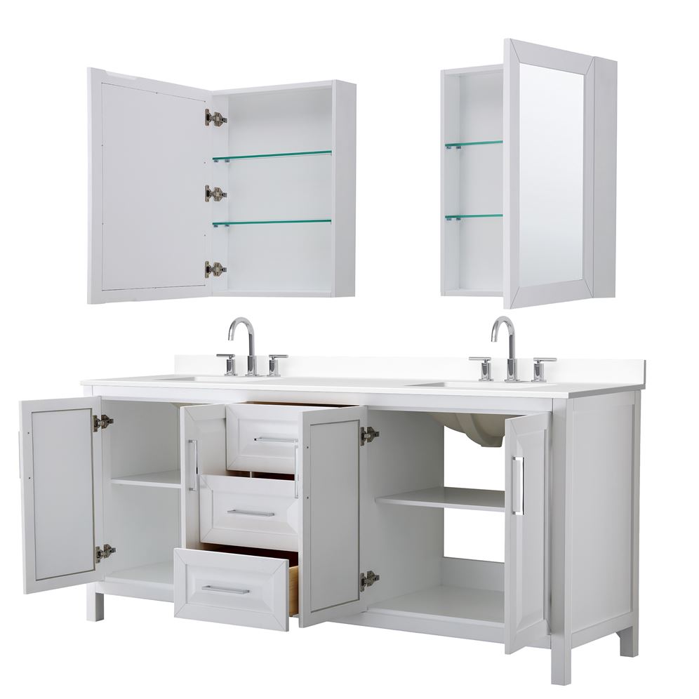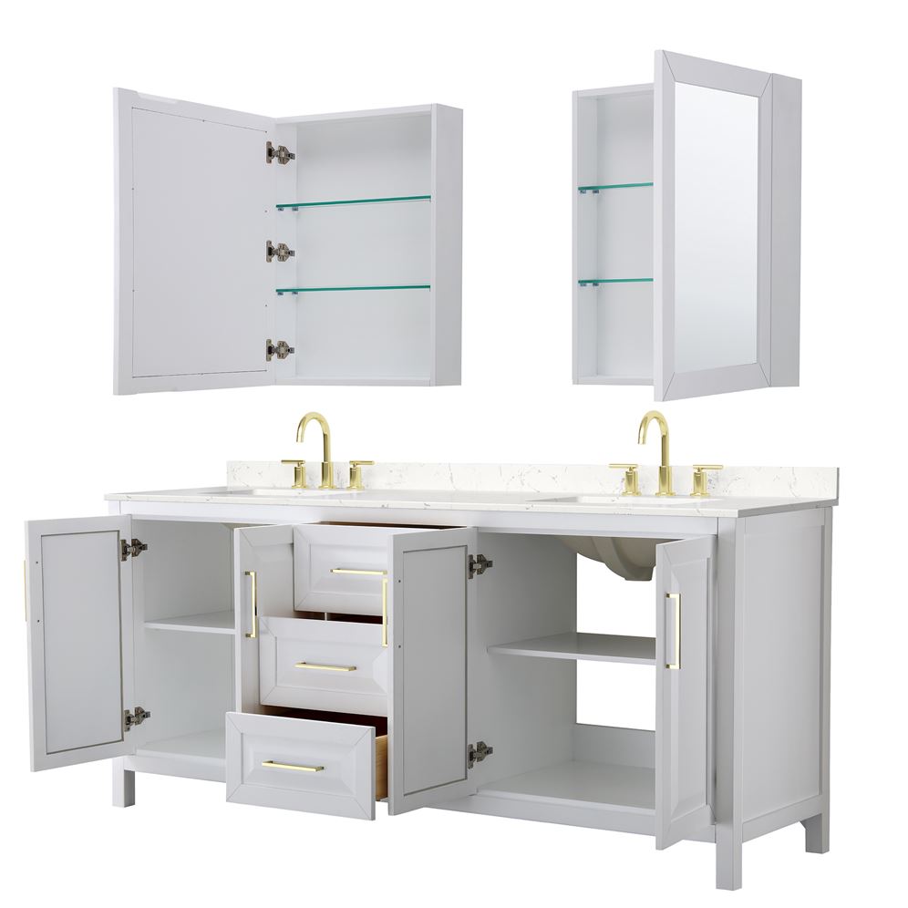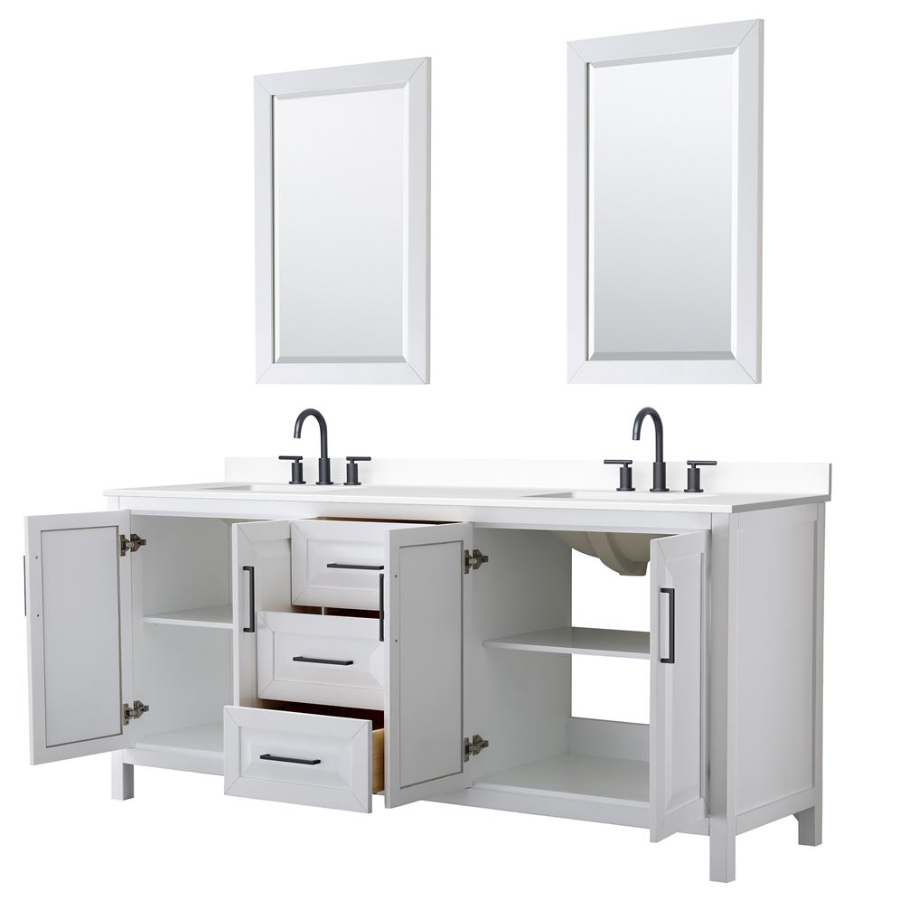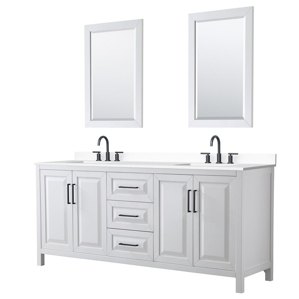 The beautiful Daria collection vanities stand out in any bathroom with strong, clean lines, raised panels and elegant counters with square sinks. There's plenty of cabinet space, the fully extending drawers are dovetail construction, and matte black, polised chrome, or brushed gold finish detailing completes the look. Daria vanities deftly combine the function of today with a nod to the elegance of the past. It's the new modern - classic styling with a contemporary twist.
