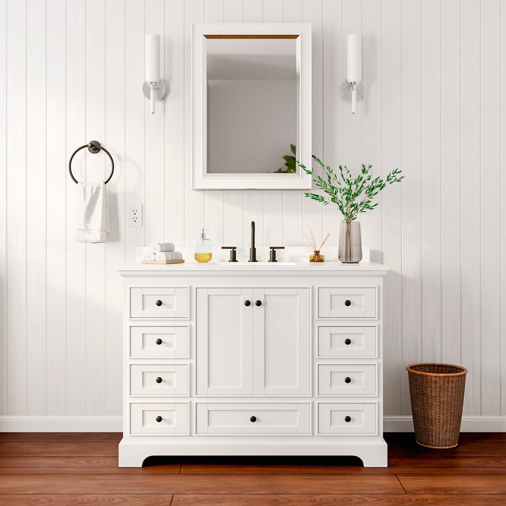 Deborah Single Bathroom Vanity (48" White), Drag to Rotate