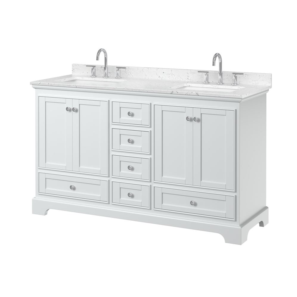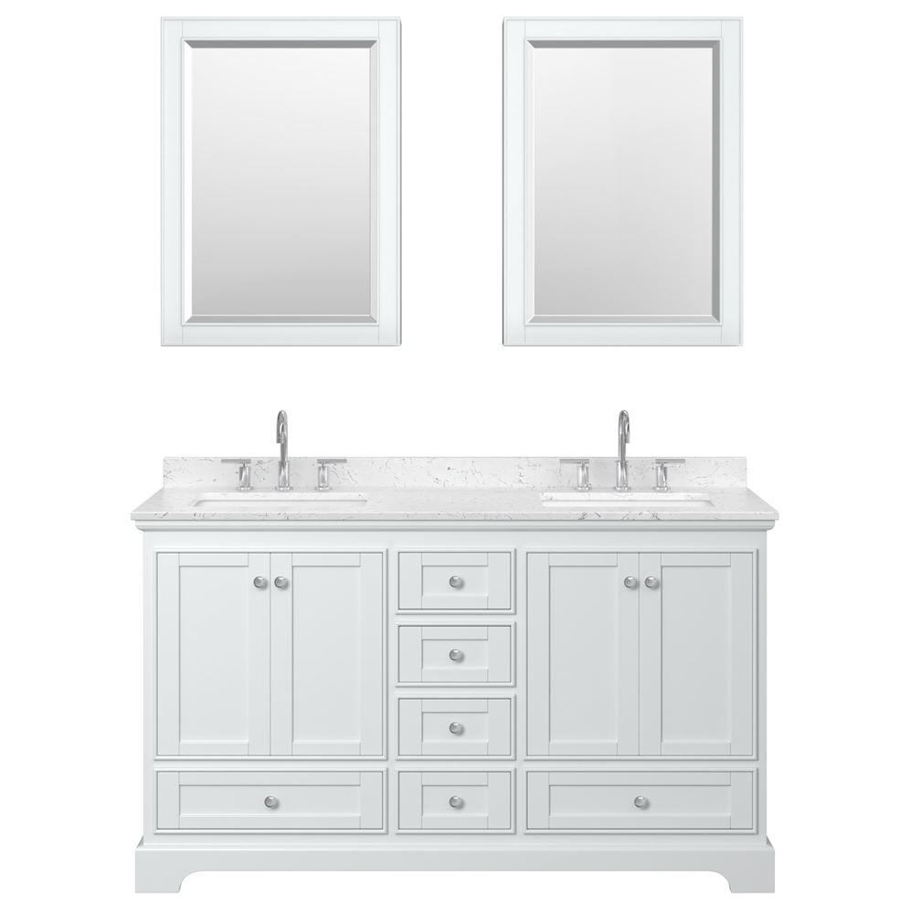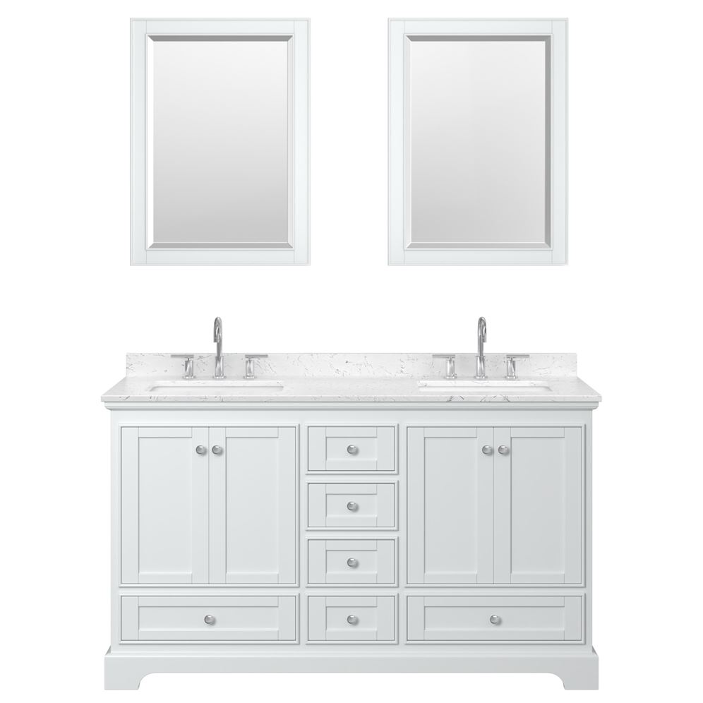 - White Carrara Marble Countertops are drilled for 8" Widespread 3-hole faucet mounts