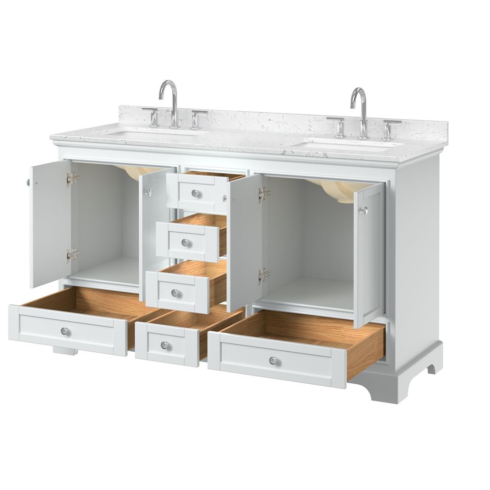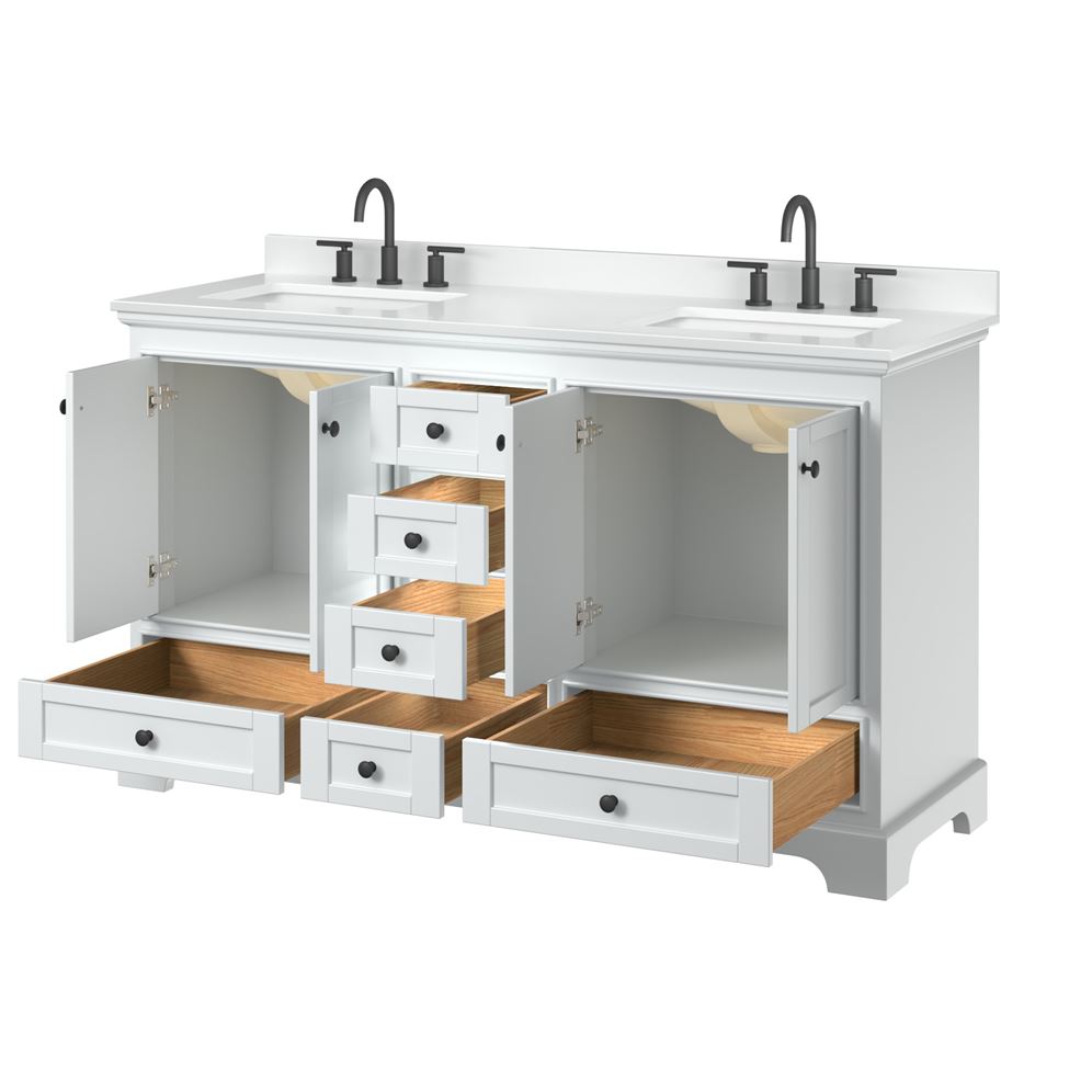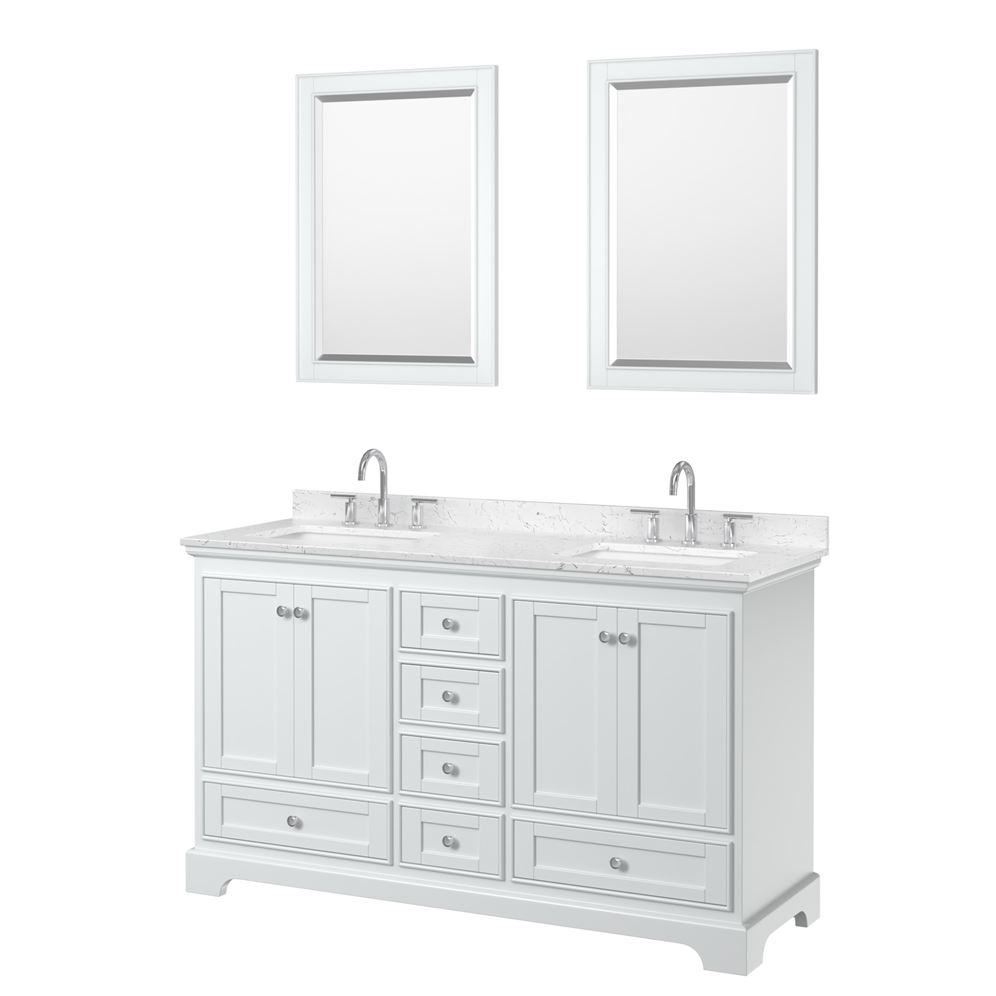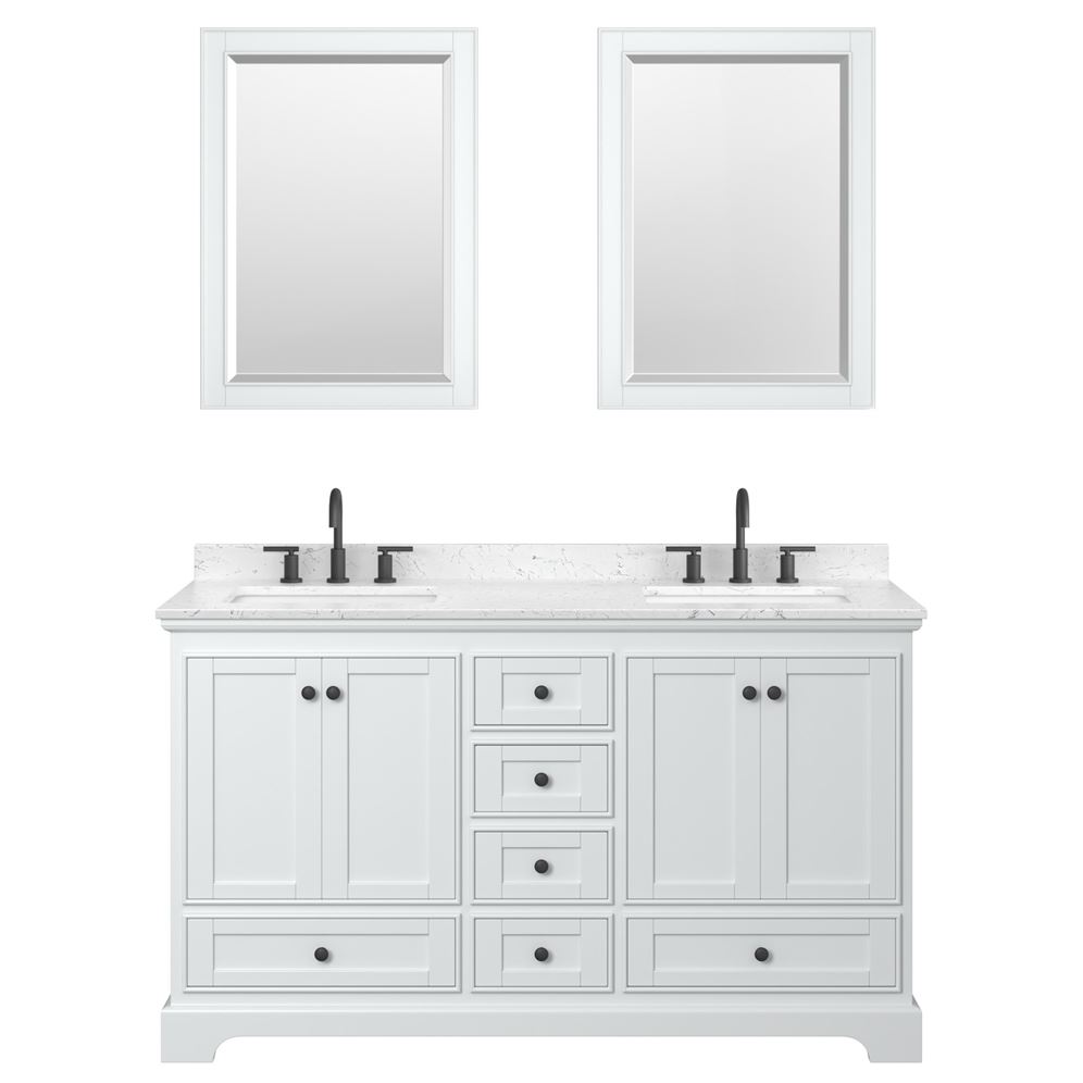 - White Carrara Marble Countertops are drilled for 8" Widespread 3-hole faucet mounts