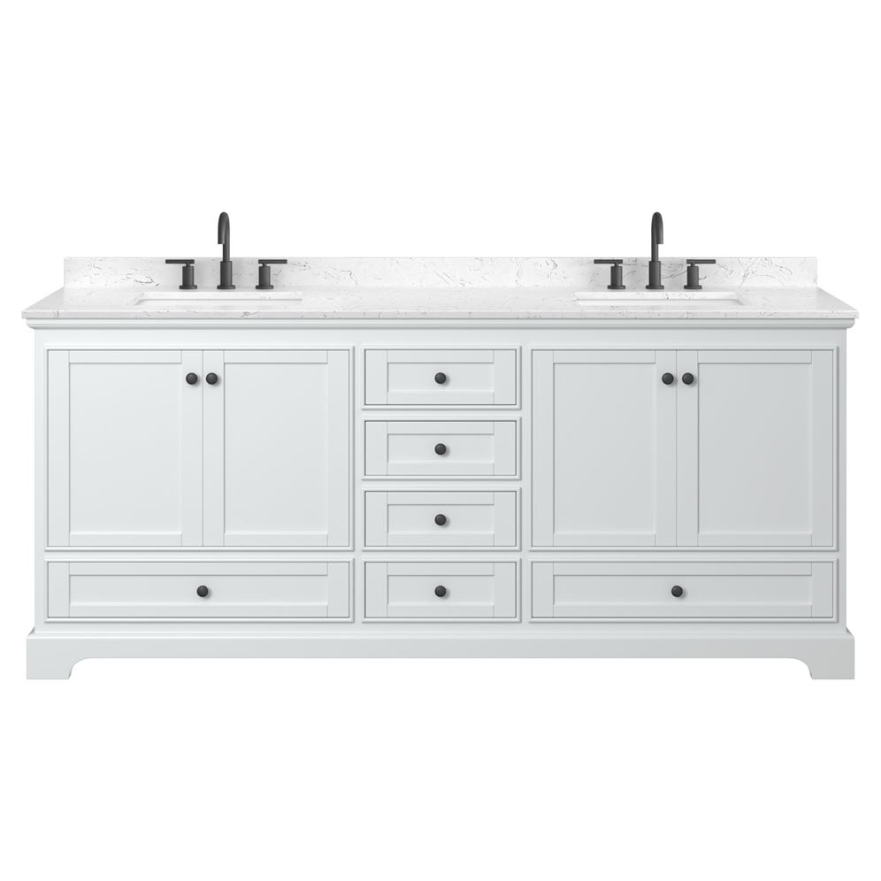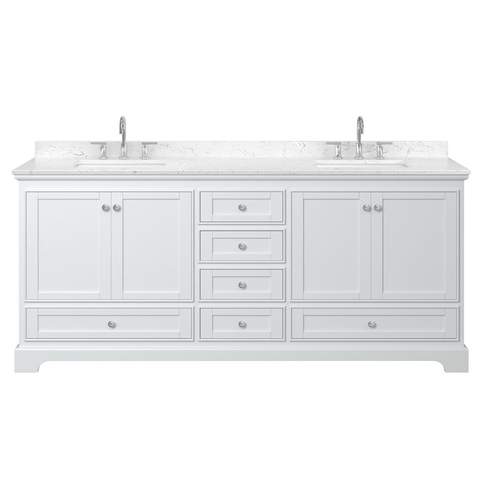 - White Carrara Marble Countertops are drilled for 8" Widespread 3-hole faucet mounts