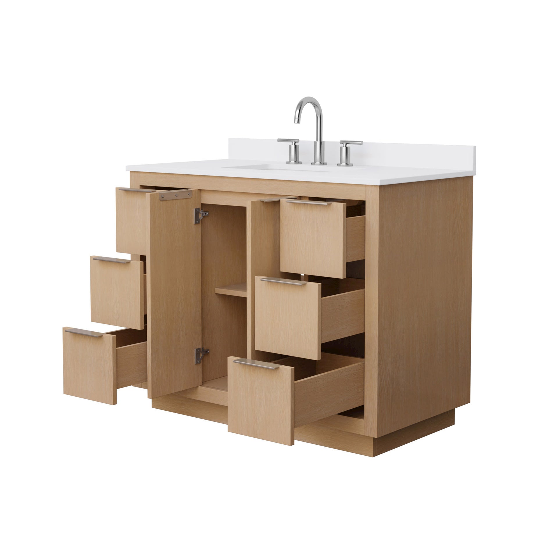 The Maroni freestanding bathroom vanity captures the essence of modern sophistication, grounding your space with clean, continuous architectural lines and a meticulously integrated toe kick for a seamless visual flow. Moving away from standard floating designs, this striking piece serves as a sophisticated focal point that effortlessly elevates the contemporary bath. Constructed of environmentally friendly, high-grade solid hardwood and other premium cabinet-grade materials, the Maroni is engineered to resist warping and built to last a lifetime. Beyond its stunning exterior, the cabinet provides ample organizational capacity across the entire line. Accented by minimalist metal hardware and equipped with fully extending, 3D adjustable soft-close glides for whisper-quiet operation, this exceptional fixture transforms your master or guest bath into a high-end, uncompromisingly elegant retreat.
