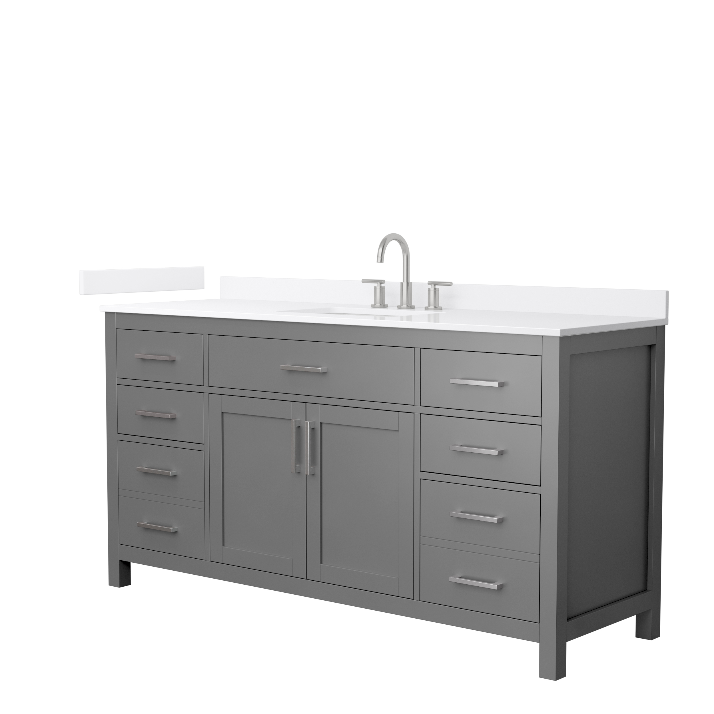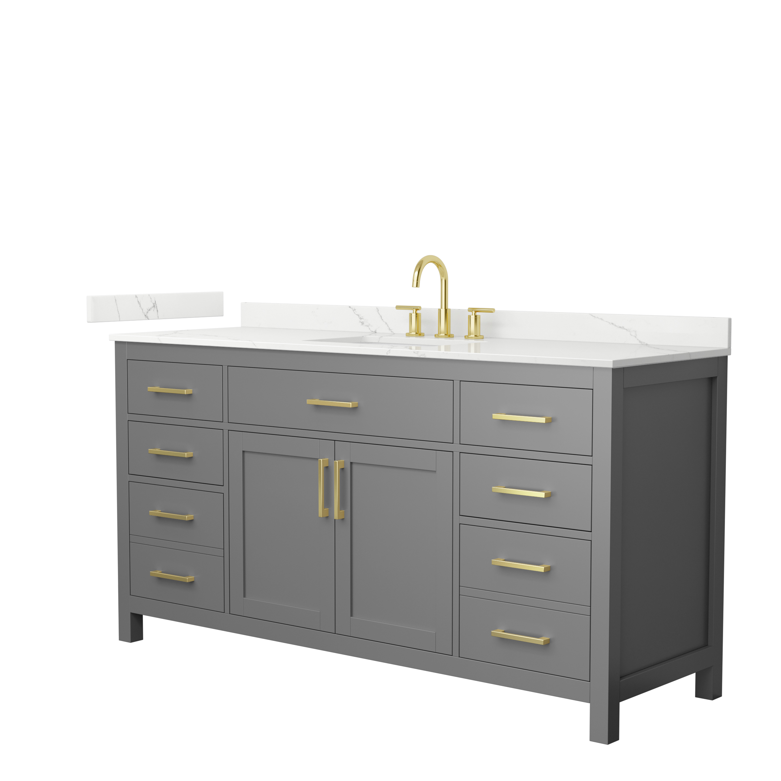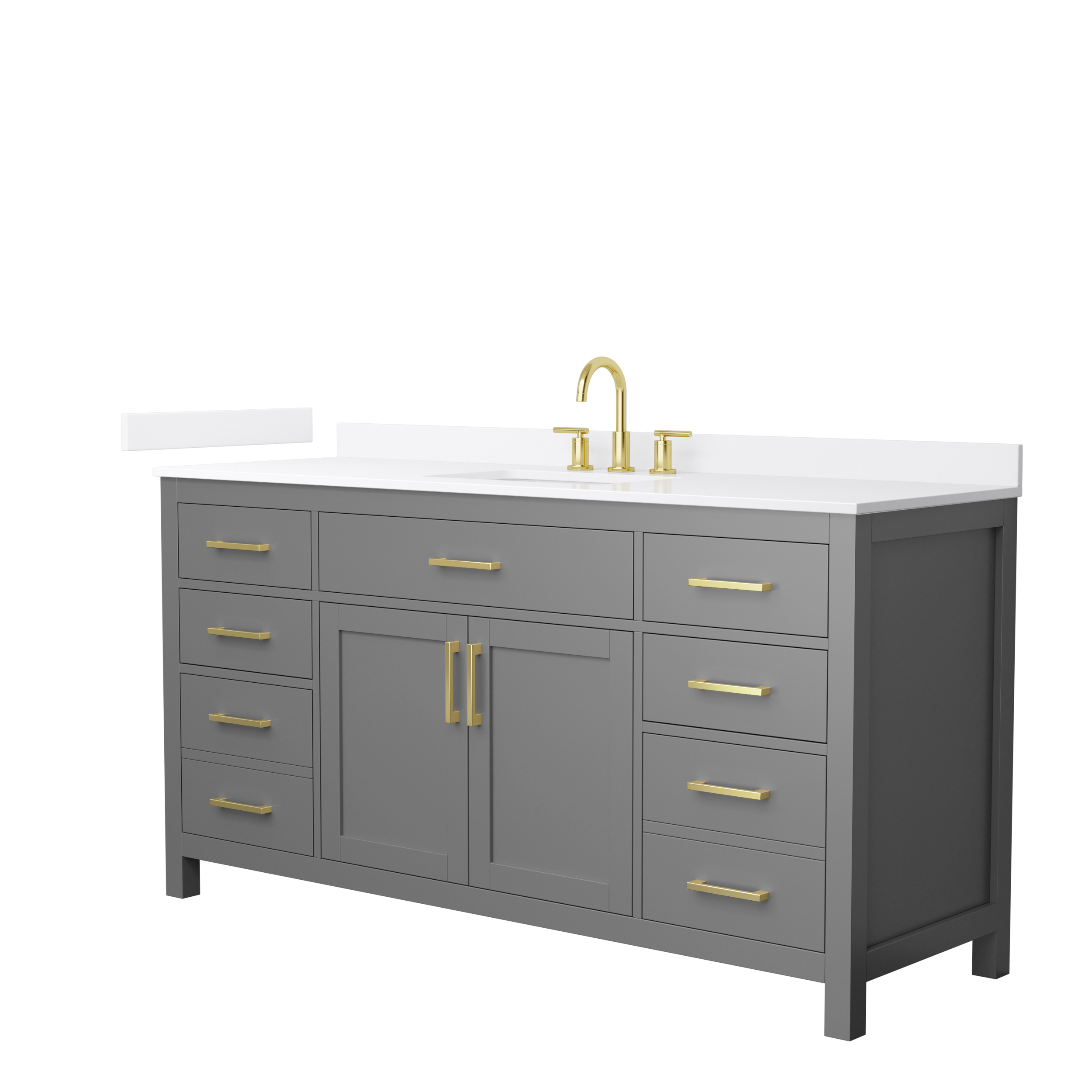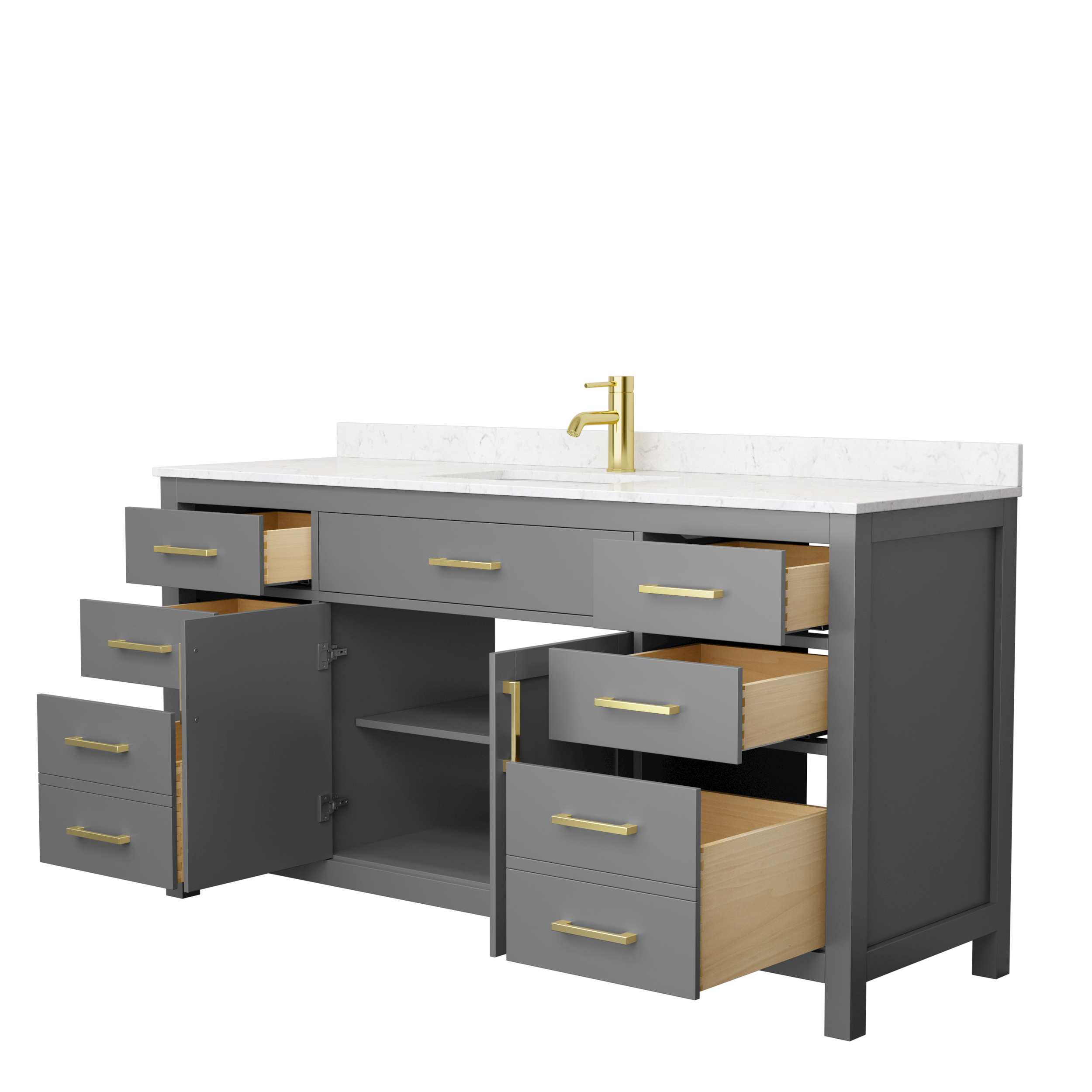 Fantastic value and classic design. The elegant Beckett vanity has it all, with quality touches like brushed nickel, brushed gold, or matte black accents, dove-tailed drawers, cultured marble counters and soft-close doors and drawers. Ample storage and a double-depth lower drawer give you plenty of room for those bathroom necessities. Do your bathroom right, with the beautiful Beckett vanity series.