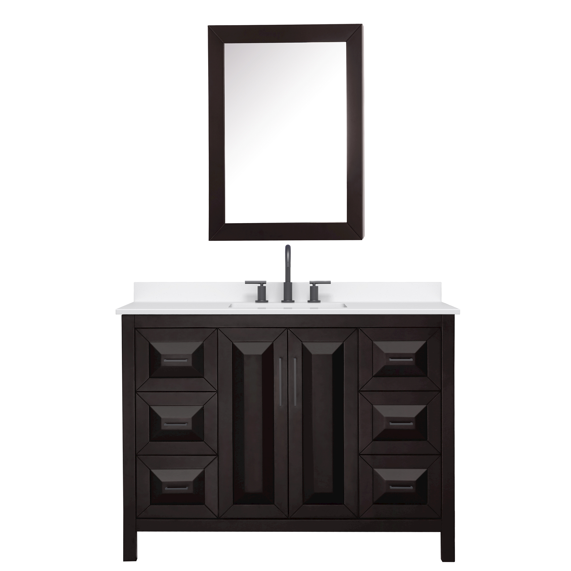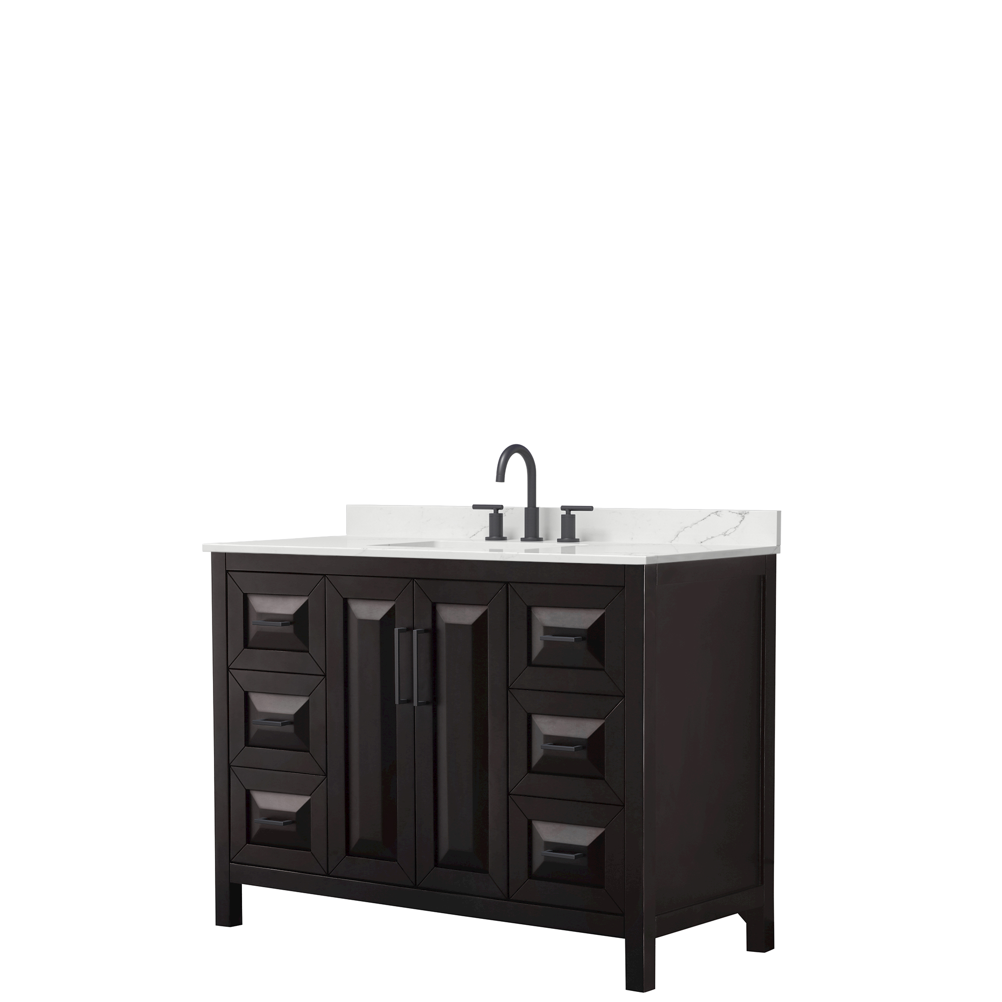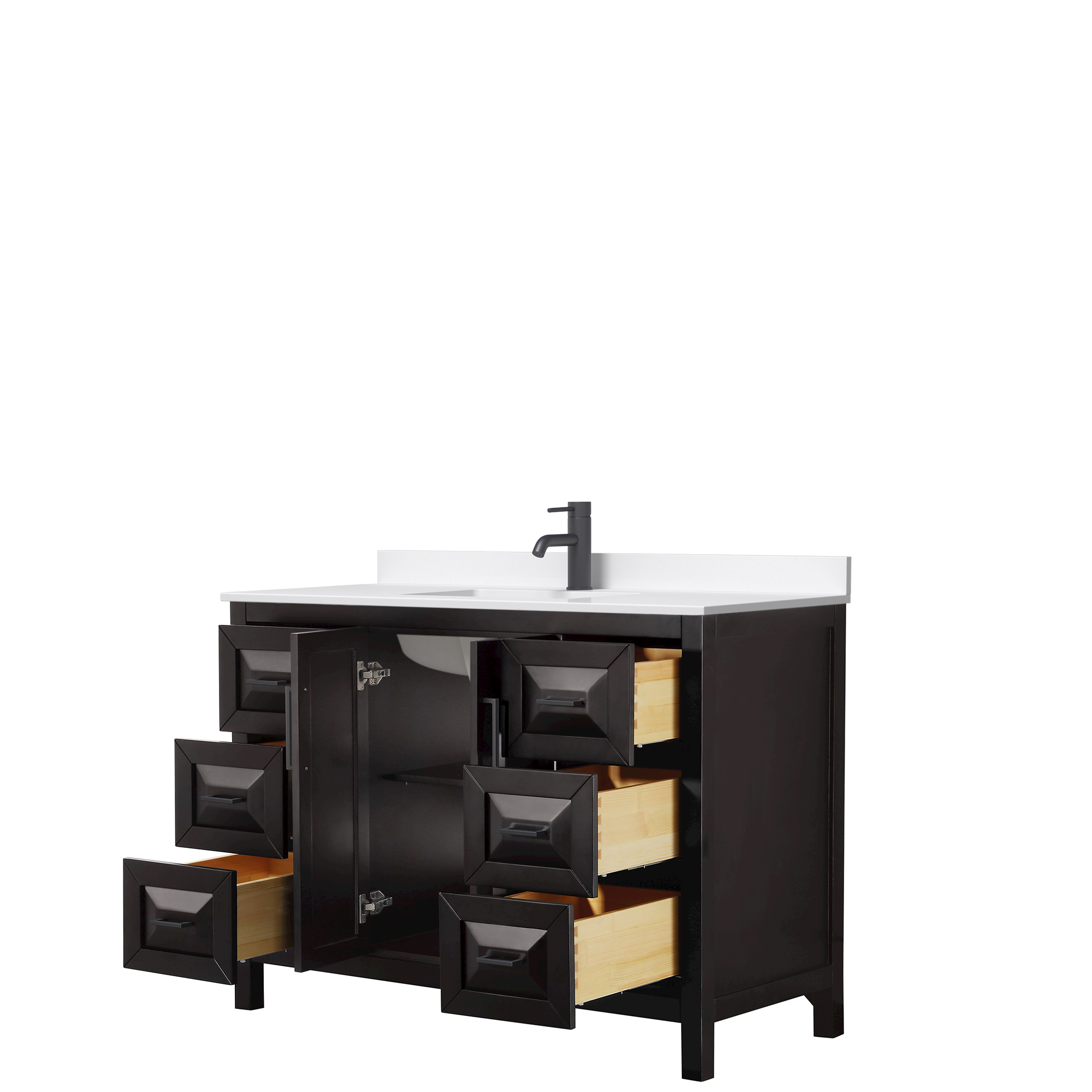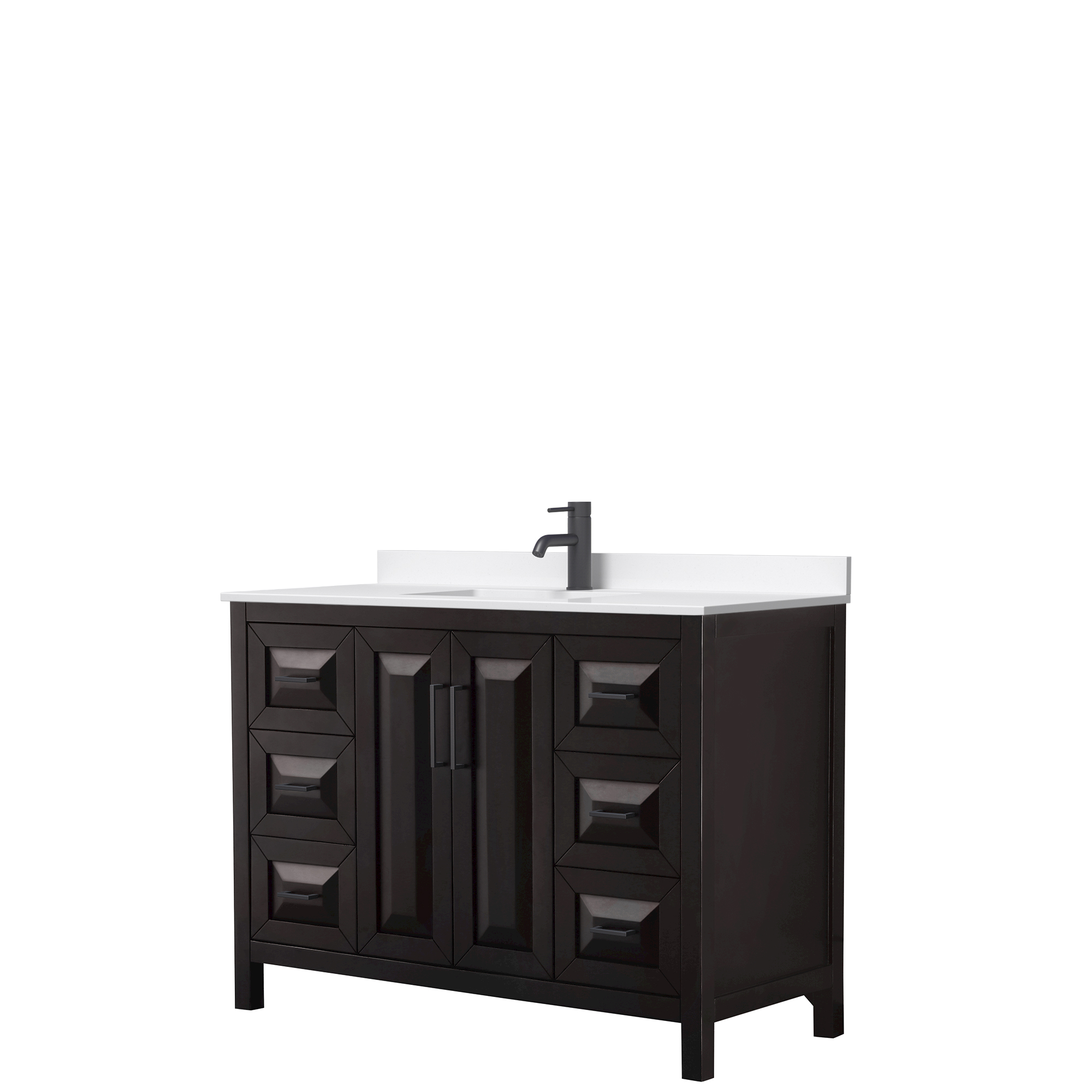 The beautiful Daria collection vanities stand out in any bathroom with strong, clean lines, raised panels and elegant counters with square sinks. There's plenty of cabinet space, the fully extending drawers are dovetail construction, and polished chrome or matte black finish detailing completes the look. Daria vanities deftly combine the function of today with a nod to the elegance of the past. It's the new modern - classic styling with a contemporary twist.