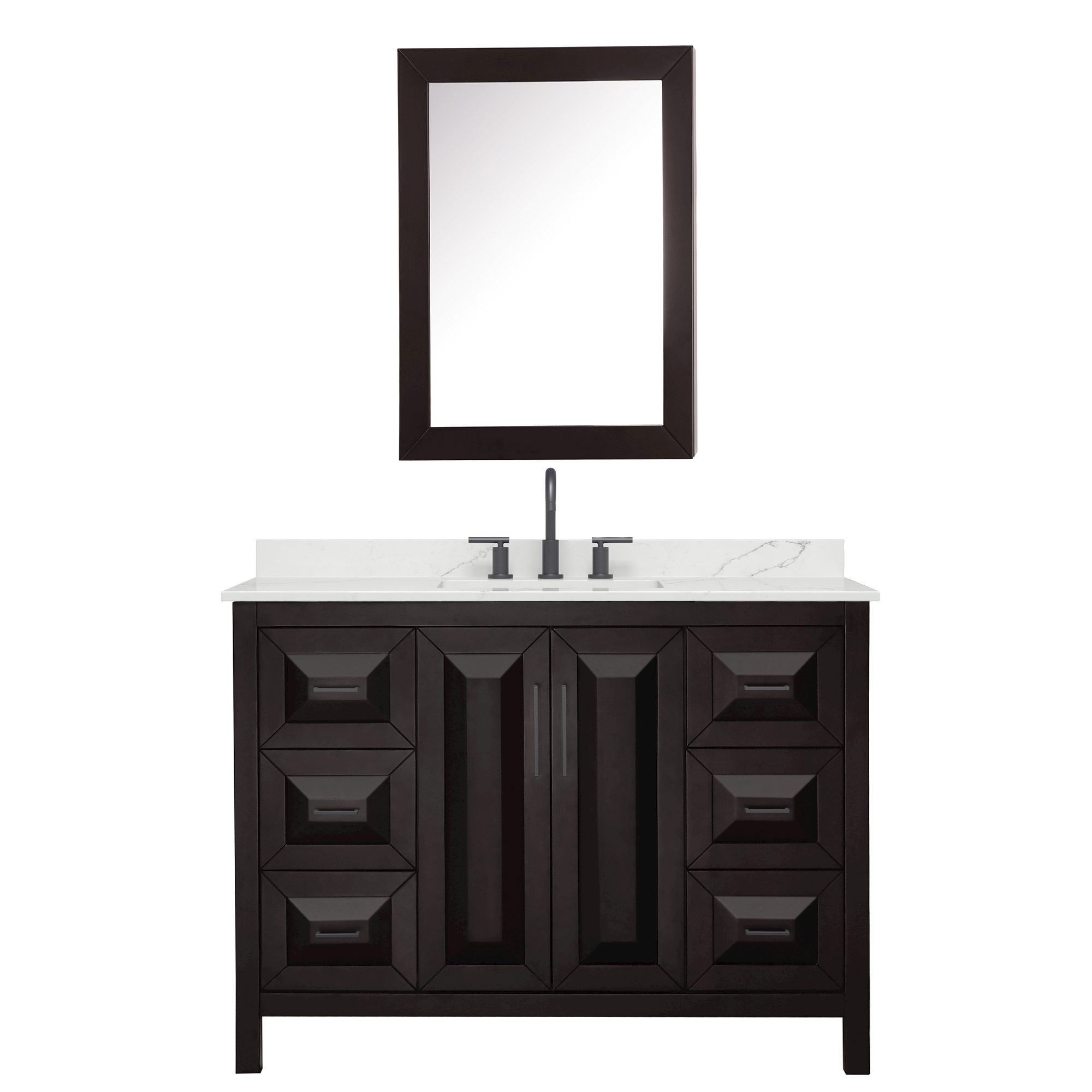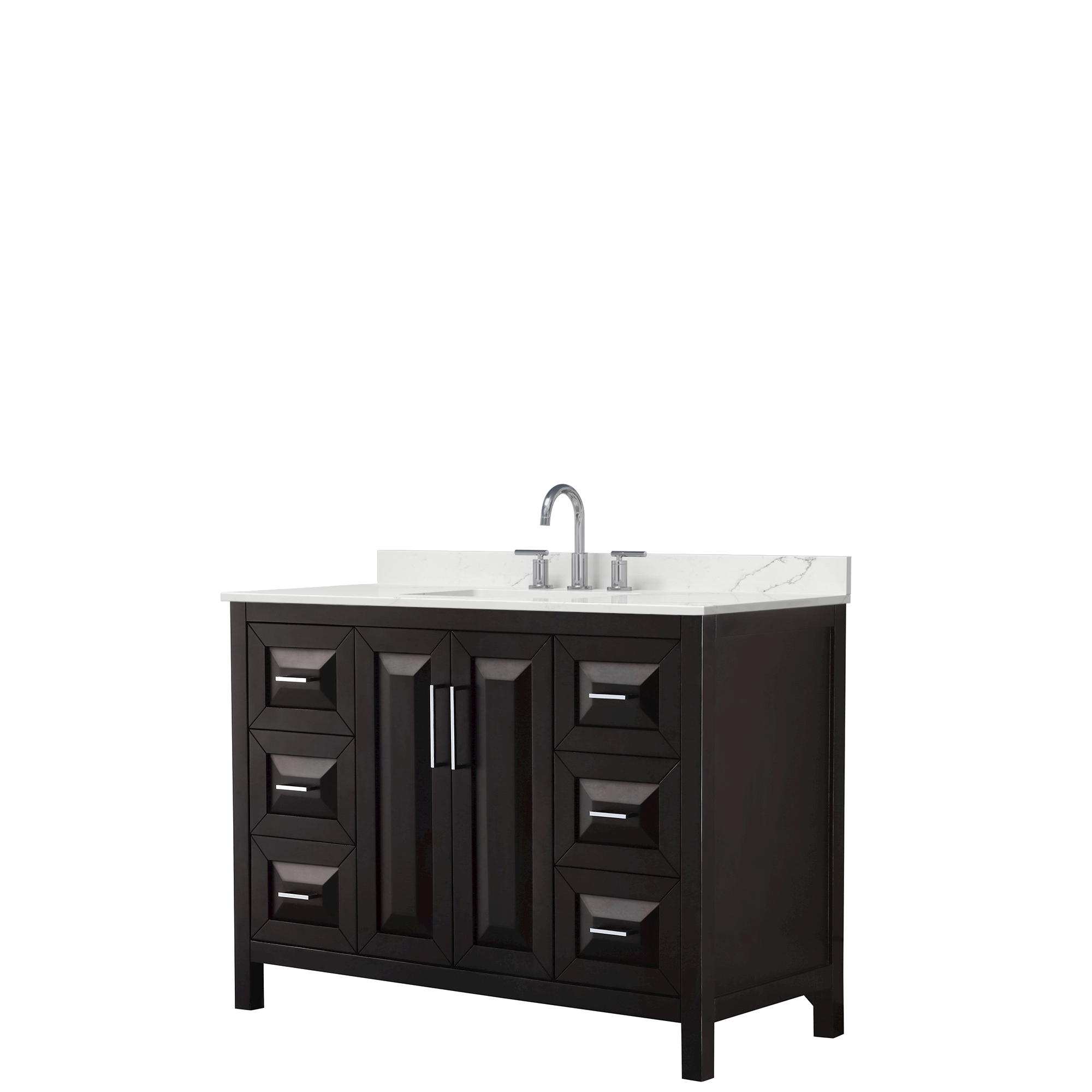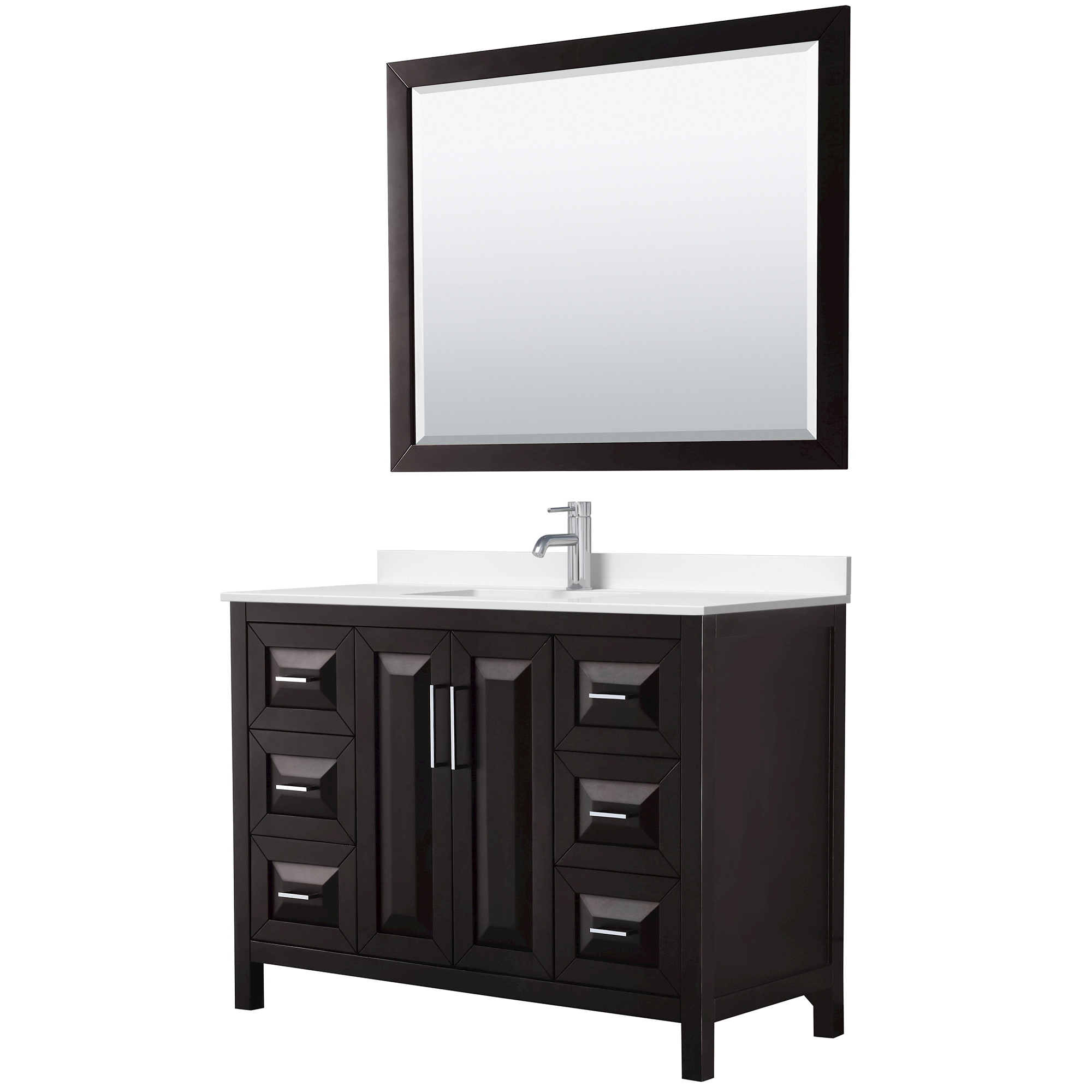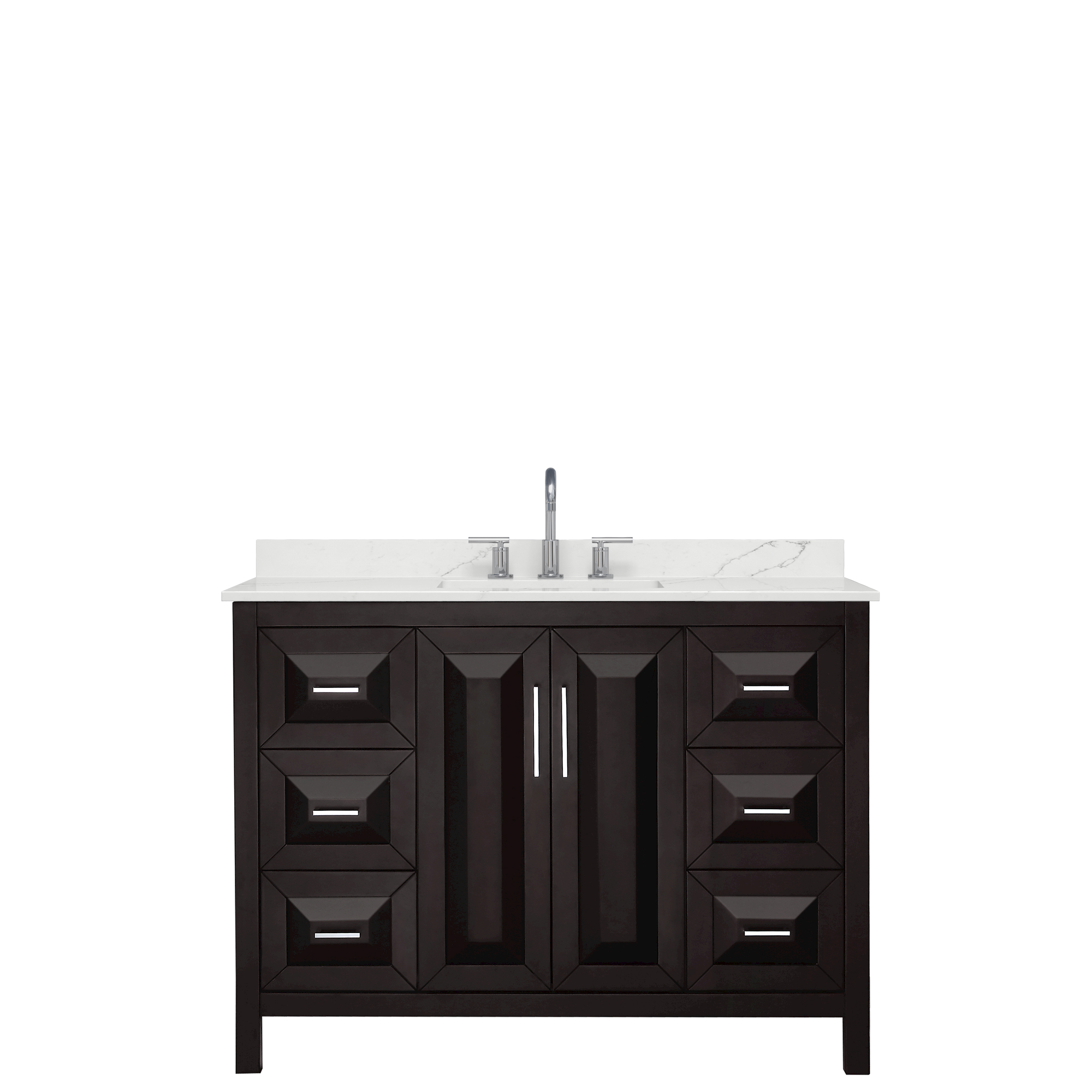 The beautiful Daria collection vanities stand out in any bathroom with strong, clean lines, raised panels and elegant counters with square sinks. There's plenty of cabinet space, the fully extending drawers are dovetail construction, and polished chrome or matte black finish detailing completes the look. Daria vanities deftly combine the function of today with a nod to the elegance of the past. It's the new modern - classic styling with a contemporary twist.