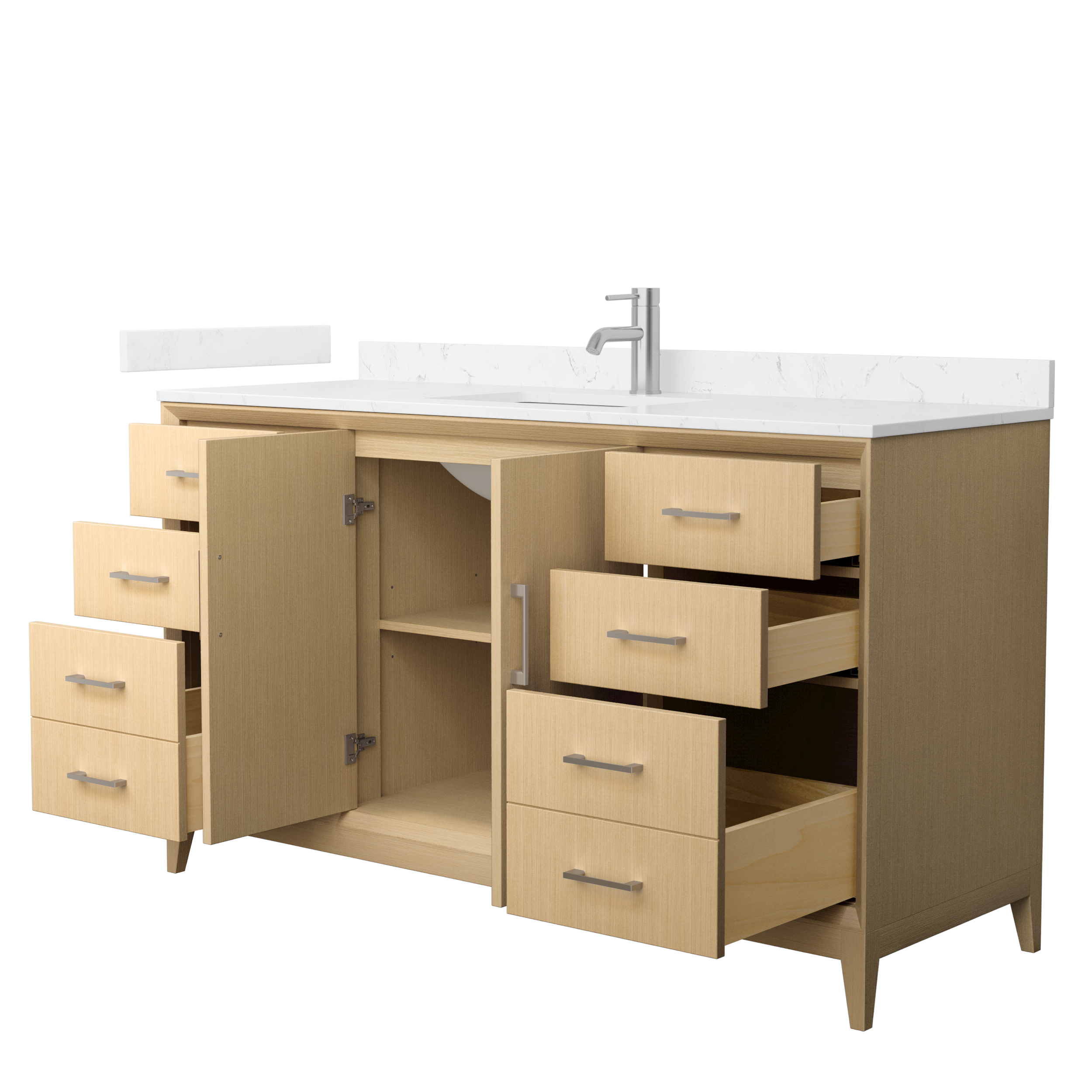 Discover our exquisite line of modern Janna bathroom vanities with natural rift-cut white oak wood veneers to bring warmth and elegance to your space. Each piece showcases the beauty of organic textures while offering practical storage solutions. Perfectly blending contemporary design with natural elements, these vanities create a serene, spa-like atmosphere in any bathroom. Featuring soft close doors and/or drawers in dovetail drawer construction, quality is emphasized to beautiful effect.