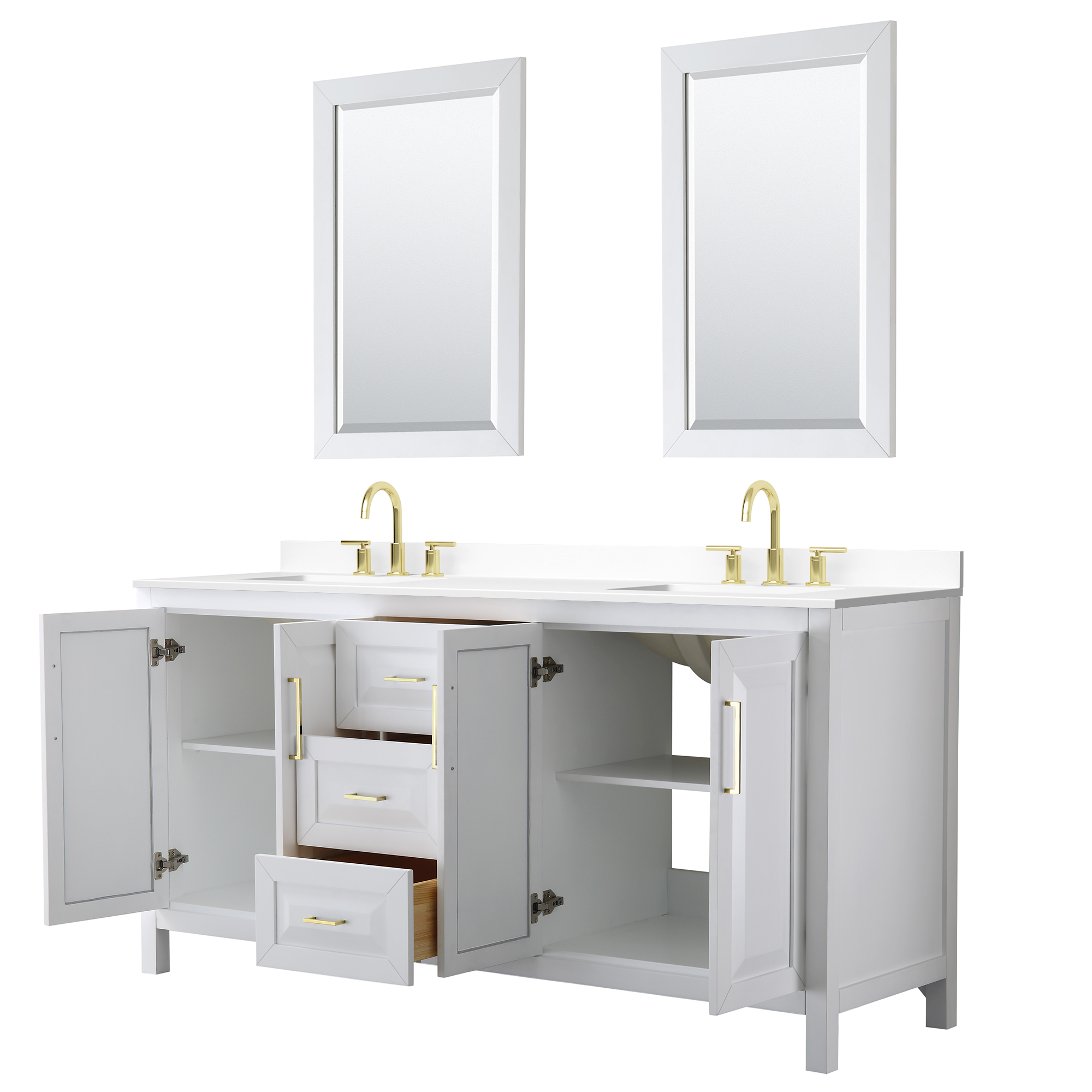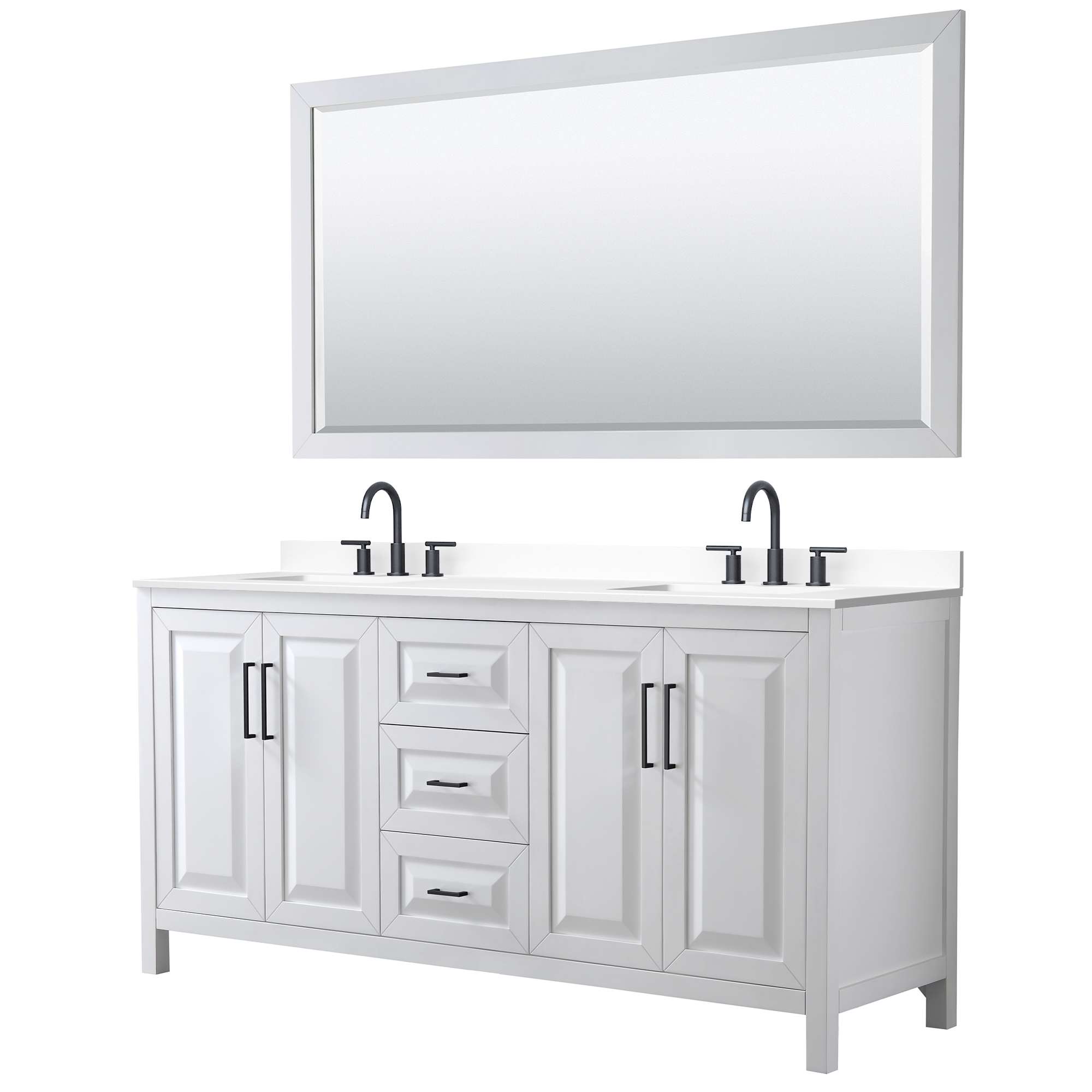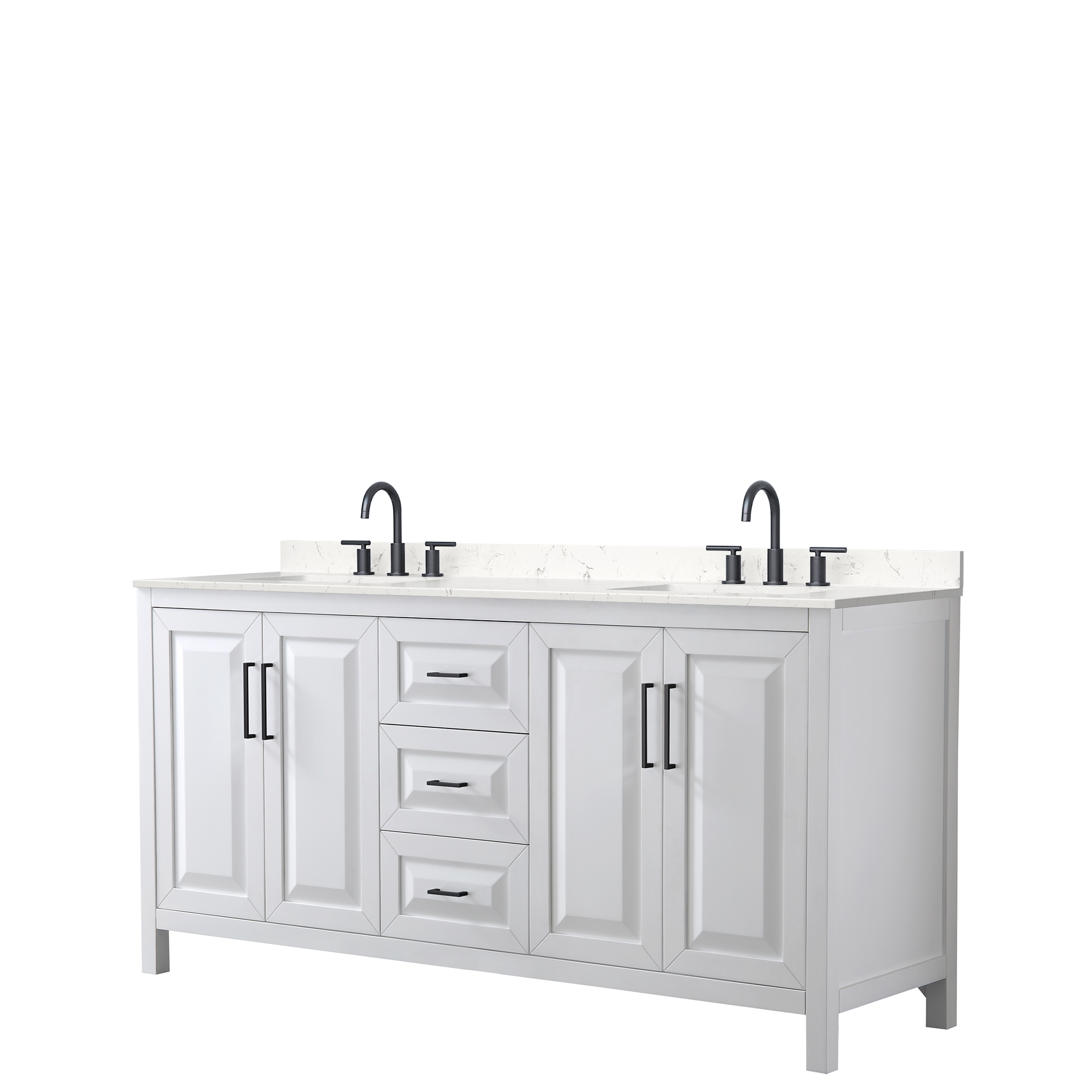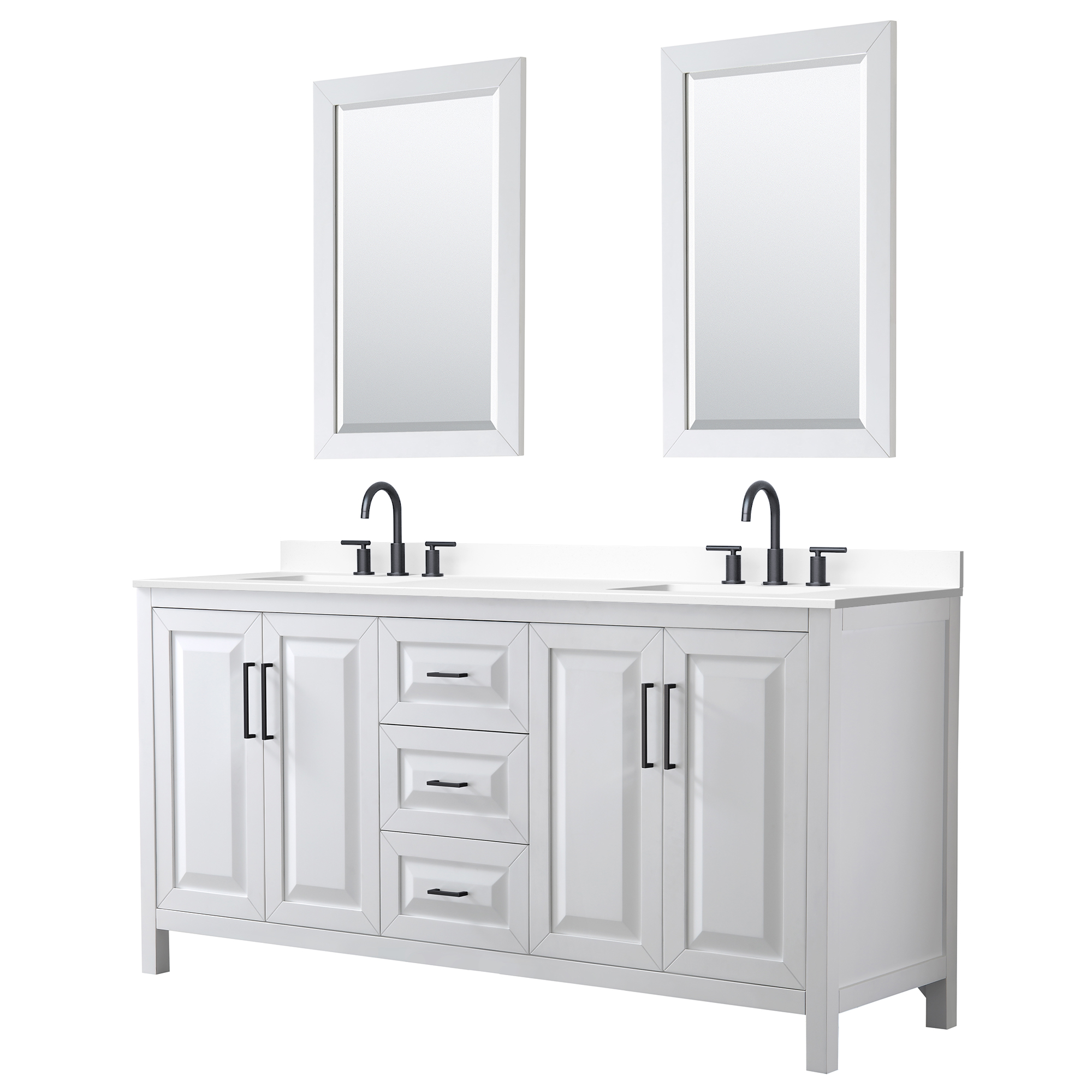 The beautiful Daria collection vanities stand out in any bathroom with strong, clean lines, raised panels and elegant counters with square sinks. There's plenty of cabinet space, the fully extending drawers are dovetail construction, and matte black, polished chrome, or brushed gold finish detailing completes the look. Daria vanities deftly combine the function of today with a nod to the elegance of the past. It's the new modern - classic styling with a contemporary twist.