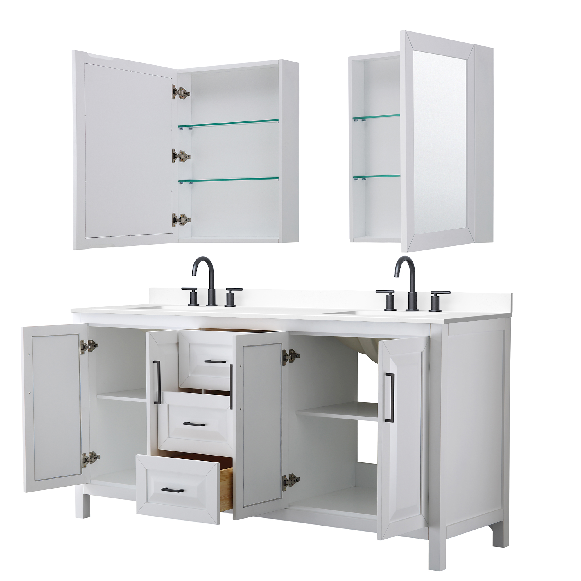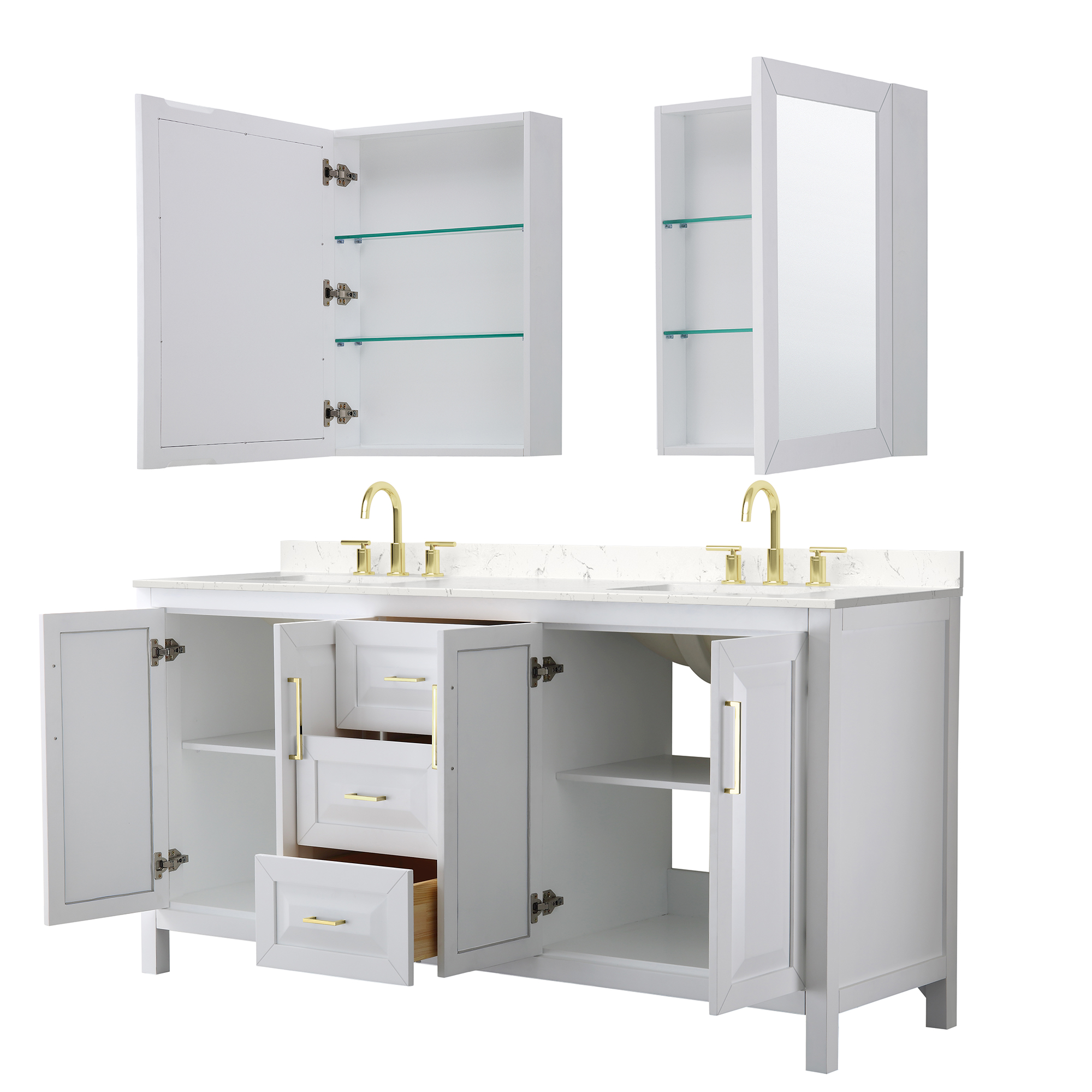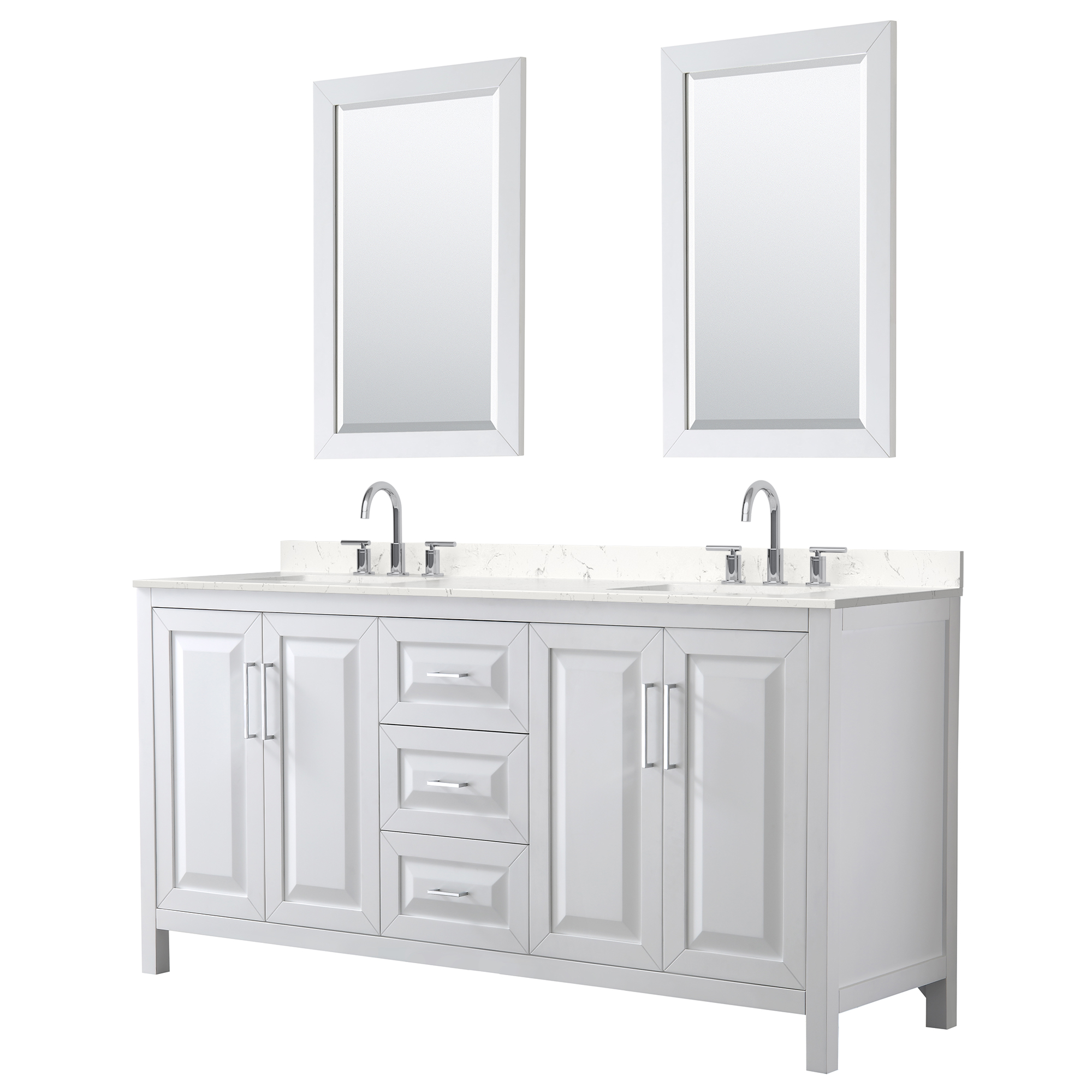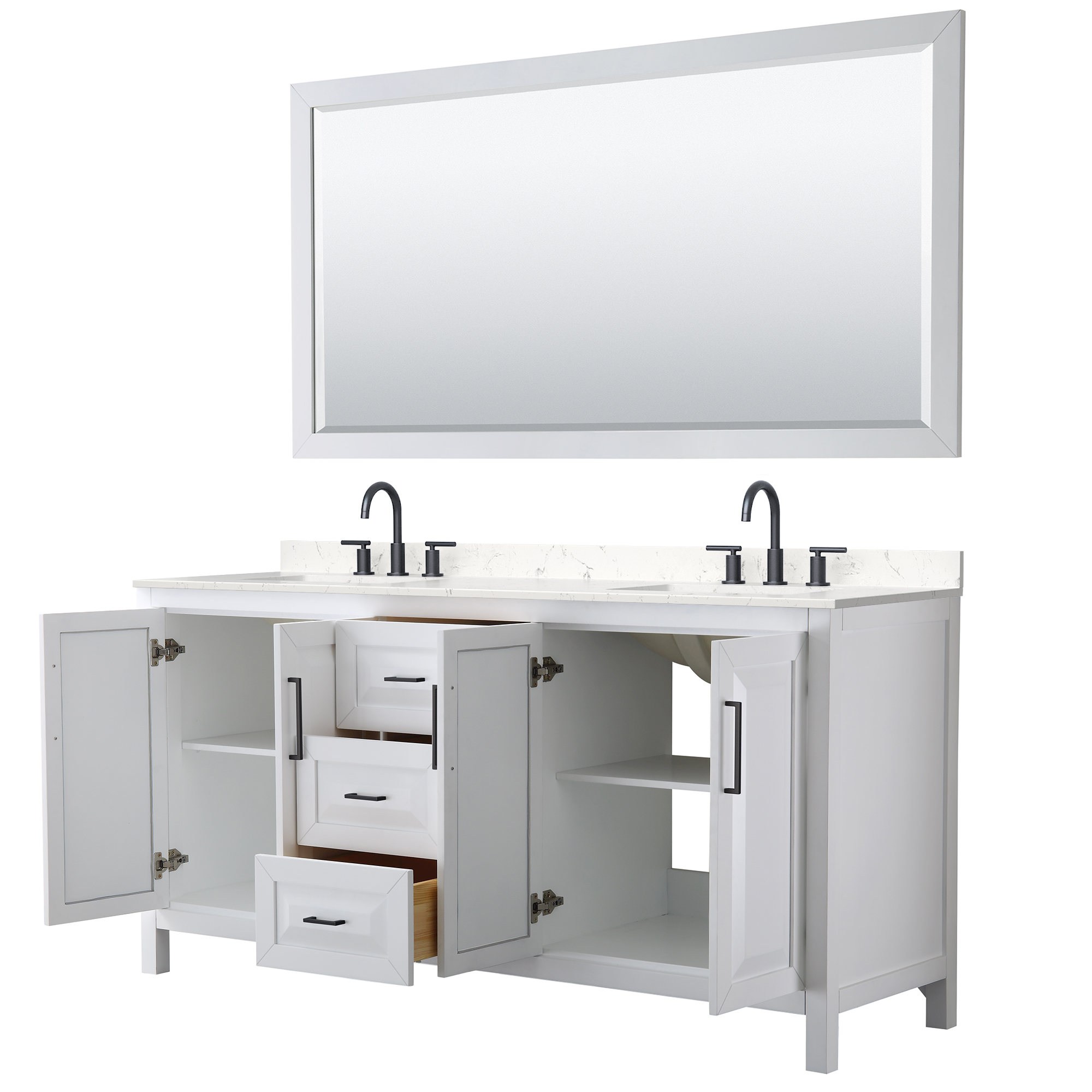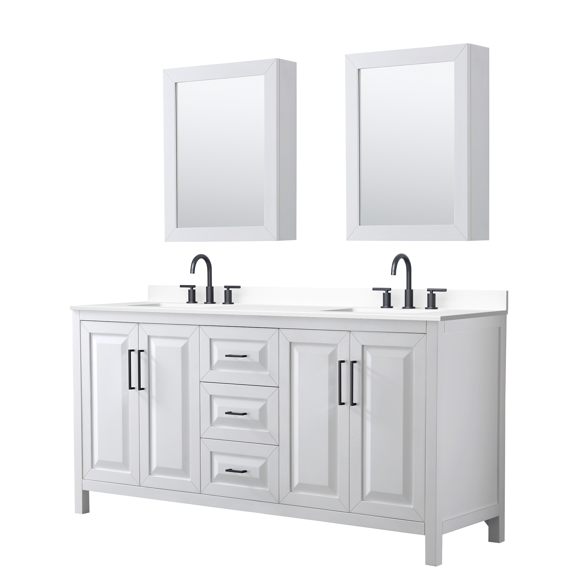 The beautiful Daria collection vanities stand out in any bathroom with strong, clean lines, raised panels and elegant counters with square sinks. There's plenty of cabinet space, the fully extending drawers are dovetail construction, and matte black, polished chrome, or brushed gold finish detailing completes the look. Daria vanities deftly combine the function of today with a nod to the elegance of the past. It's the new modern - classic styling with a contemporary twist.