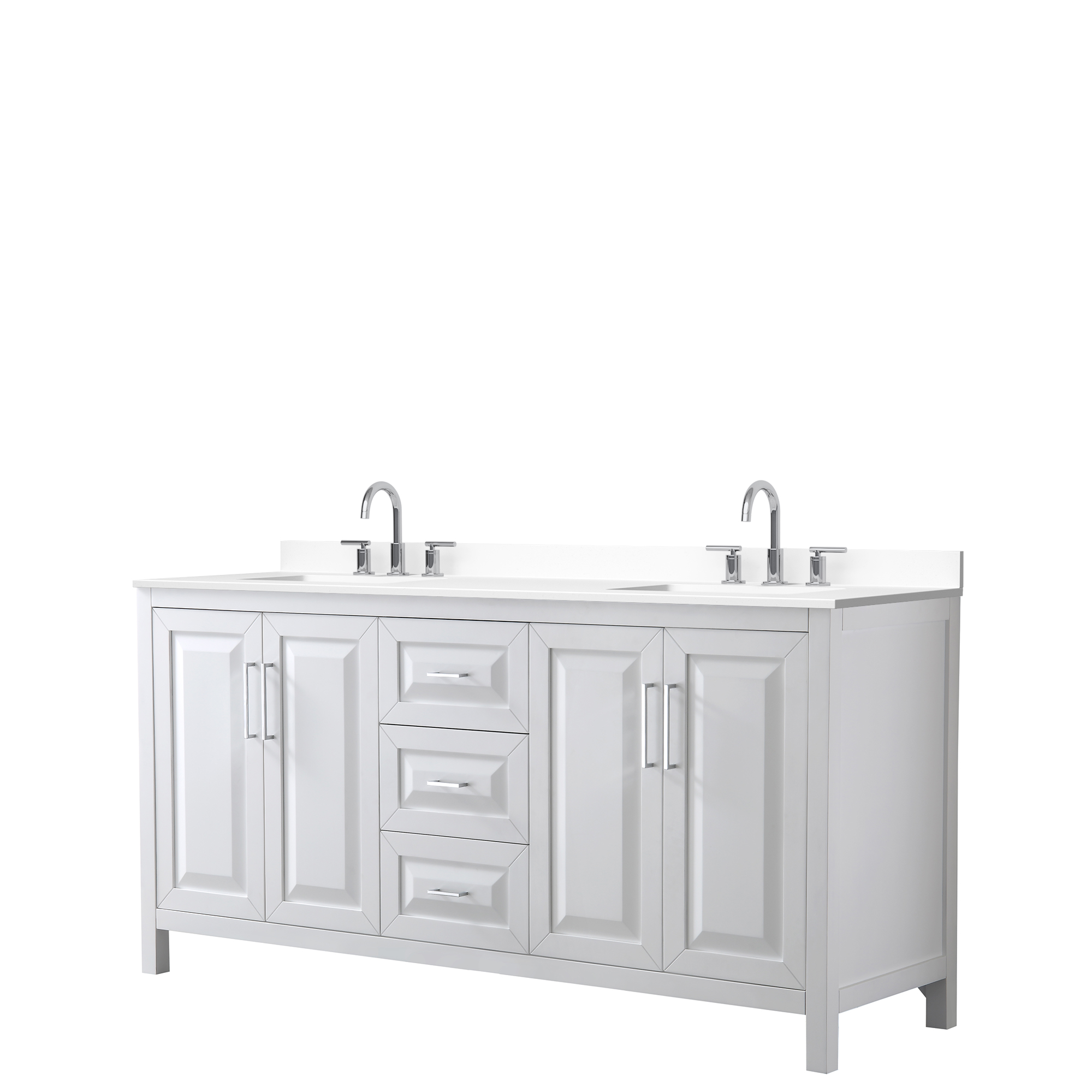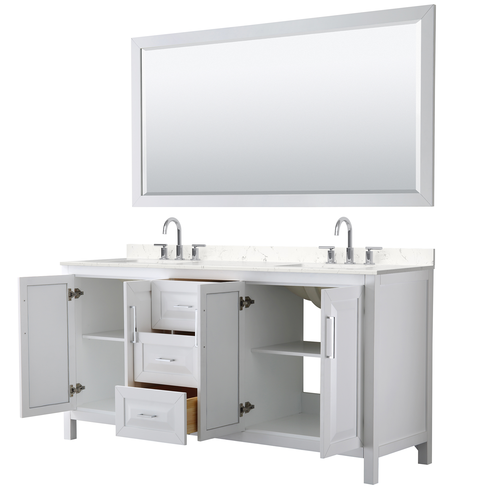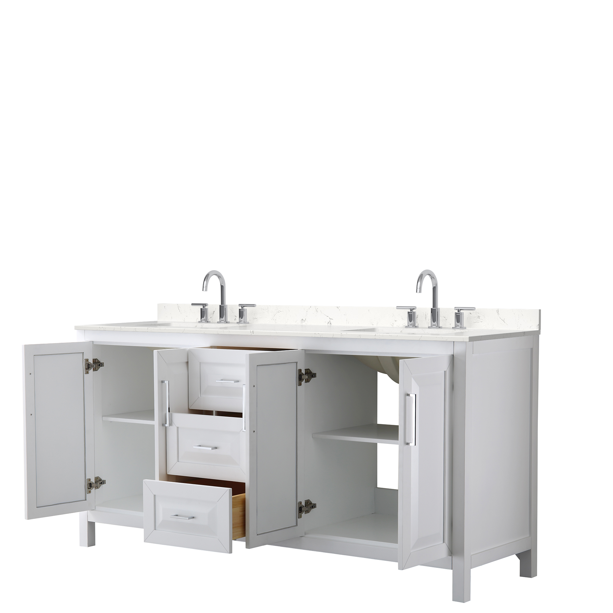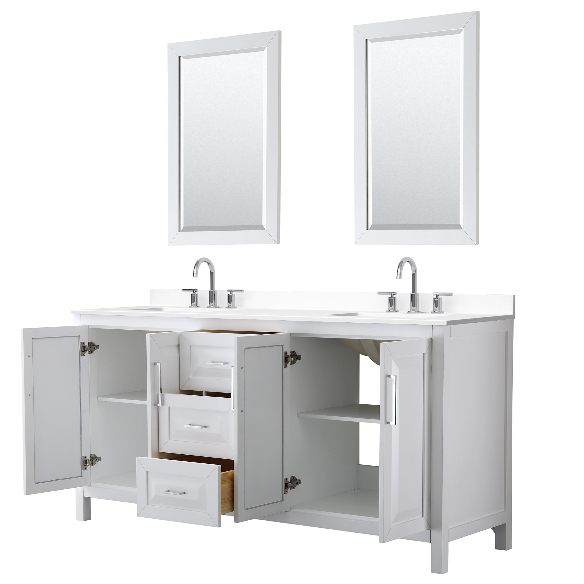 The beautiful Daria collection vanities stand out in any bathroom with strong, clean lines, raised panels and elegant counters with square sinks. There's plenty of cabinet space, the fully extending drawers are dovetail construction, and matte black, polished chrome, or brushed gold finish detailing completes the look. Daria vanities deftly combine the function of today with a nod to the elegance of the past. It's the new modern - classic styling with a contemporary twist.