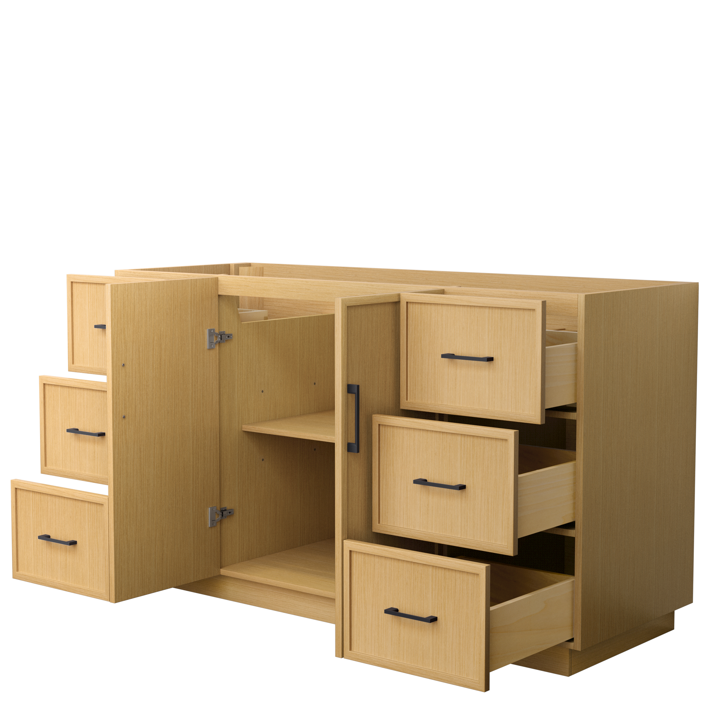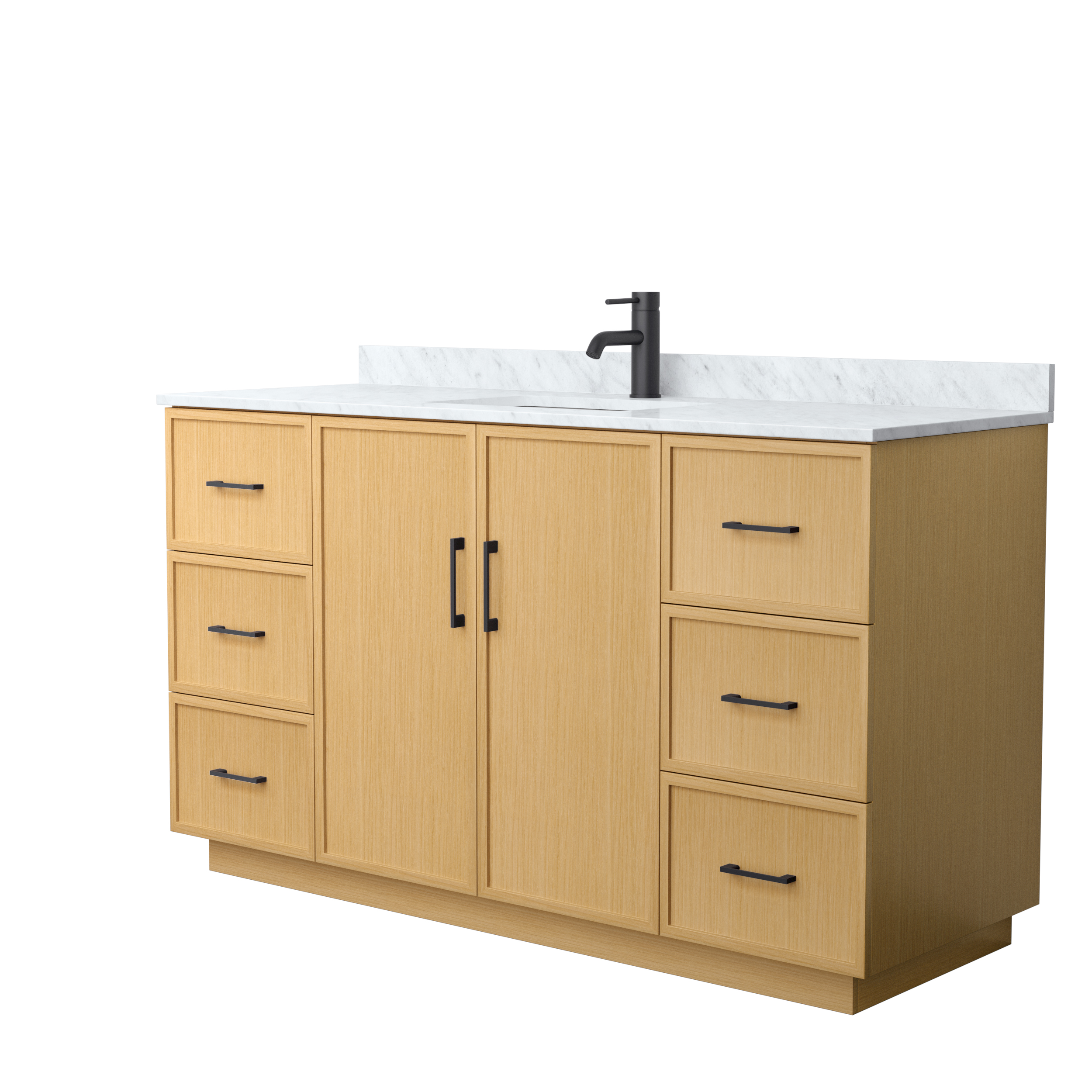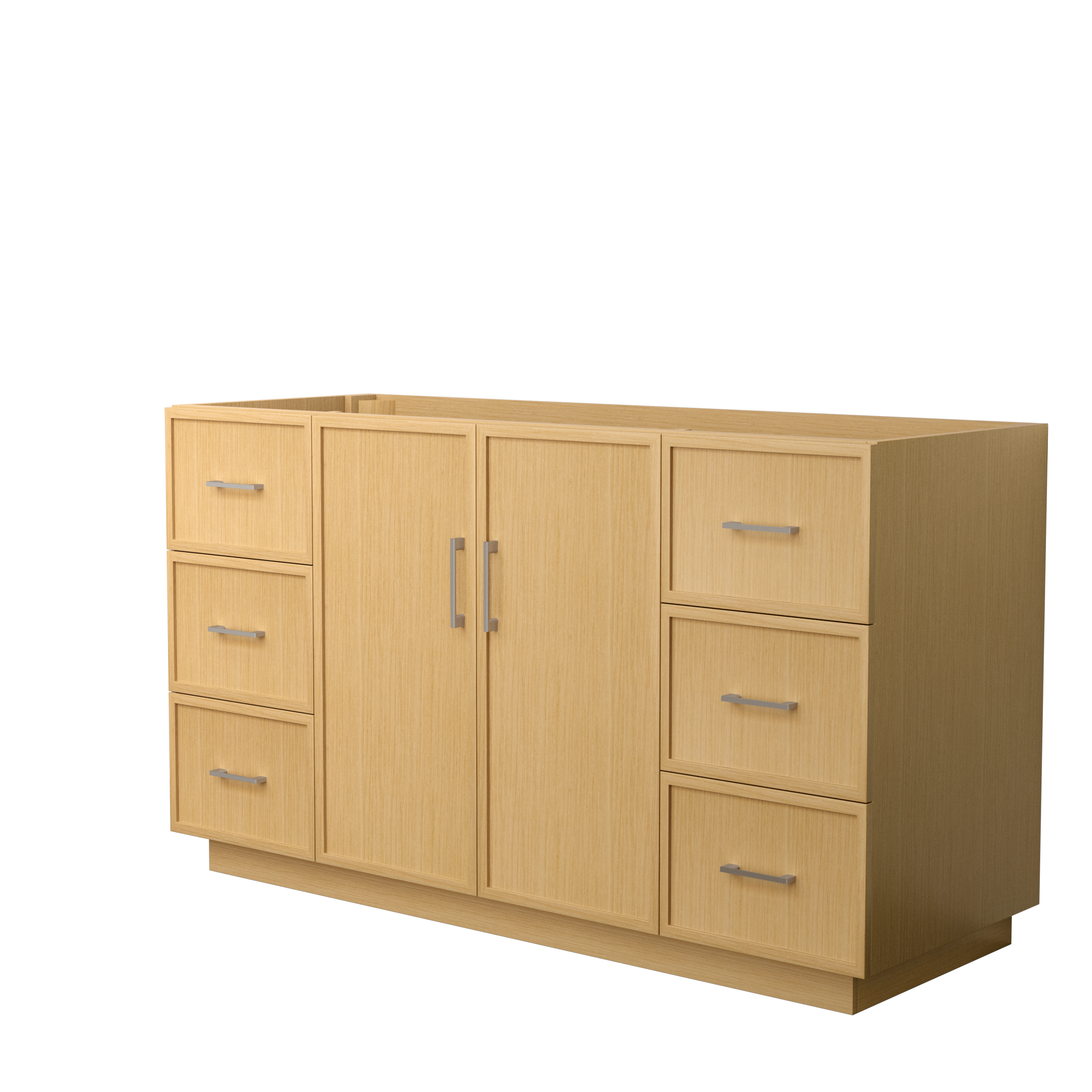 This transitional bathroom vanity exudes sleek sophistication with its clean lines and minimalist slim shaker design. The Elan vanity is crafted from high-quality materials like solid wood and plywood, with counters in multiple material options. Quartz and cultured stone counters include a back-and side-splash. Finished painted or in rift-cut light oak veneer, it seamlessly combines beauty and real-life usefulness. Its integrated, soft-closing drawers (featuring 3D adjustable glides) and doors offer ample storage space for toiletries, towels, and other essentials, keeping the space clutter-free. The sleek, angular hardware contributes to the overall aesthetic, creating a stylish focal point in the bathroom. Elevate your bathroom haven without compromising form or function.