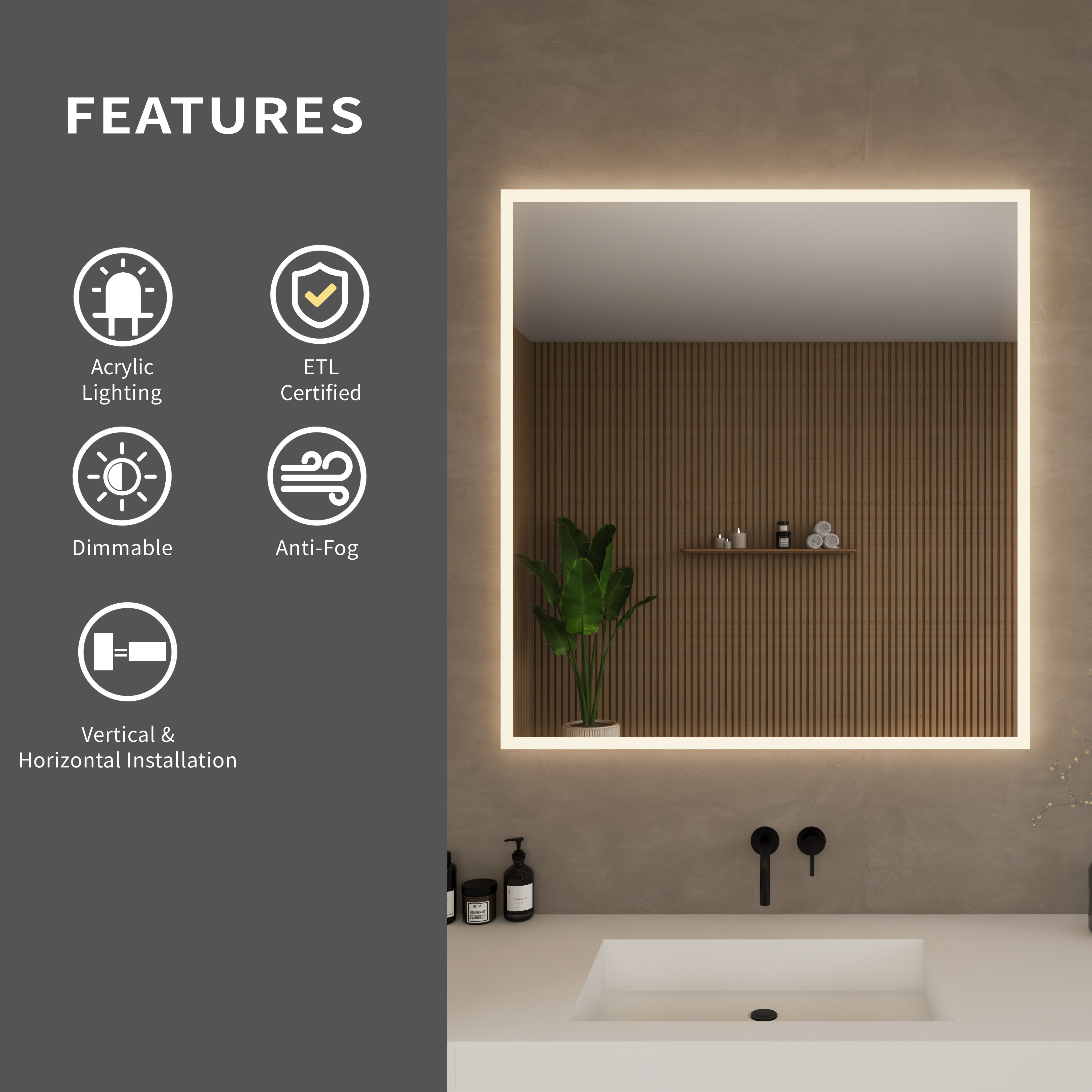 The Hilton LED Mirror Collection by Wyndham Collection delivers a refined balance of functionality and atmosphere, making it a standout choice for modern bathrooms. Similar to the Carlton Collection, built without a touch sensor button, the Hilton Collection sets itself apart with a perimeter-style light that creates a soft, ambient glow across the vanity area. This elegant halo of illumination enhances both task lighting and overall bathroom ambiance, perfect for daily routines or relaxing evenings. With a built-in dimmer for adjustable brightness and an integrated defogger to maintain a crystal-clear reflection, the Hilton Collection is the ideal solution for customers seeking both practicality and sophisticated design in their bathroom mirror.