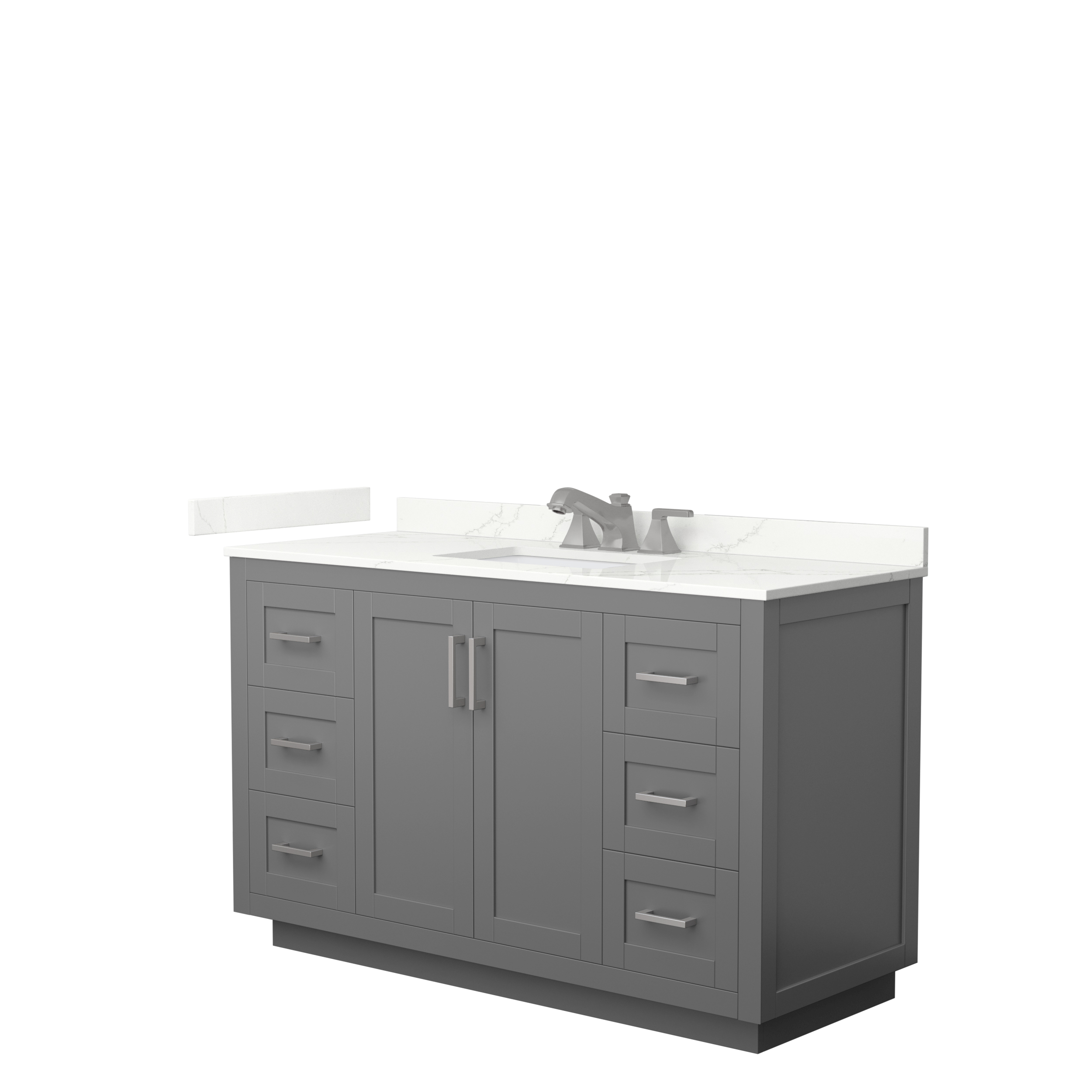 Sleek and Chic are the best words to describe this European shaker vanity, a piece that bridges modern and contemporary. The Miranda vanity is manufactured in high quality durable materials and finished to the exacting standards you've come to expect from the Wyndham Collection. With function as important as form, the elegant design focuses on ample storage and counter space, a choice of three handle colors, and 3D adjustable soft-close doors and dovetail drawers. Available with your choice of beautiful Quartz, Carrara Marble, or Cultured Marble counter.
