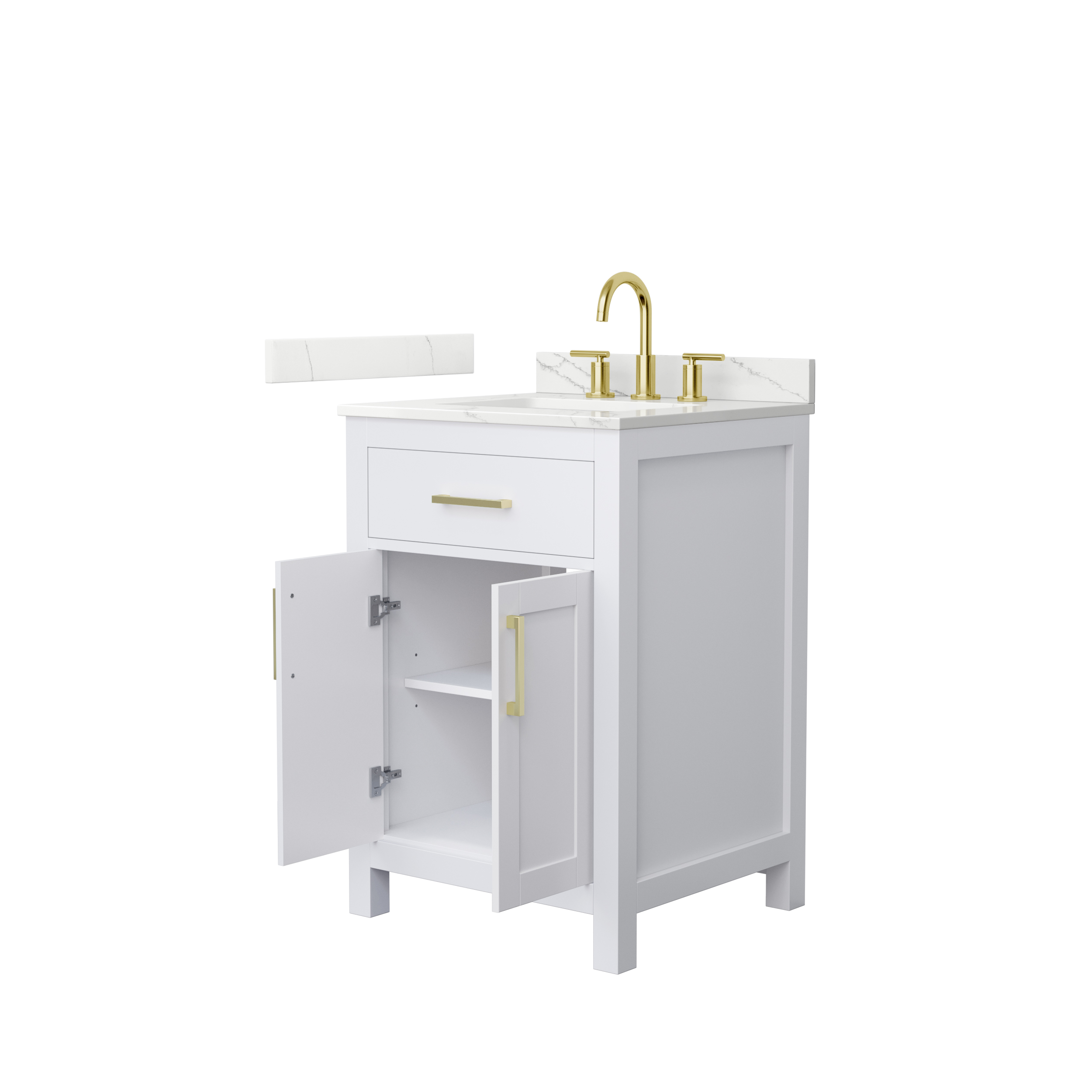 Fantastic value and classic design. The elegant Beckett vanity has it all, with quality touches like brushed nickel, brushed gold, or matte black accents, cultured marble counters and soft-close doors. Ample storage to give you plenty of room for those bathroom necessities. Do your bathroom right, with the beautiful Beckett vanity series.