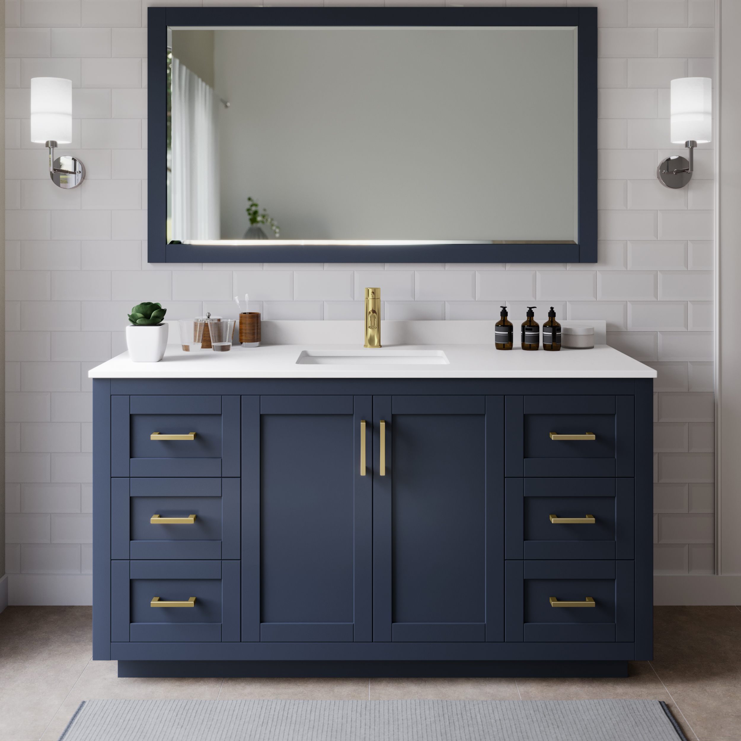 Sleek and Chic are the best words to describe this European shaker vanity, a piece that bridges modern and contemporary. The Miranda vanity is manufactured in high quality durable materials and finished to the exacting standards you've come to expect from the Wyndham Collection. With function as important as form, the elegant design focuses on ample storage and counter space, a choice of three handle colors, and 3D adjustable soft-close doors and dovetail drawers. Available with your choice of beautiful Quartz, Carrara Marble, or Cultured Marble counter.