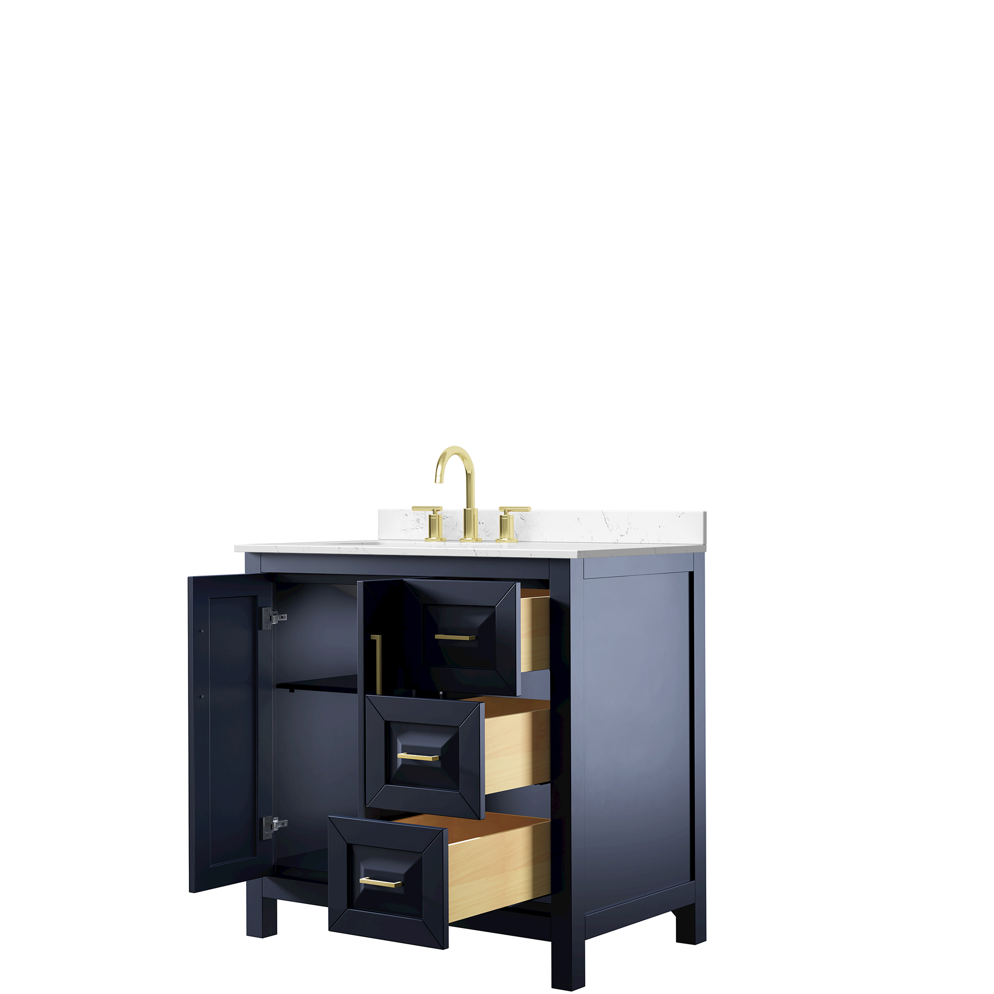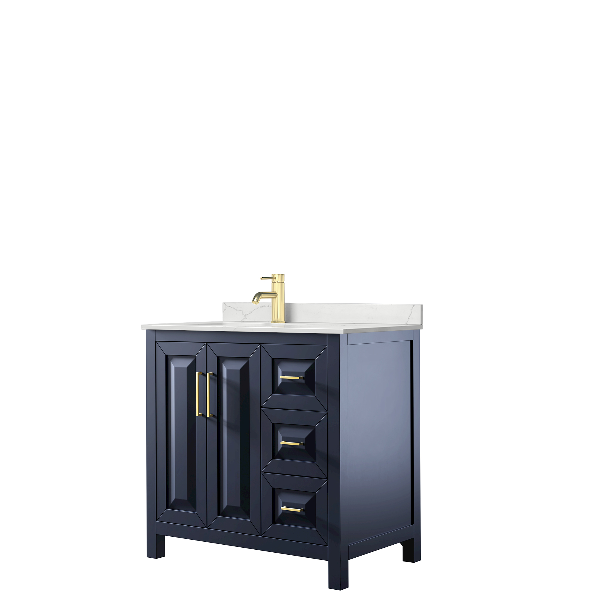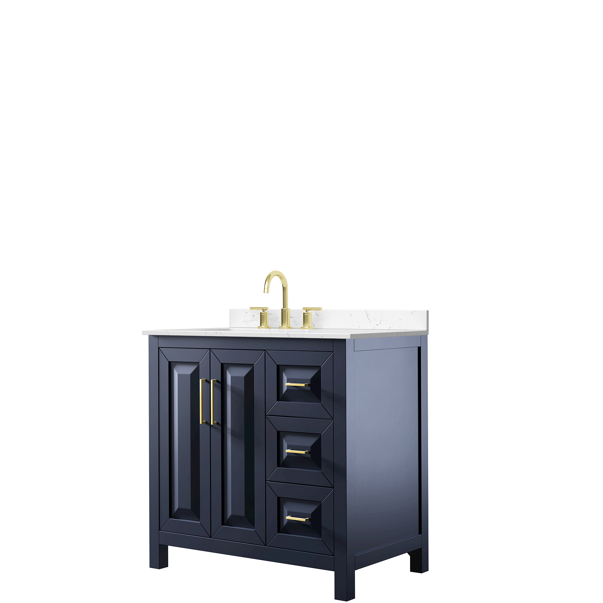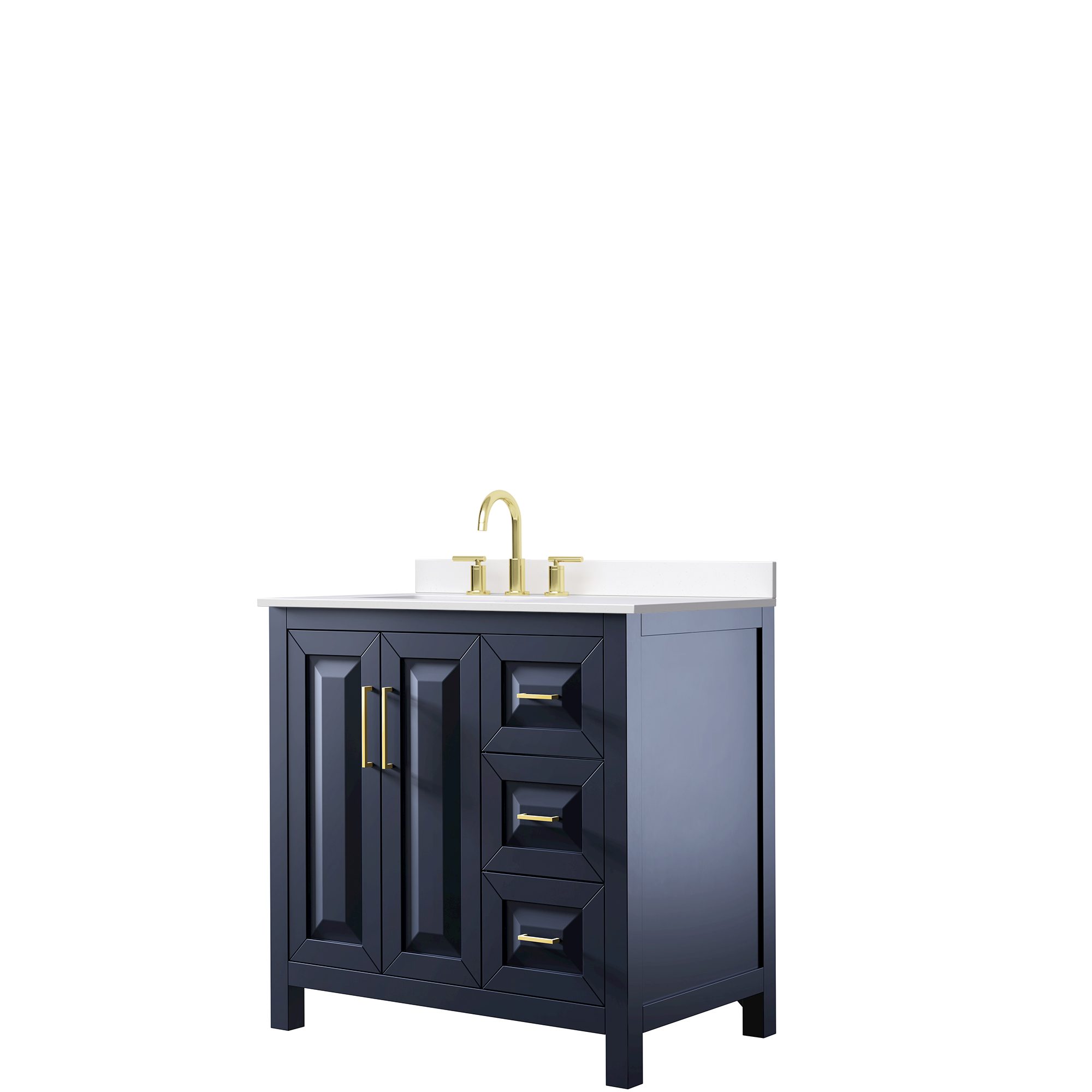 The beautiful Daria collection vanities stand out in any bathroom with strong, clean lines, raised panels and elegant counters with square sinks. There's plenty of cabinet space, the fully extending drawers are dovetail construction, and matte black or brushed gold finish detailing completes the look. Daria vanities deftly combine the function of today with a nod to the elegance of the past. It's the new modern - classic styling with a contemporary twist.