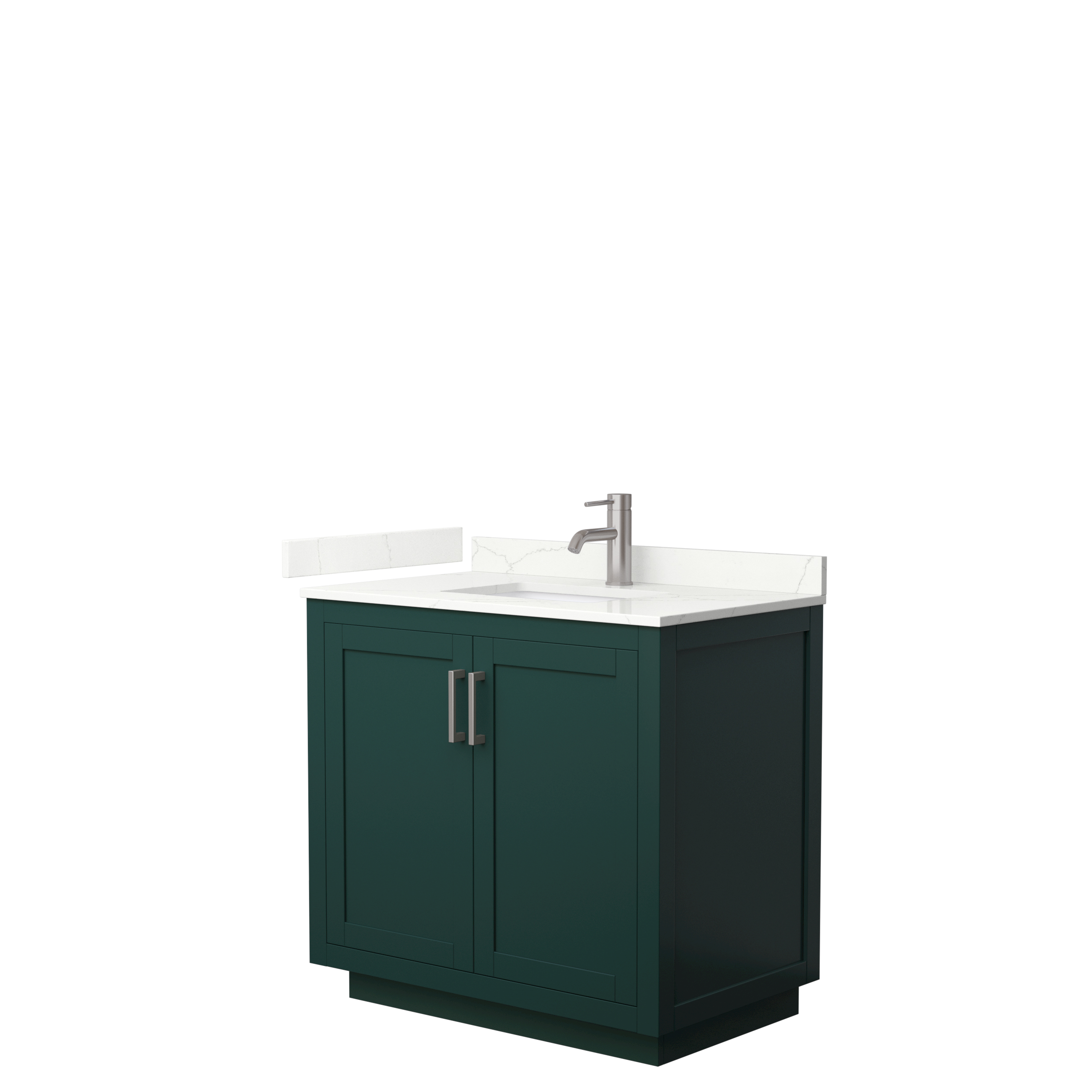 Sleek and Chic are the best words to describe this European shaker vanity, a piece that bridges modern and contemporary. The Miranda vanity is manufactured in high quality durable materials and finished to the exacting standards you've come to expect from the Wyndham Collection. With function as important as form, the elegant design focuses on ample storage and counter space, a choice of three handle colors, and dovetail drawers. Available with your choice of beautiful Quartz, Carrara Marble, or Cultured Marble counter.