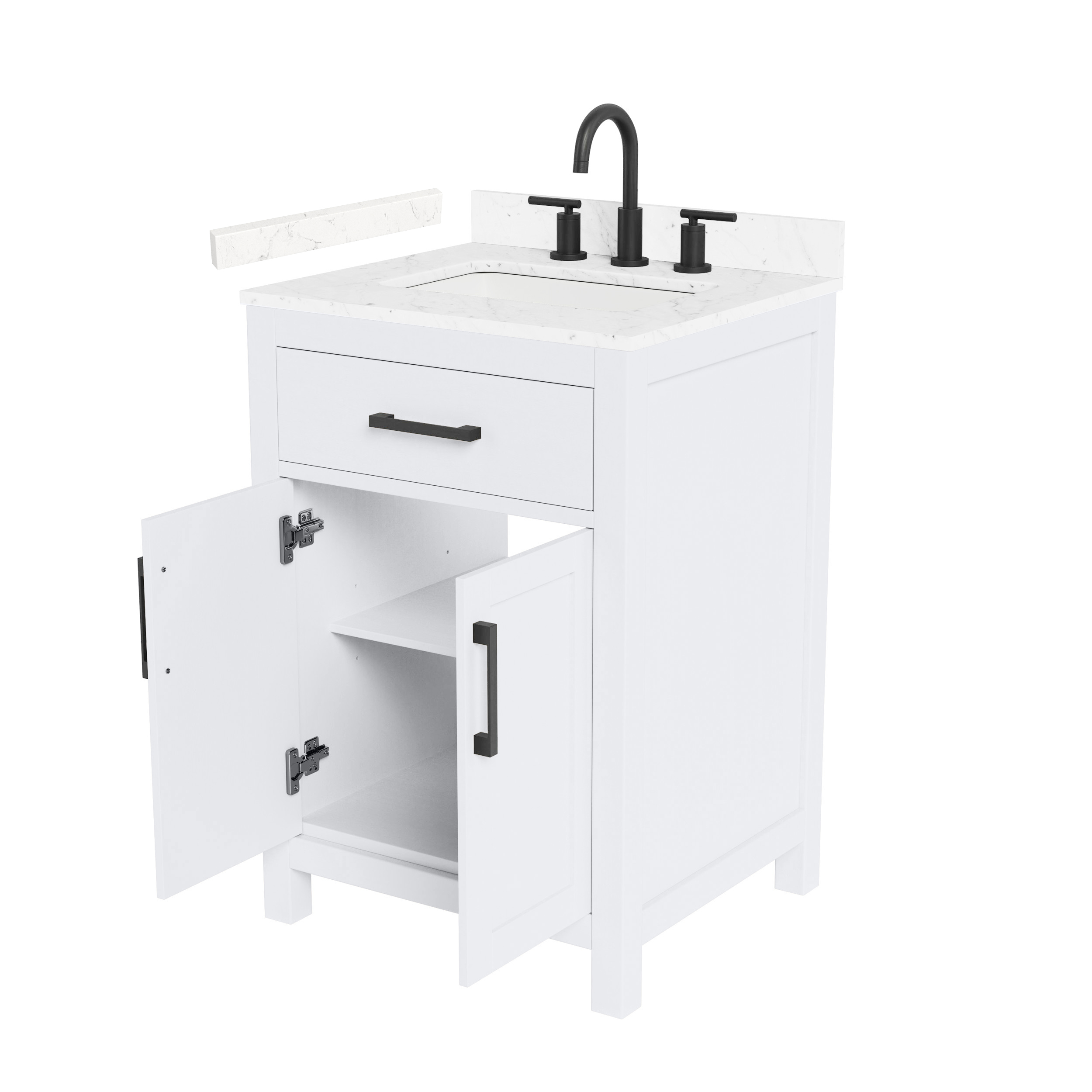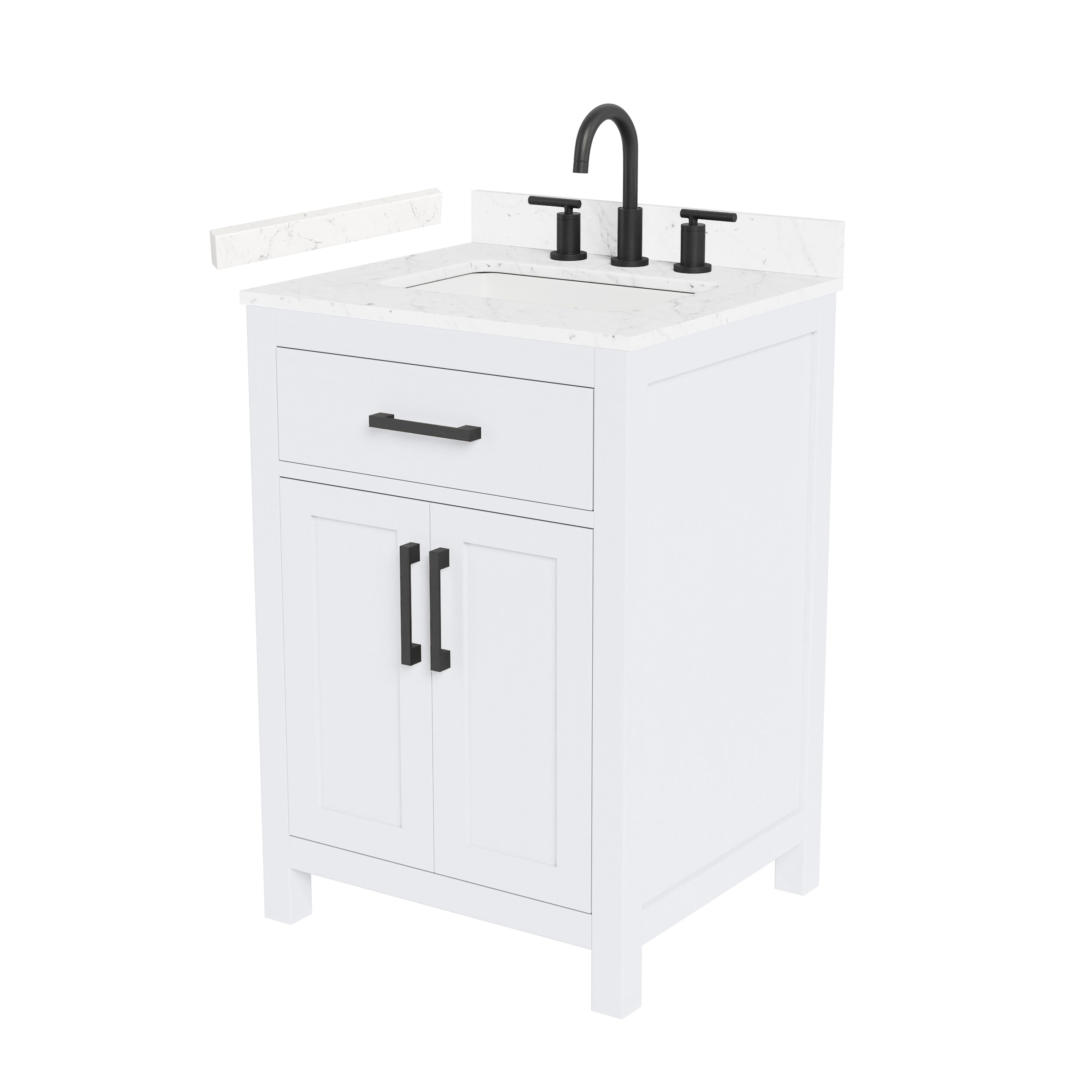 Fantastic value and classic design. The elegant Beckett vanity has it all, with quality touches like brushed nickel, brushed gold, or matte black accents, and soft-close doors and drawers. Ample storage and a double-depth lower drawer give you plenty of room for those bathroom necessities. Do your bathroom right, with the beautiful Beckett vanity series.