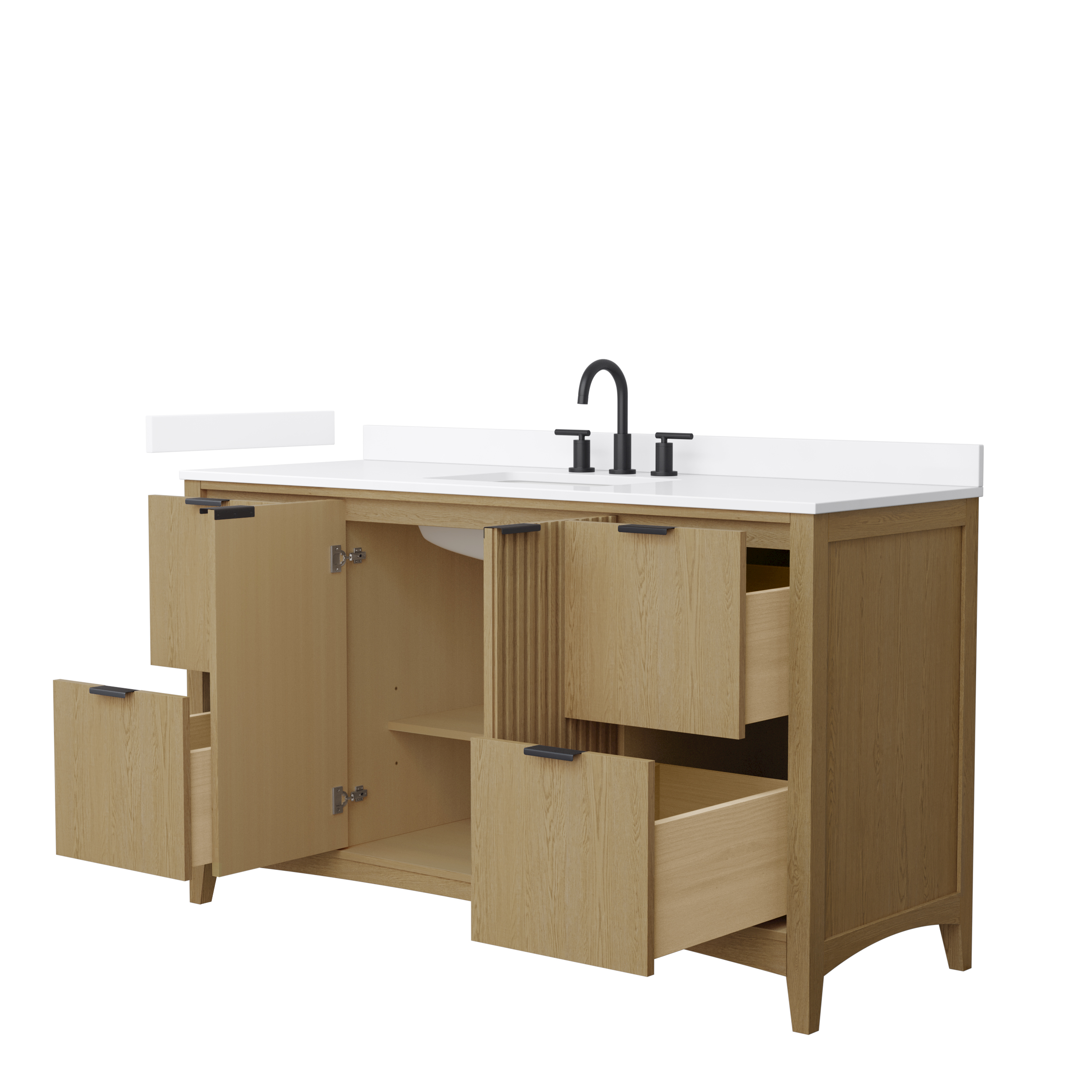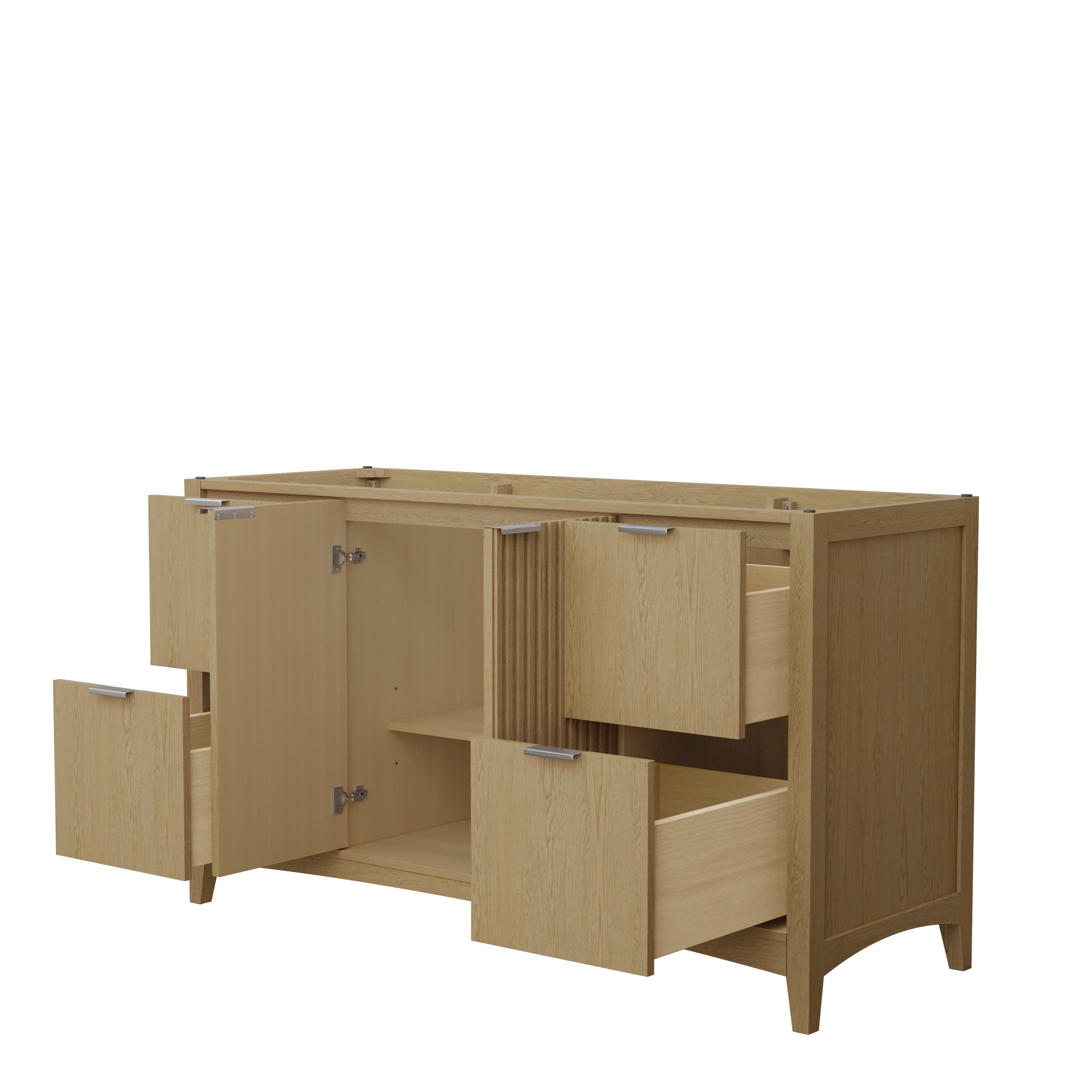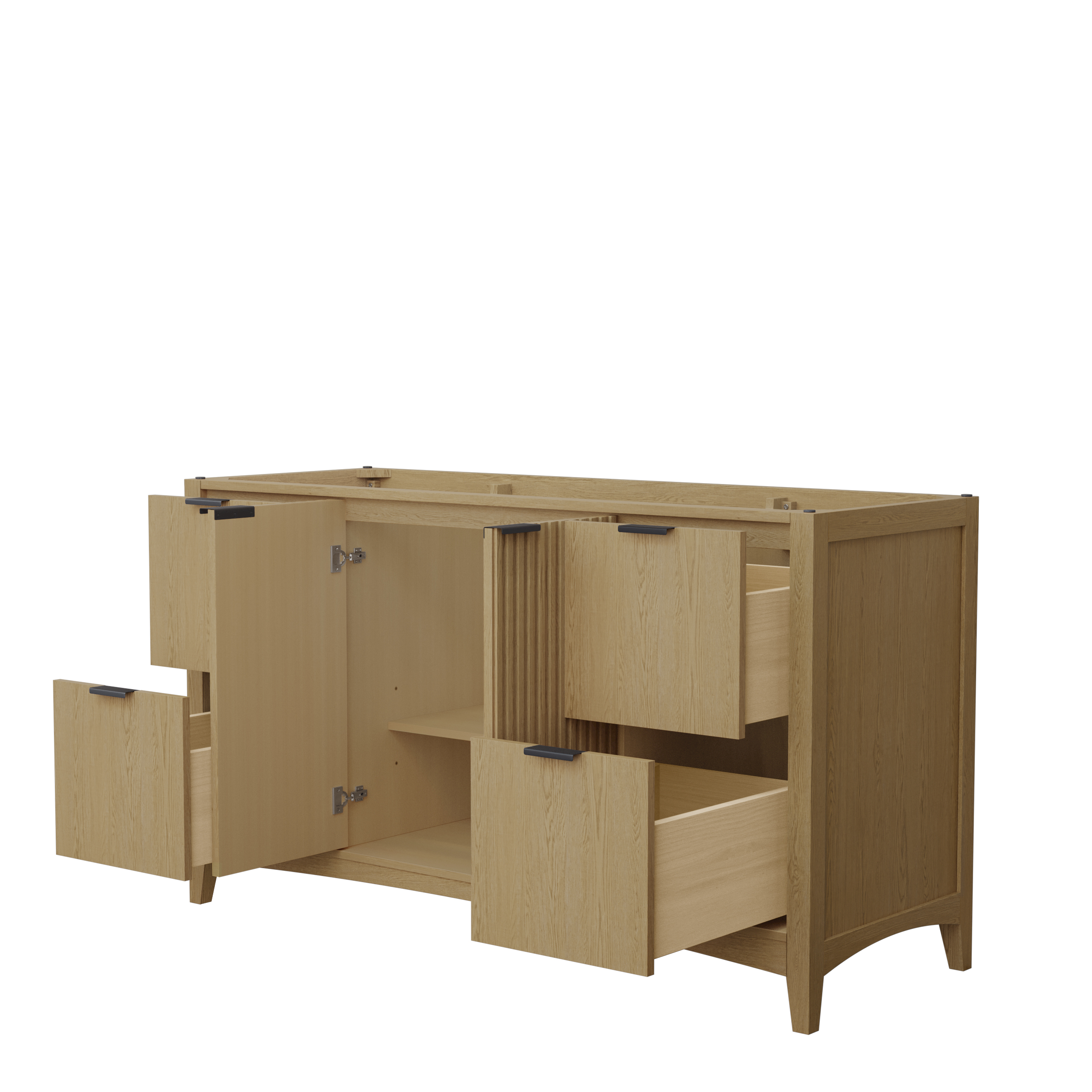 The Palmilla bathroom vanity series seamlessly blends classic European charm with sleek modern design. Crafted from high-quality wood veneers, it features elegant reeded doors that exude timeless sophistication, while minimalist hardware adds a contemporary edge. Soft-close drawers and doors provide a touch of luxury and ensure quiet functionality. Designed with practicality in mind, it boasts ample storage space to keep essentials organized and clutter-free. The spacious countertop offers plenty of room for daily routines, combining functionality with aesthetic appeal. Perfect for elevating any bathroom, this vanity balances old-world grace with clean, contemporary lines to create a truly versatile centerpiece.
