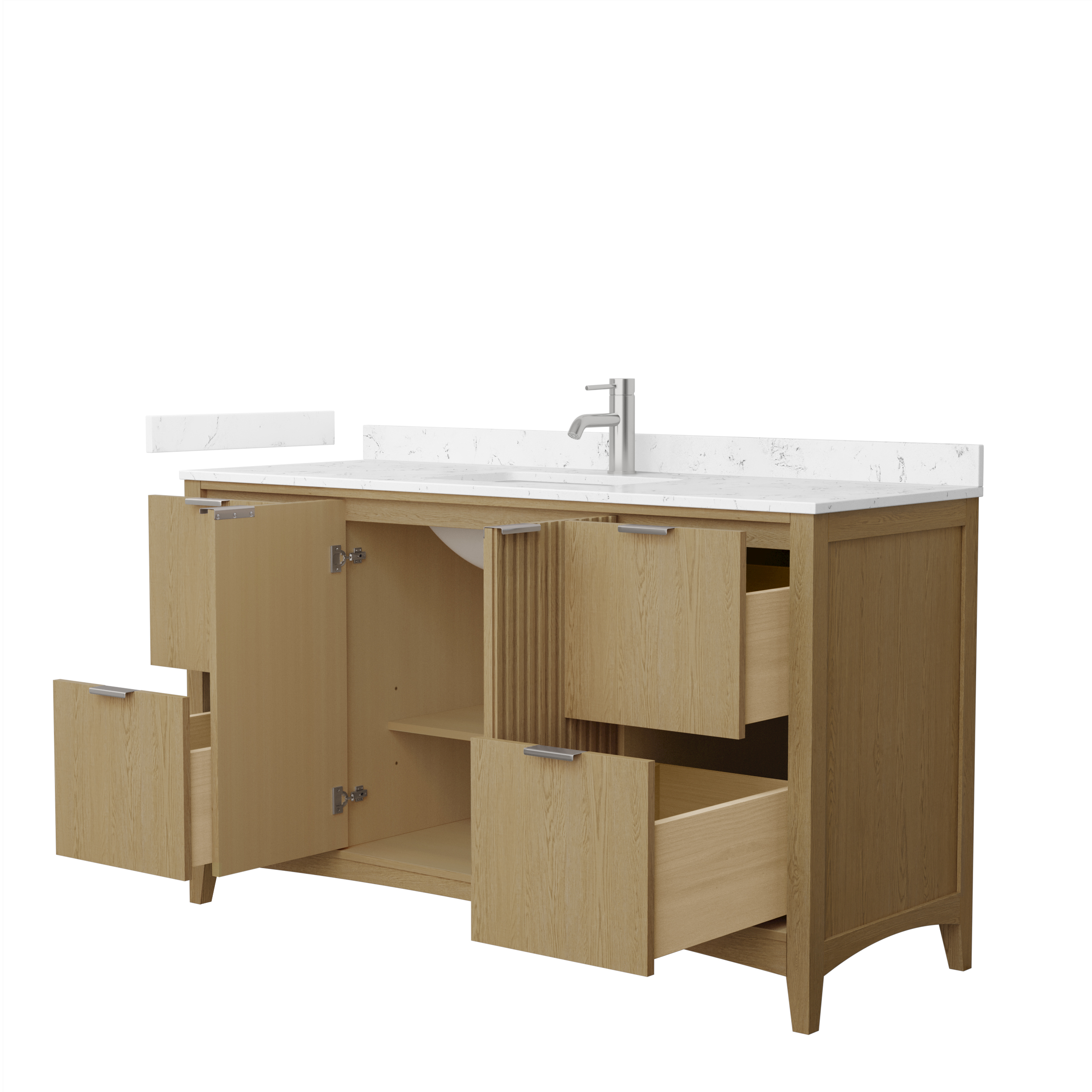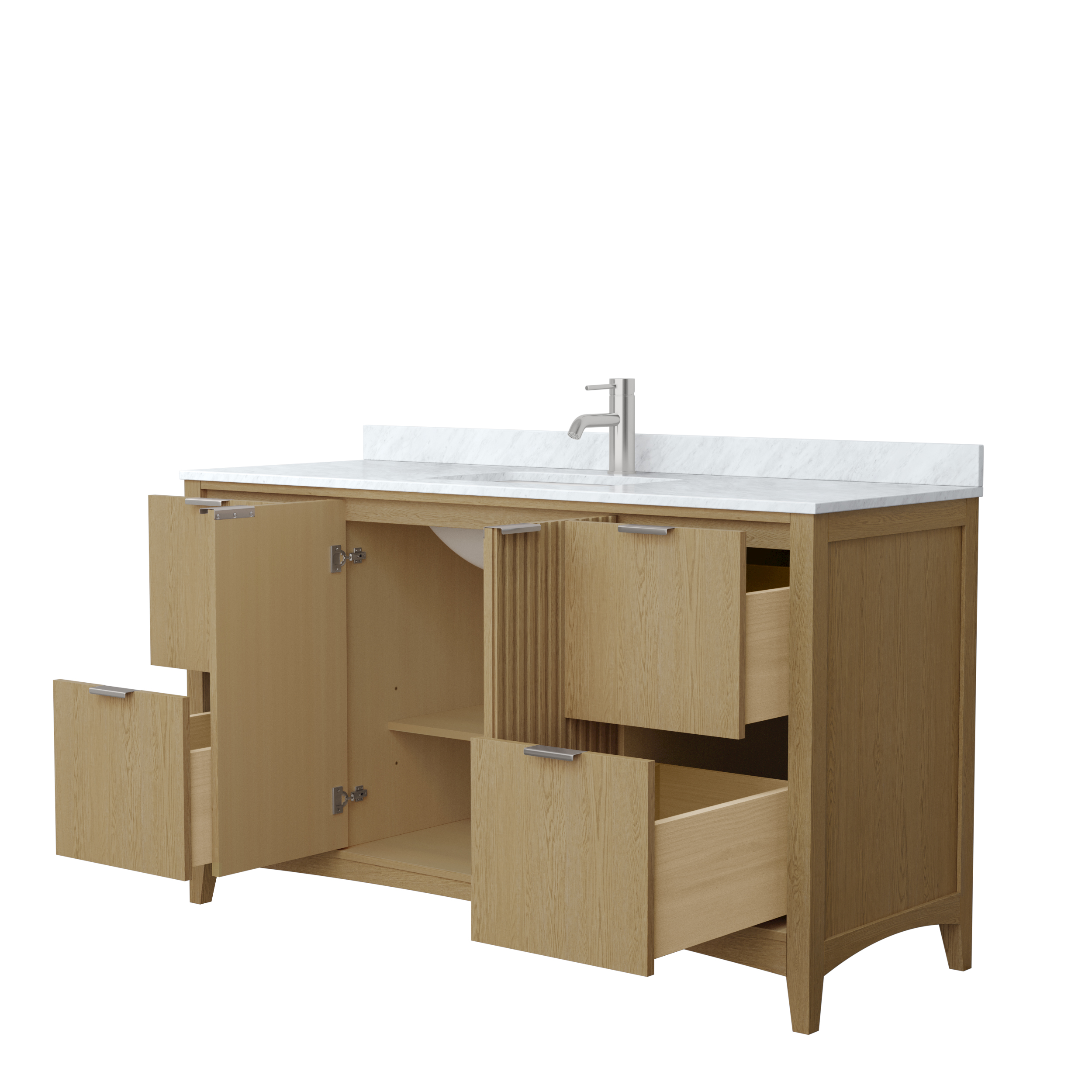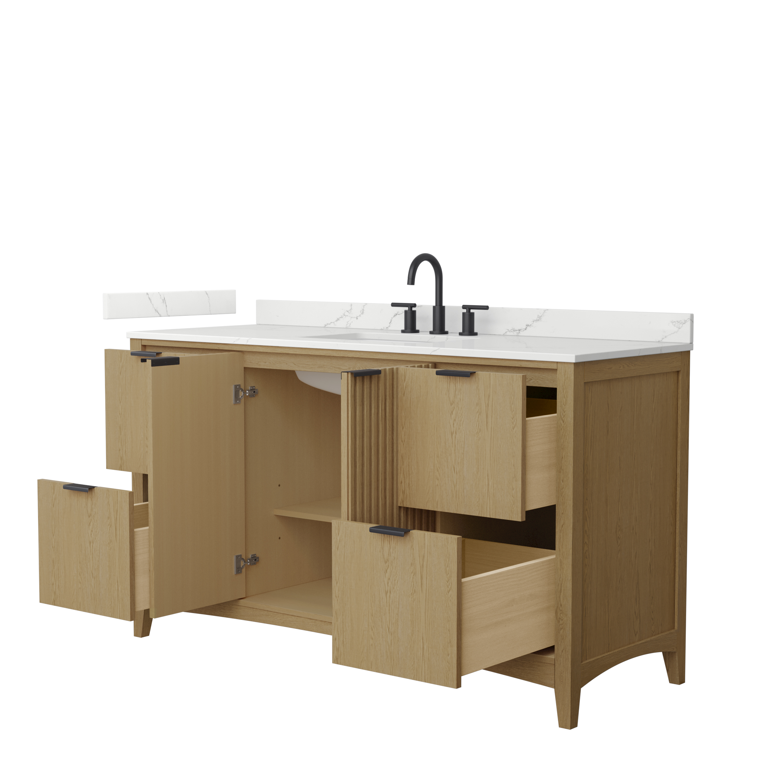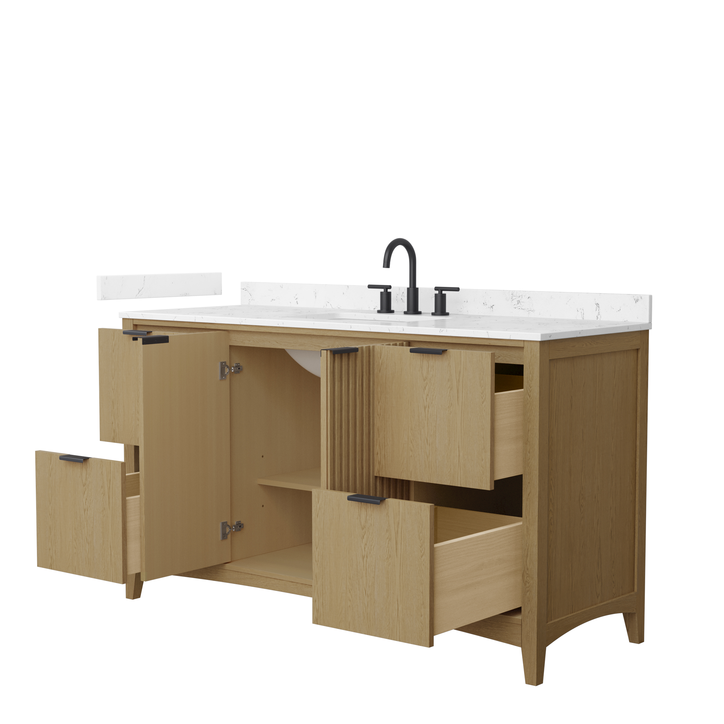 The Palmilla bathroom vanity series seamlessly blends classic European charm with sleek modern design. Crafted from high-quality wood veneers, it features elegant reeded doors that exude timeless sophistication, while minimalist hardware adds a contemporary edge. Soft-close drawers and doors provide a touch of luxury and ensure quiet functionality. Designed with practicality in mind, it boasts ample storage space to keep essentials organized and clutter-free. The spacious countertop offers plenty of room for daily routines, combining functionality with aesthetic appeal. Perfect for elevating any bathroom, this vanity balances old-world grace with clean, contemporary lines to create a truly versatile centerpiece.