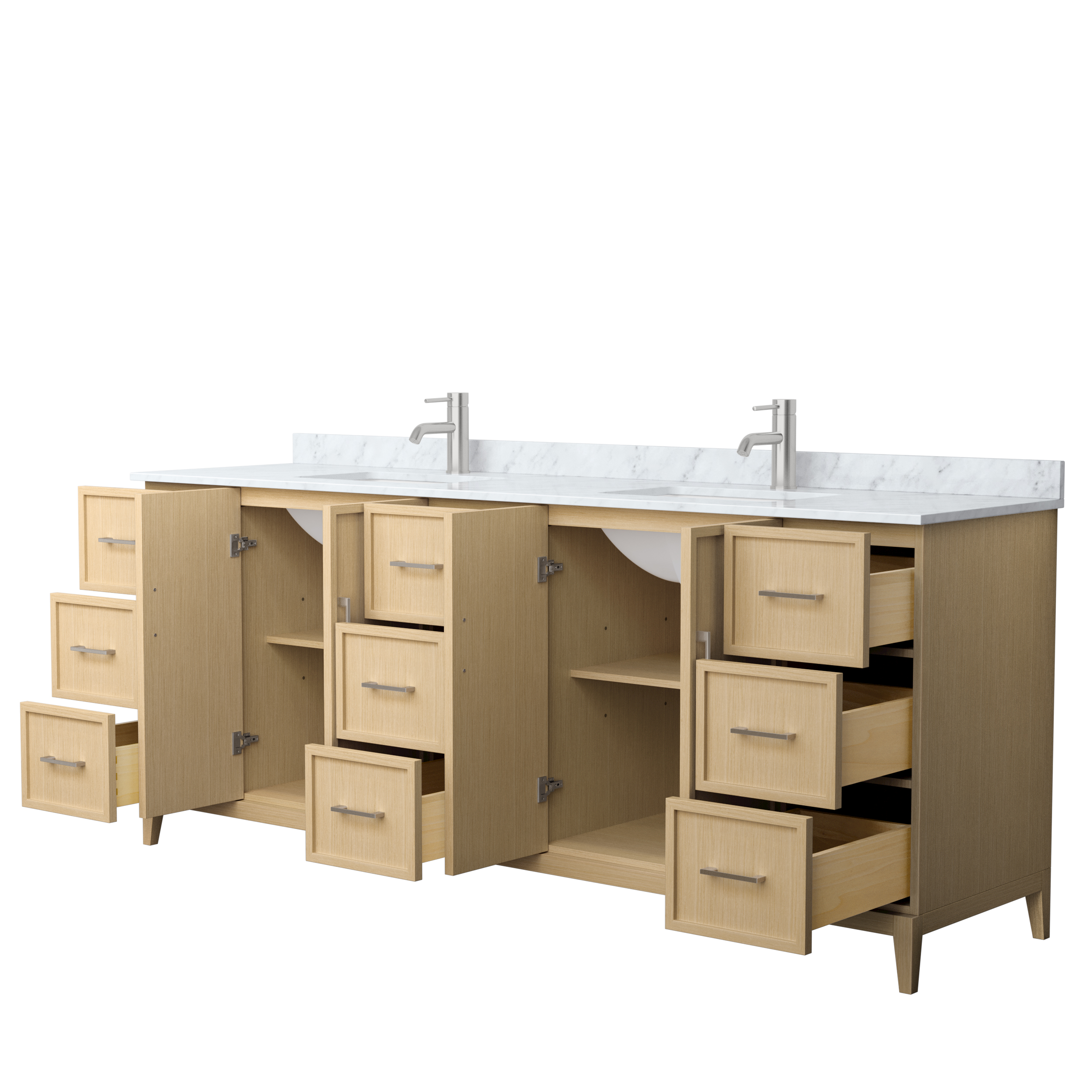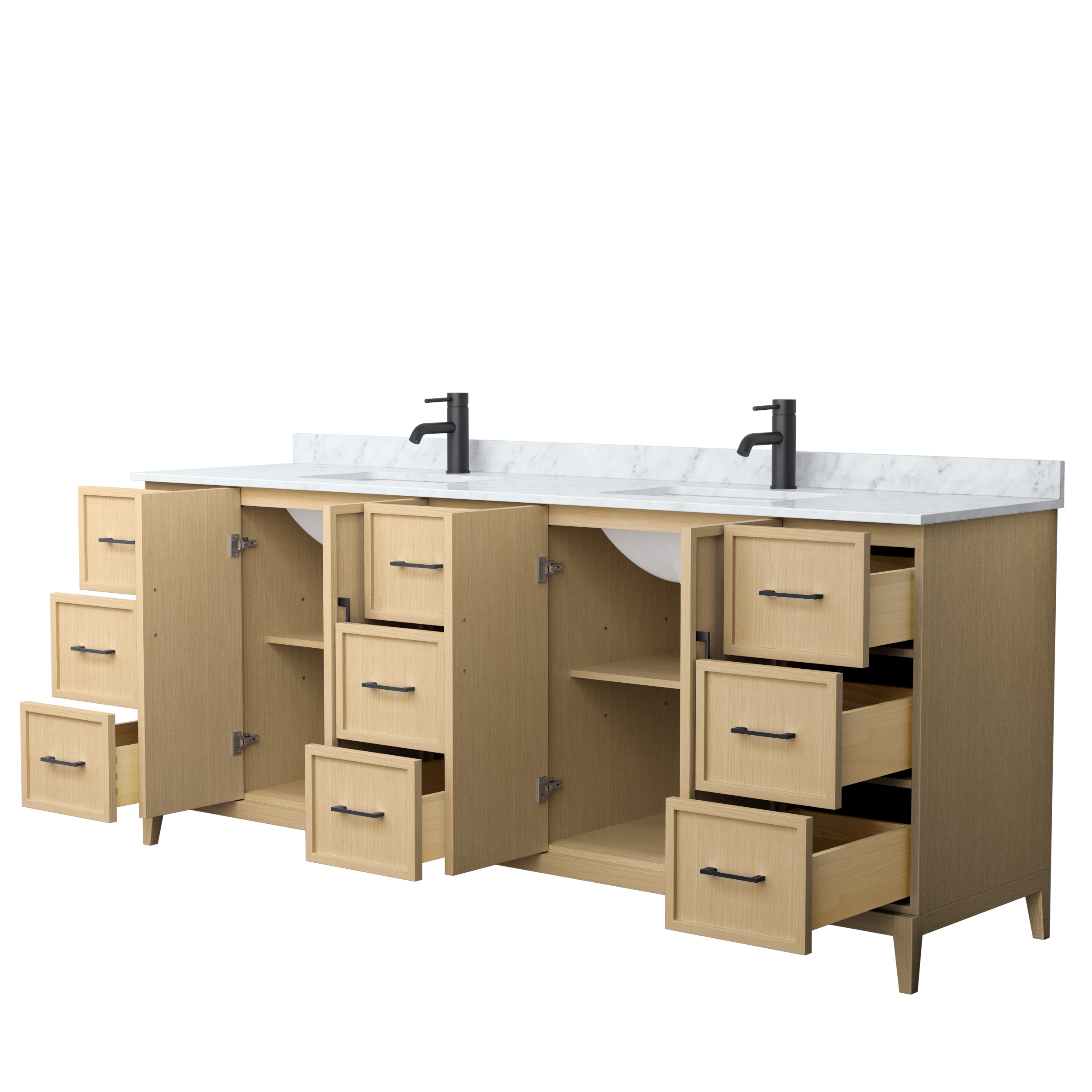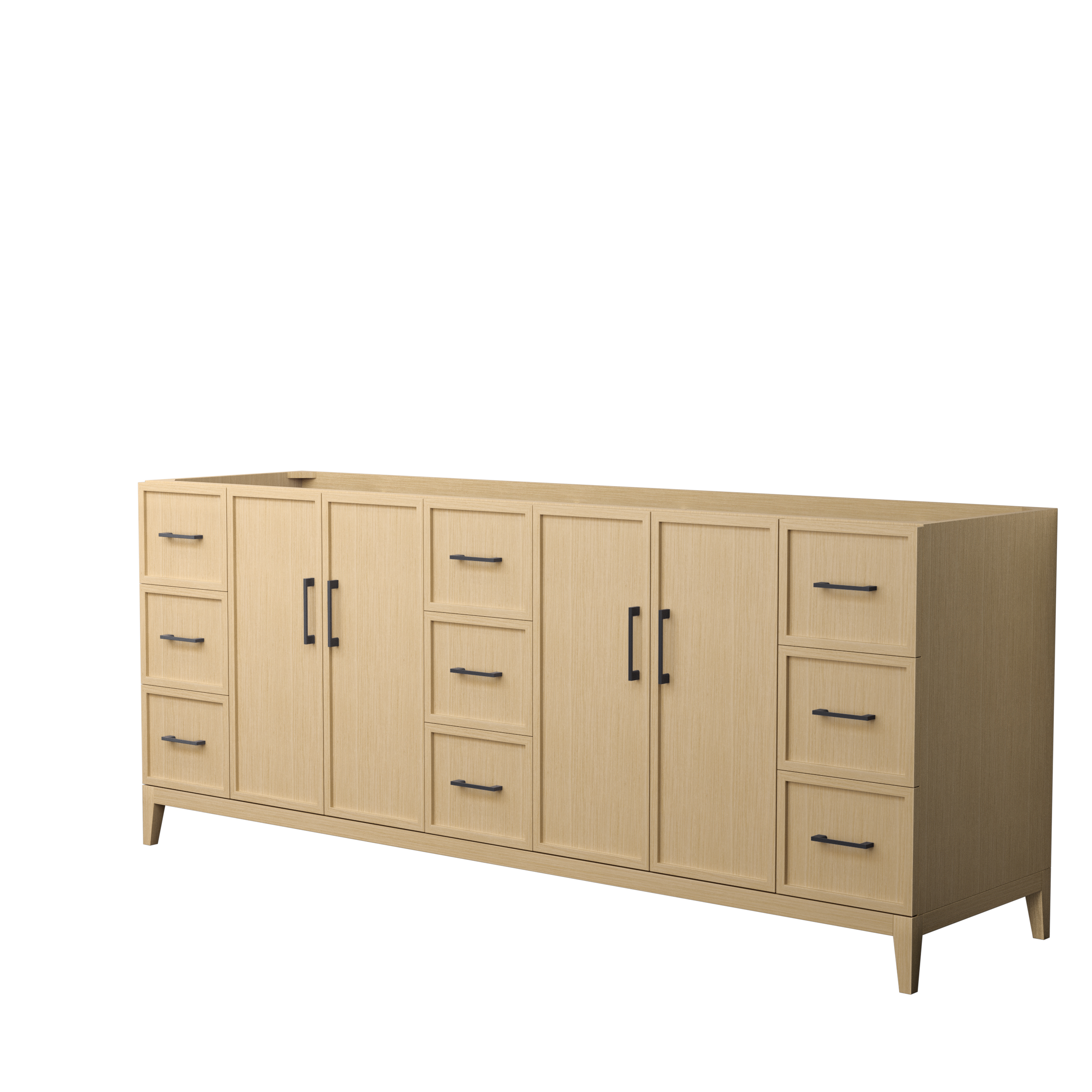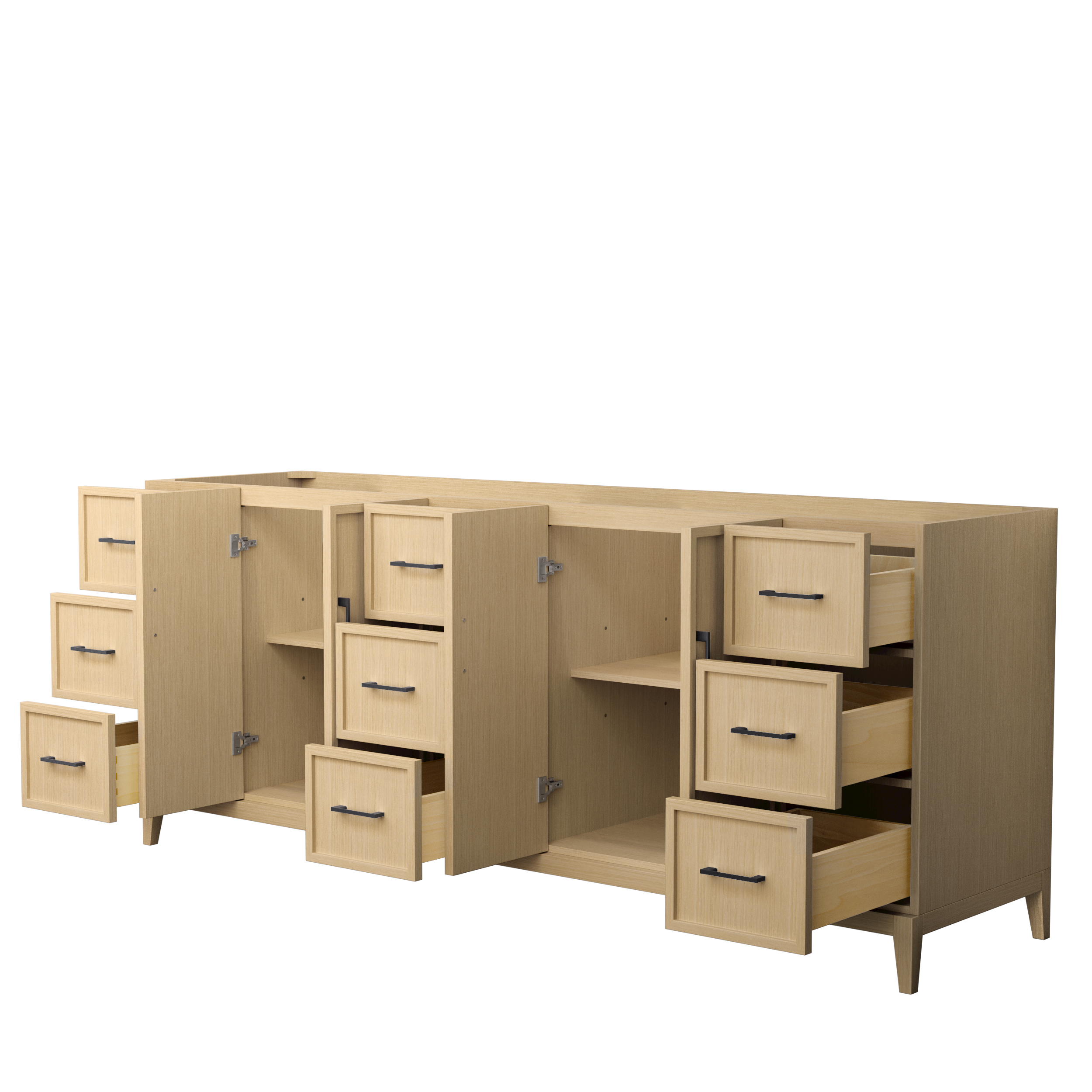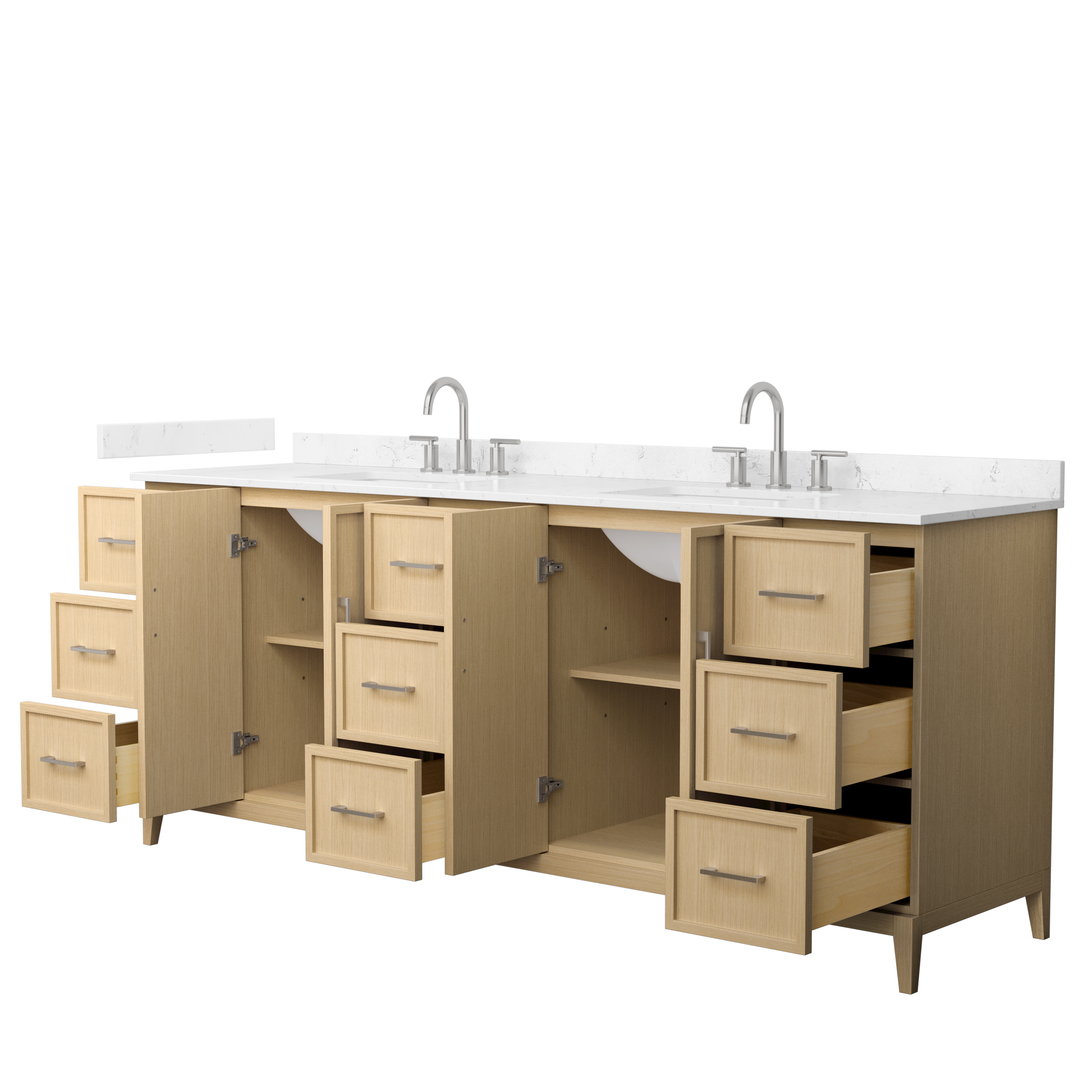 This transitional bathroom vanity exudes sleek sophistication with its clean lines and minimalist slim shaker design. The Elan vanity is crafted from high-quality materials like solid wood and plywood, with counters in multiple material options. Quartz and cultured stone counters include a back-and side-splash. Finished painted or in rift-cut white oak veneer, it seamlessly combines beauty and real-life usefulness. Its integrated, soft-closing drawers (featuring 3D adjustable glides) and doors offer ample storage space for toiletries, towels, and other essentials, keeping the space clutter-free. The sleek, angular hardware contributes to the overall aesthetic, creating a stylish focal point in the bathroom. Elevate your bathroom haven without compromising form or function.