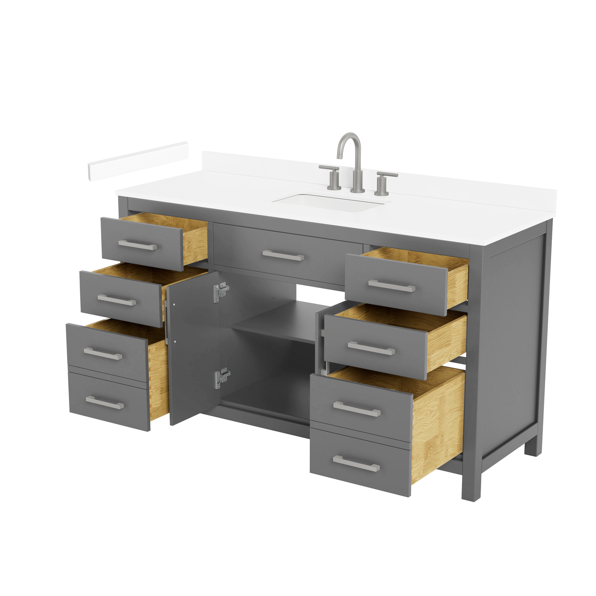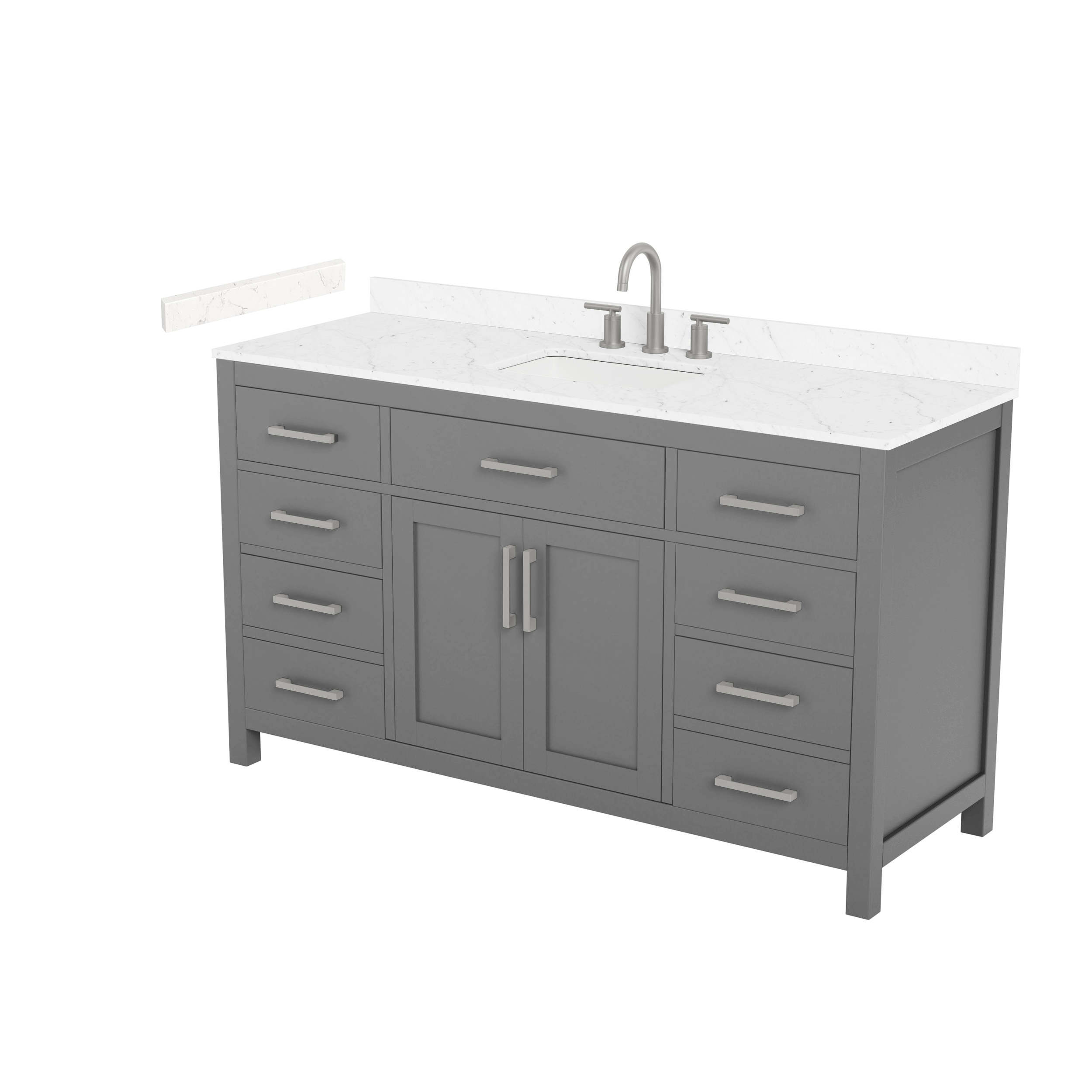 Fantastic value and classic design. The elegant Beckett vanity has it all, with quality touches like brushed nickel, brushed gold, or matte black accents, dove-tailed drawers, and soft-close doors and drawers. Ample storage and a double-depth lower drawer give you plenty of room for those bathroom necessities. Do your bathroom right, with the beautiful Beckett vanity series.