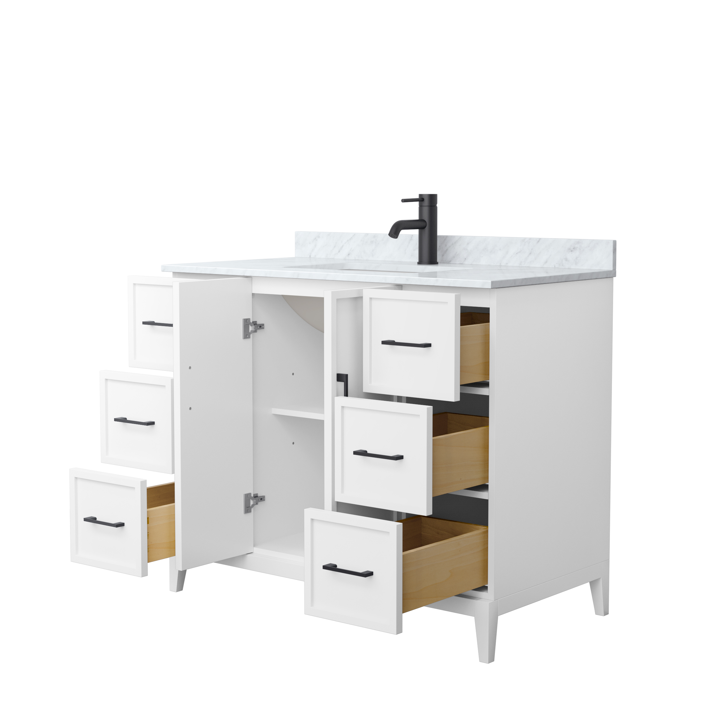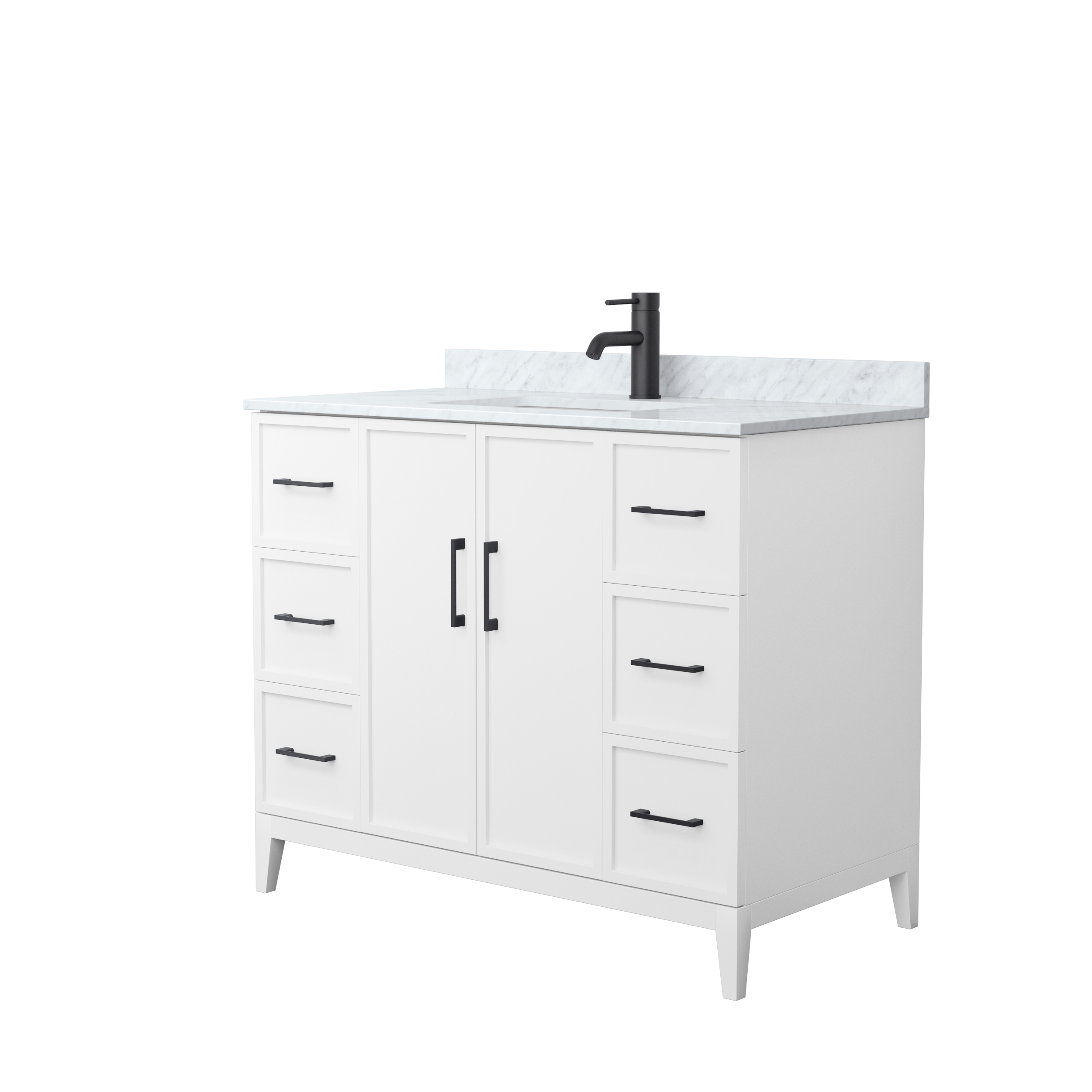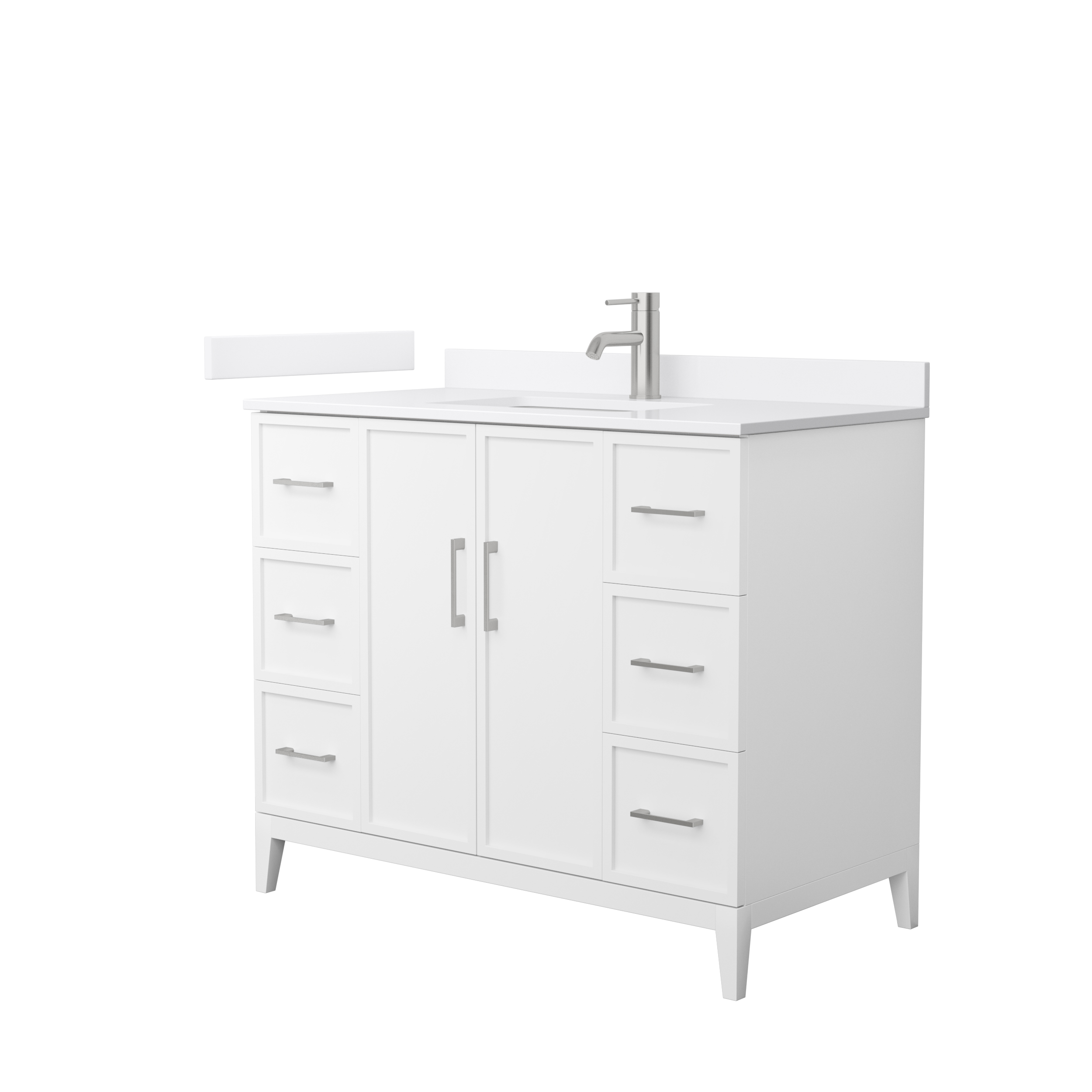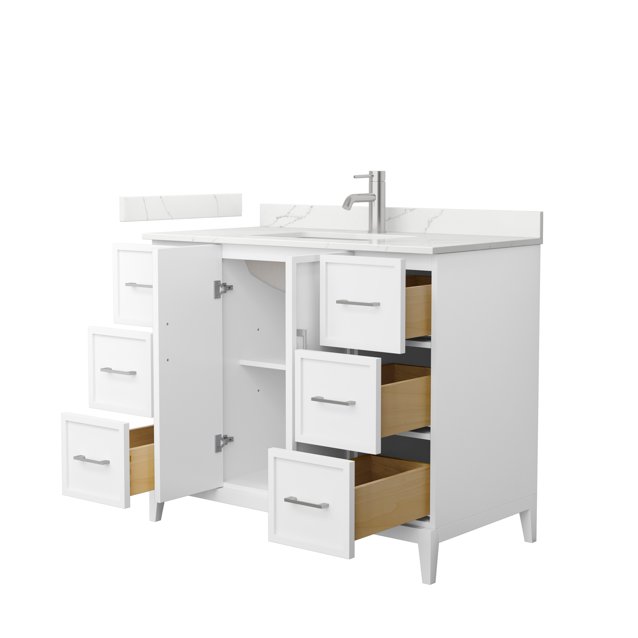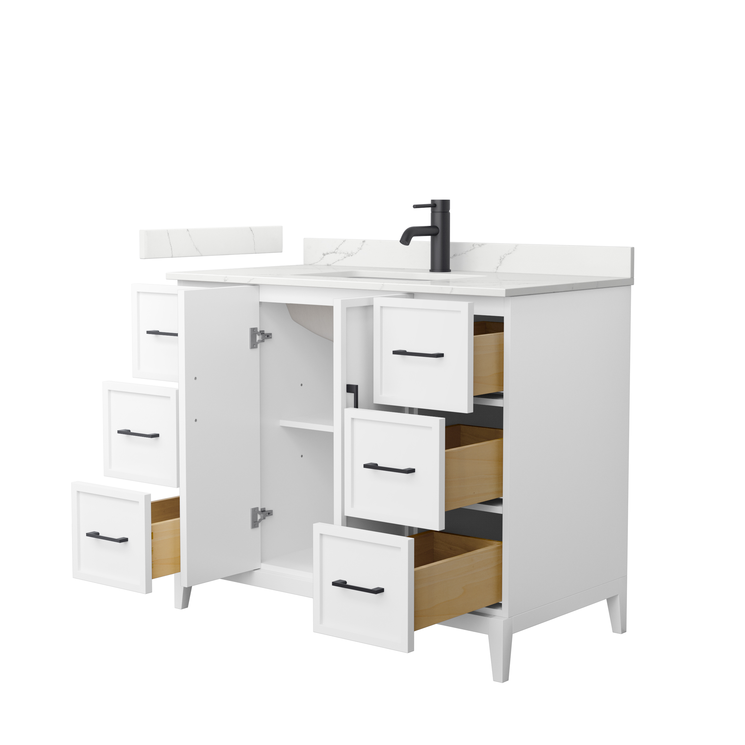 This transitional bathroom vanity exudes sleek sophistication with its clean lines and minimalist slim shaker design. The Elan vanity is crafted from high-quality materials like solid wood and plywood, with counters in multiple material options. Quartz and cultured stone counters include a back-and side-splash. Finished painted or in rift-cut white oak veneer, it seamlessly combines beauty and real-life usefulness. Its integrated, soft-closing drawers (featuring 3D adjustable glides) and doors offer ample storage space for toiletries, towels, and other essentials, keeping the space clutter-free. The sleek, angular hardware contributes to the overall aesthetic, creating a stylish focal point in the bathroom. Elevate your bathroom haven without compromising form or function.