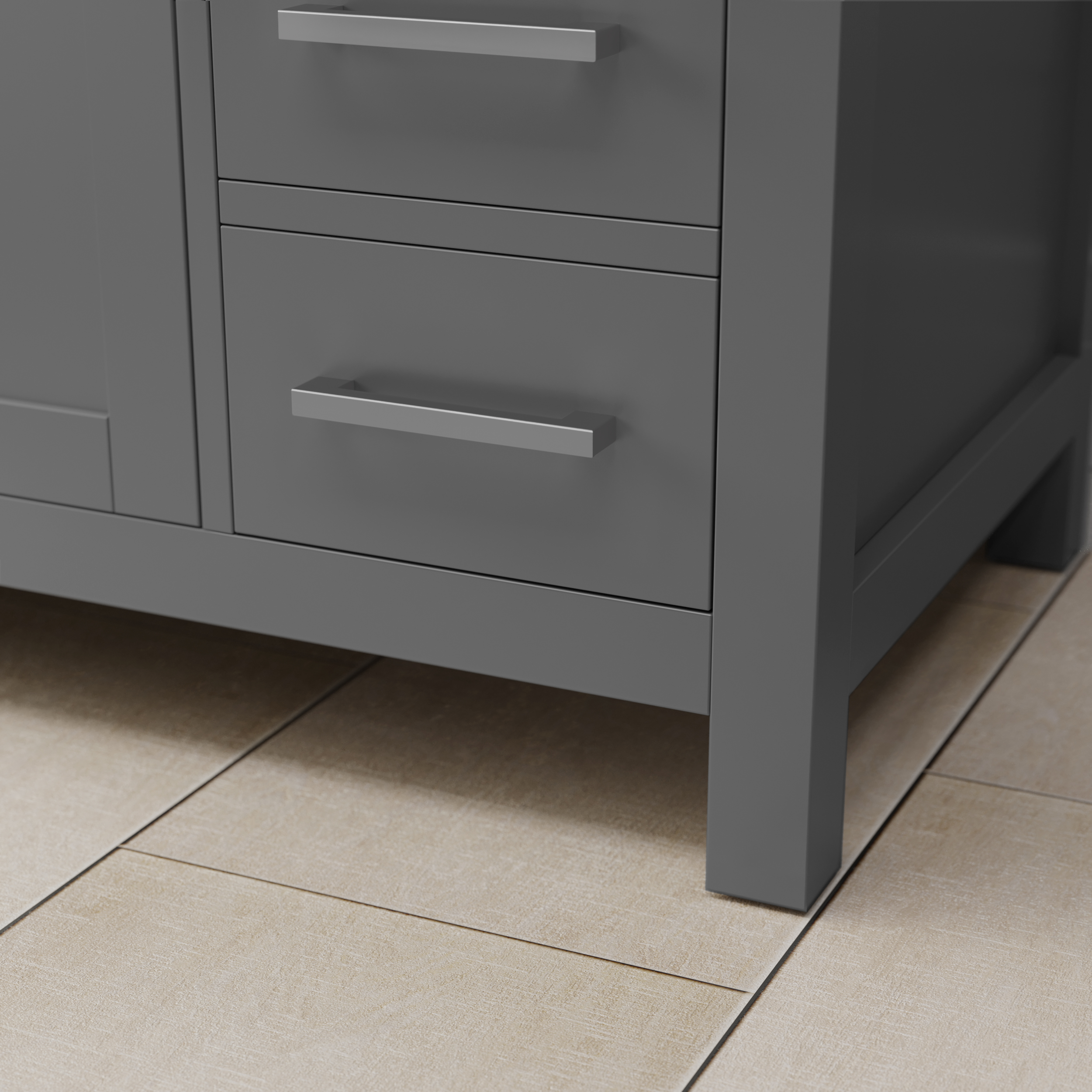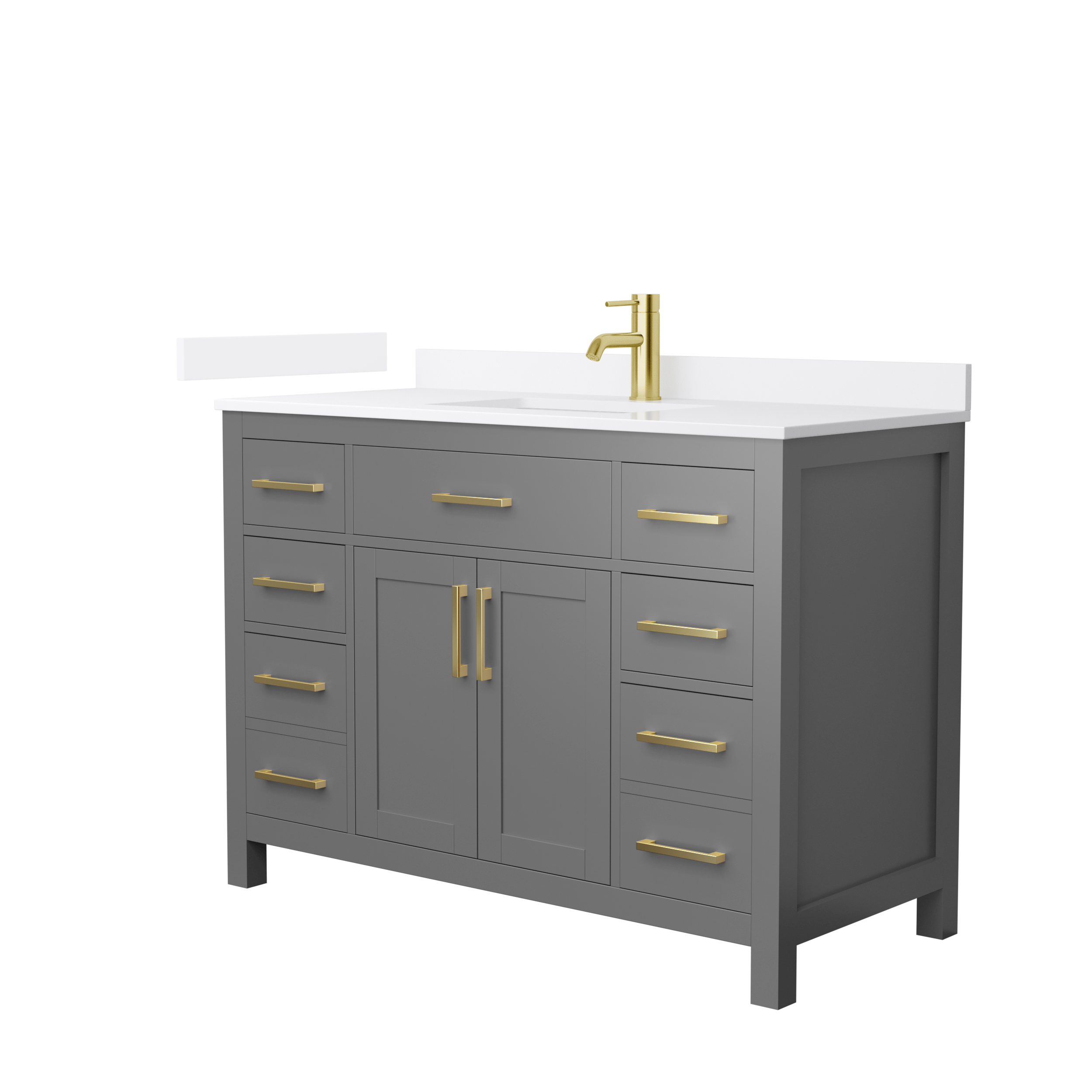 Fantastic value and classic design. The elegant Beckett vanity has it all, with quality touches like brushed nickel, brushed gold, or matte black accents, dove-tailed drawers, cultured marble counters and soft-close doors and drawers. Ample storage and a double-depth lower drawer give you plenty of room for those bathroom necessities. Do your bathroom right, with the beautiful Beckett vanity series.