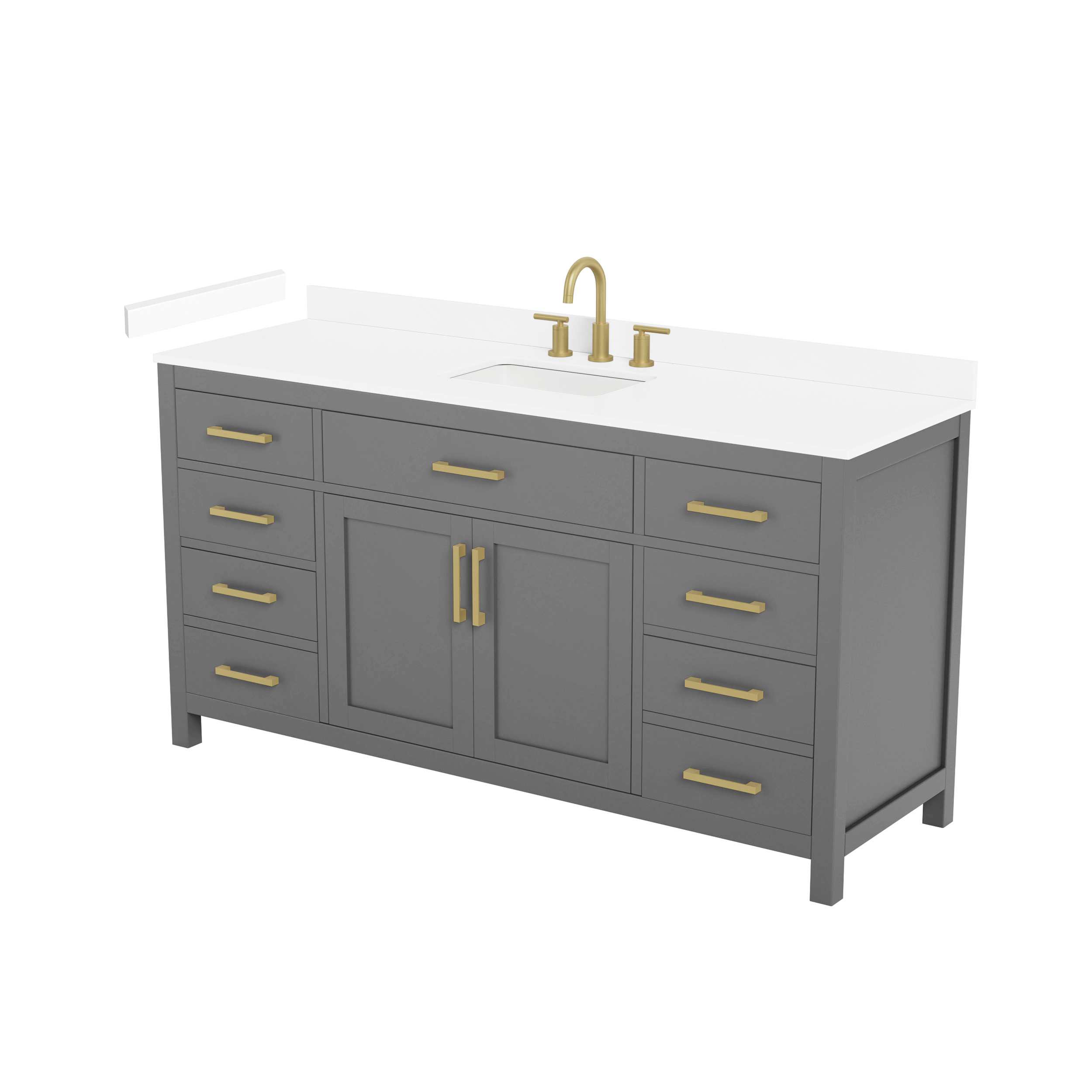Fantastic value and classic design. The elegant Beckett vanity has it all, with quality touches like brushed nickel, brushed gold, or matte black accents, dove-tailed drawers, and soft-close doors and drawers. Ample storage and a double-depth lower drawer give you plenty of room for those bathroom necessities. Do your bathroom right, with the beautiful Beckett vanity series.