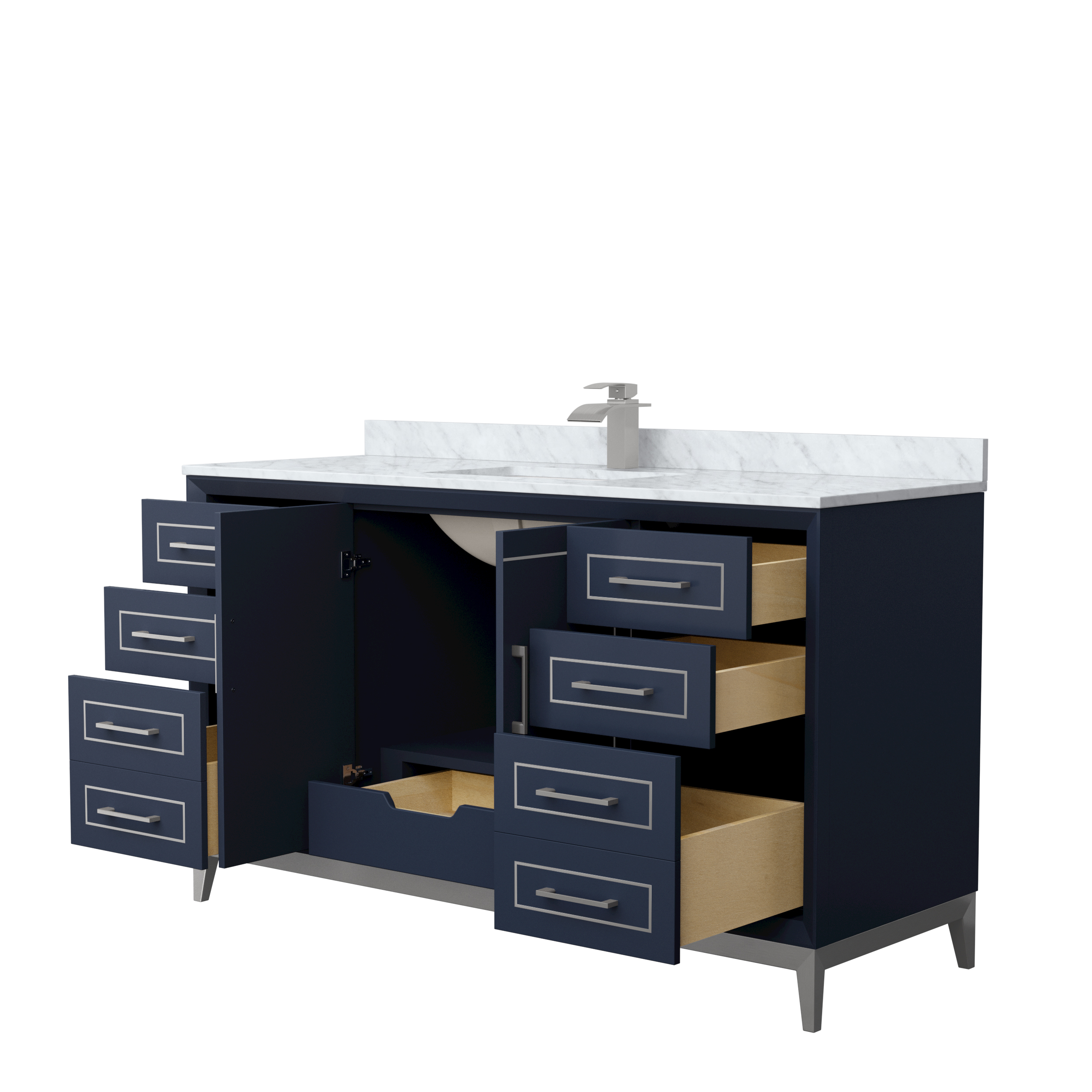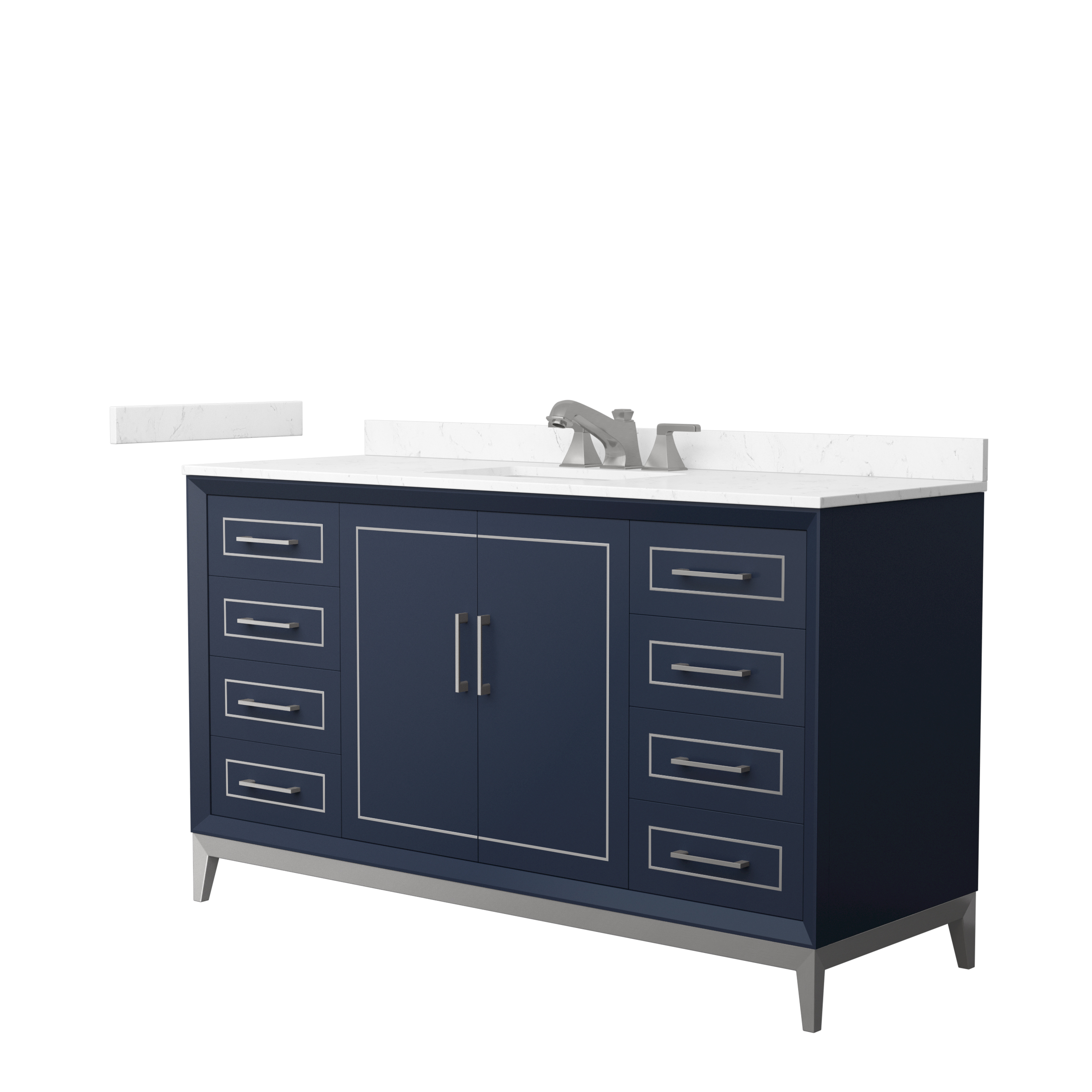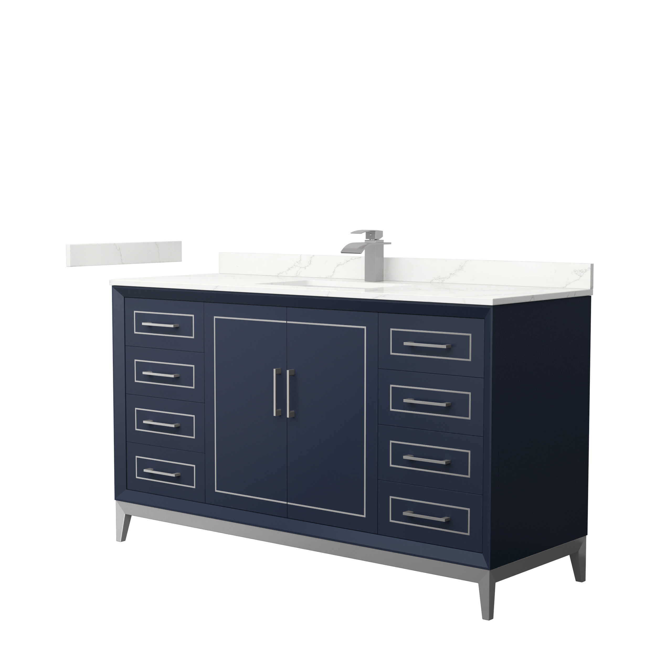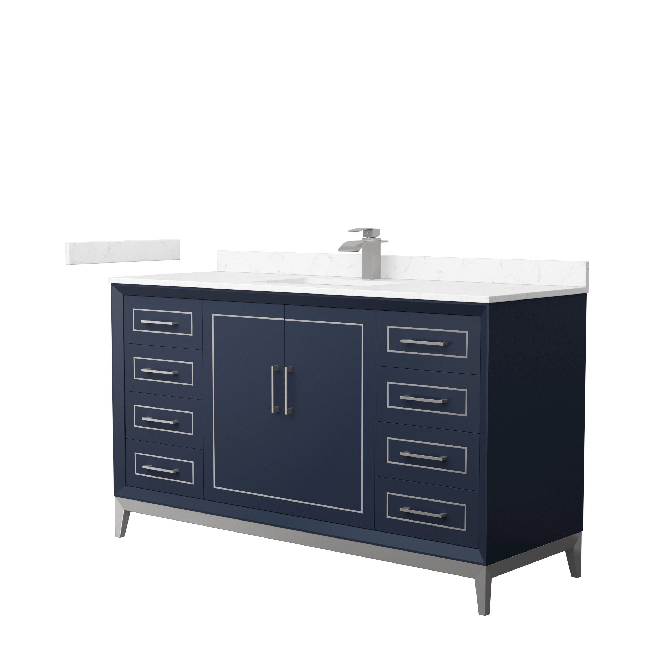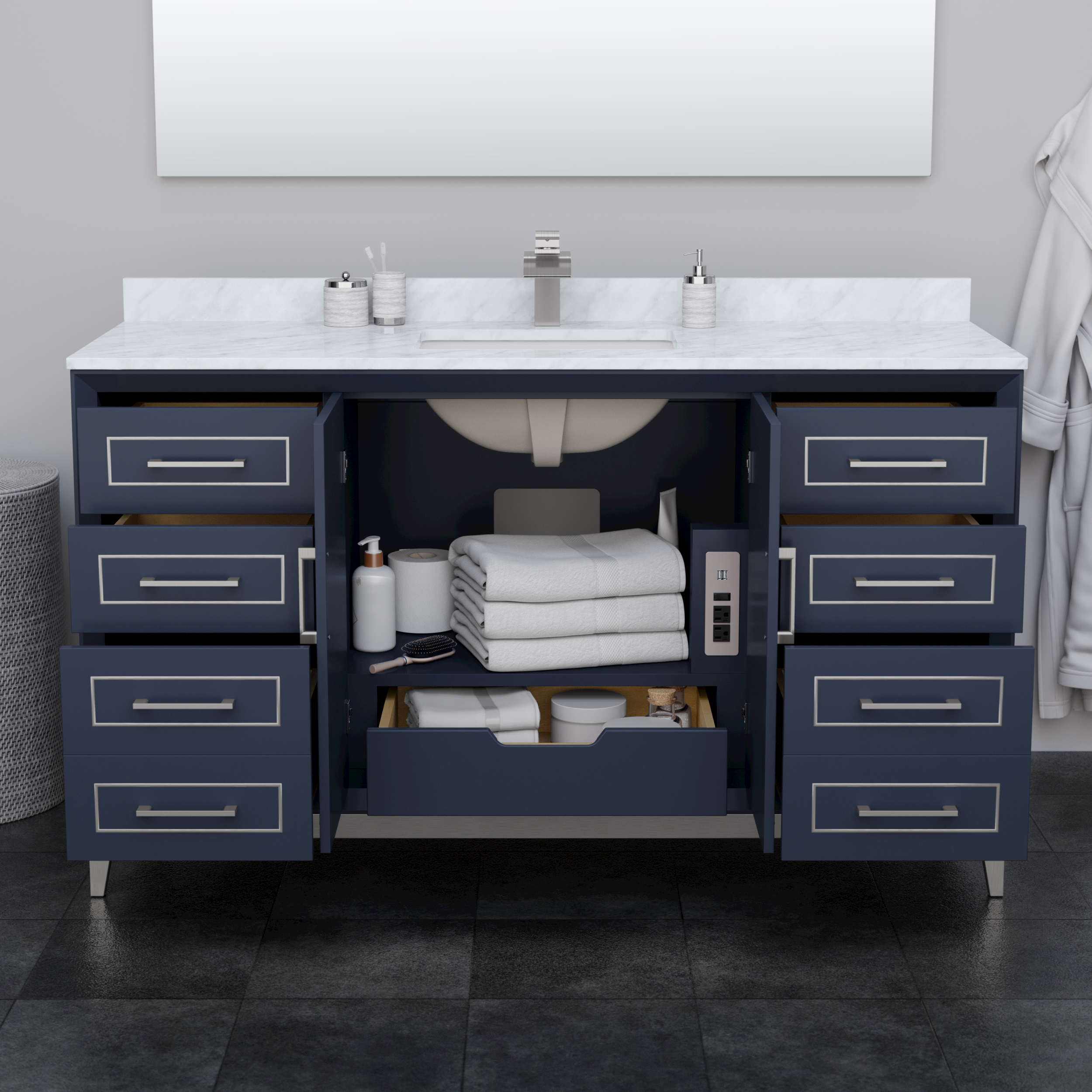 Classic luxurious elegance with clean and contemporary styling are the hallmarks of the beautiful Marlena vanity collection, perfect for most home decors. Offered in a range of sizes, cabinet colors and metal trim colors, you're sure to find the perfect fit. There's plenty of storage space, soft-close doors and drawers, internal drawers and the convenience of a 110v outlet and USB charger just inside the door. Offered with available Quartz, Carrara Marble, or Cultured Stone counters.